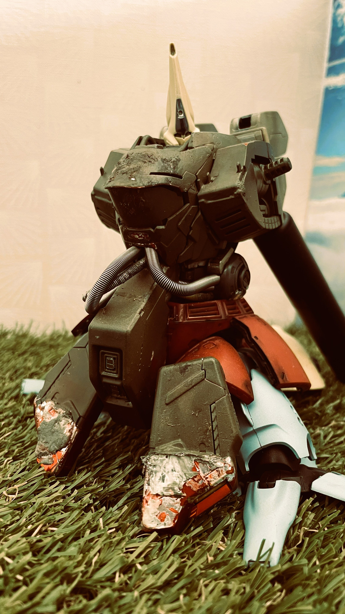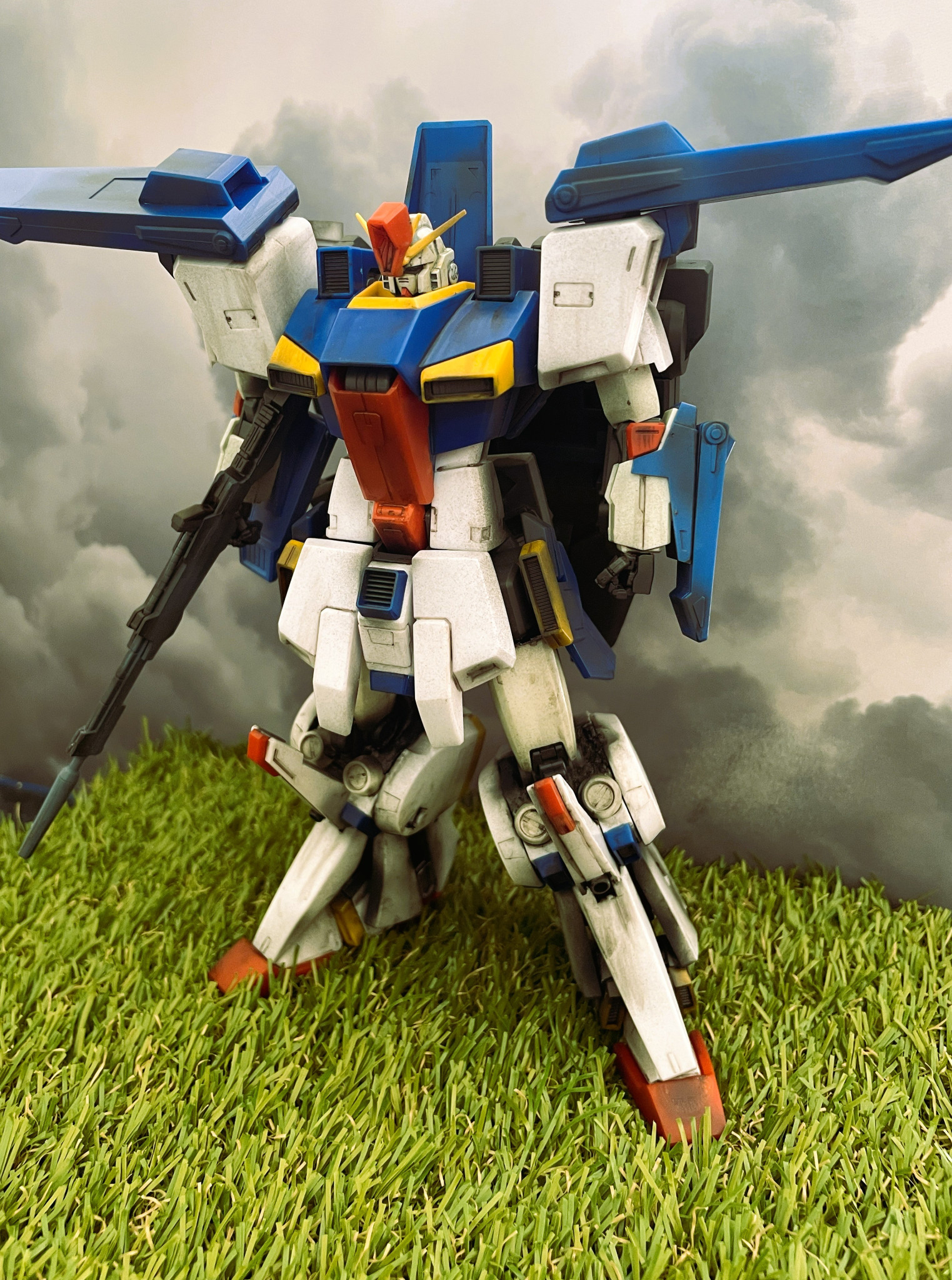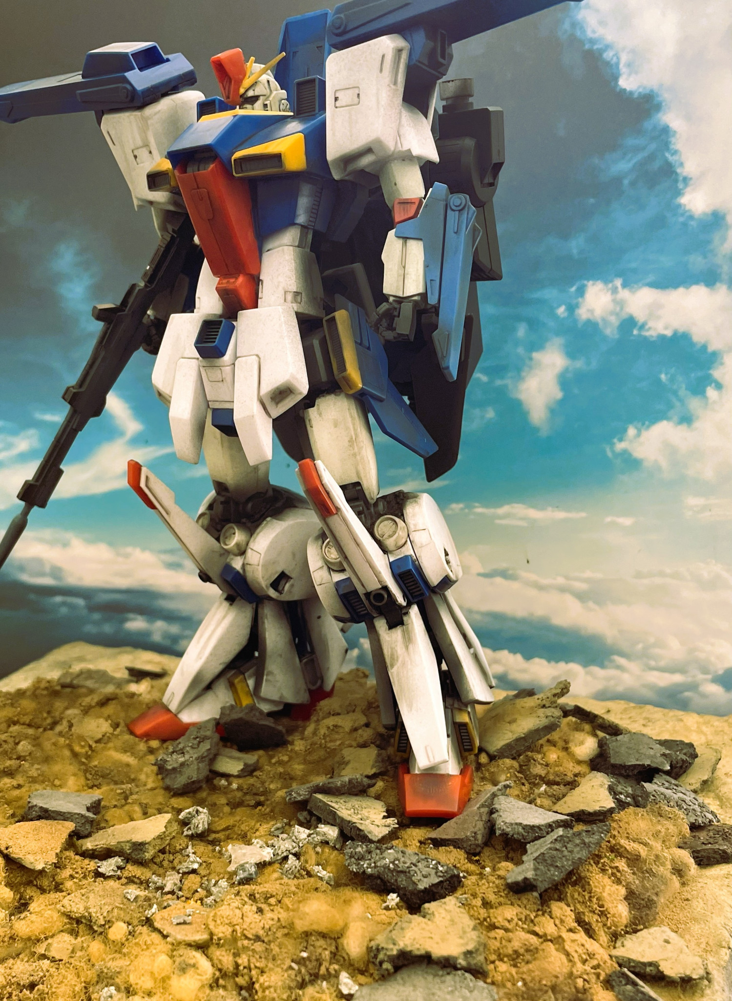 茶系にするかトリコロールにするかで迷ったのですが、ガンダムはやはり白と青と赤ですよねと納得してこのカラーリングとなりました。