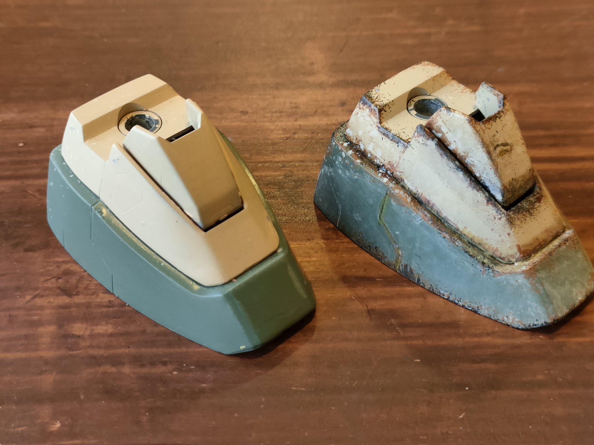 過去に本で拝見した、らいだーJoeさんのウェザリング方法をマネしてます。私がやるとトーンが沈みすぎるで、ウェザリング後に一回リフトしています。