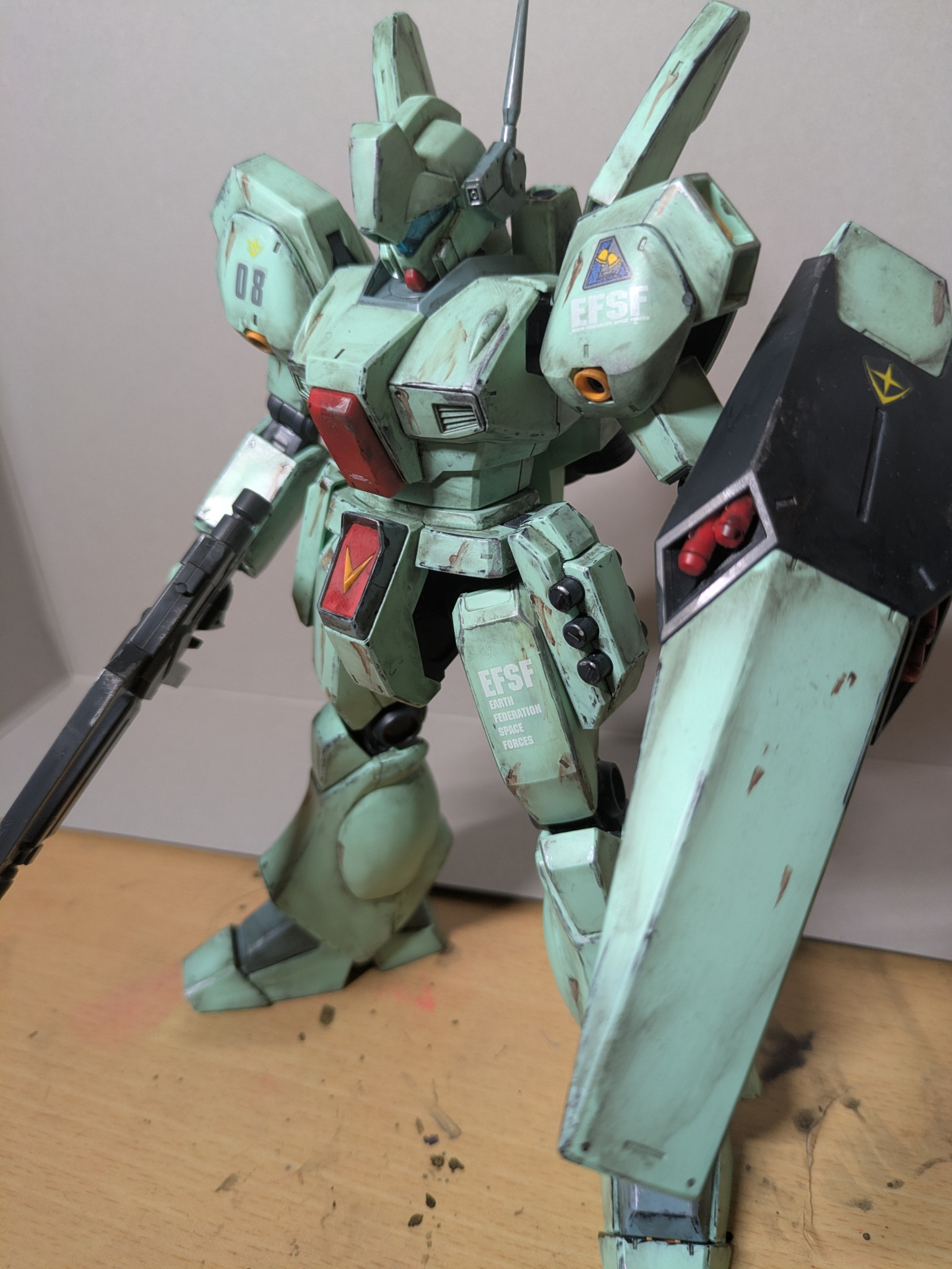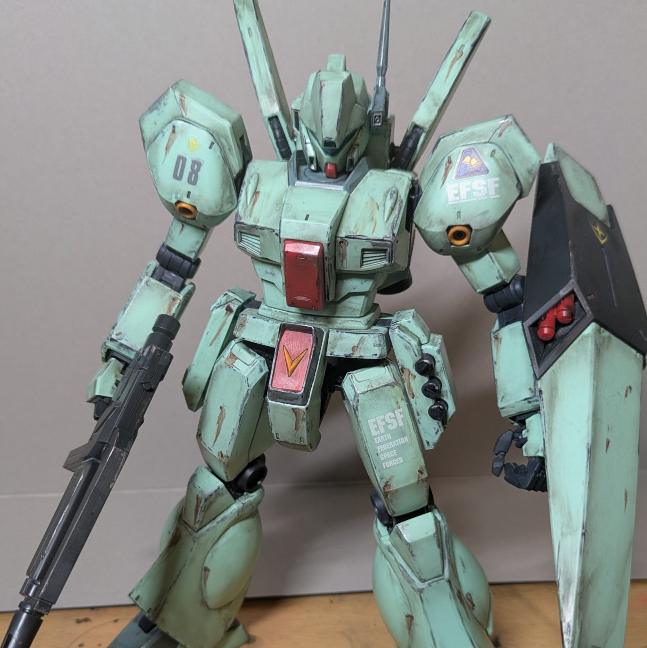 いつもガンプラを買わせていただいてる模型屋さんでMGのジェガンが新春セールで5000円で売っていたので購入しました。このキット内部フレームの作りもいいし何より組みやすいので作ってて楽しいキットでした。