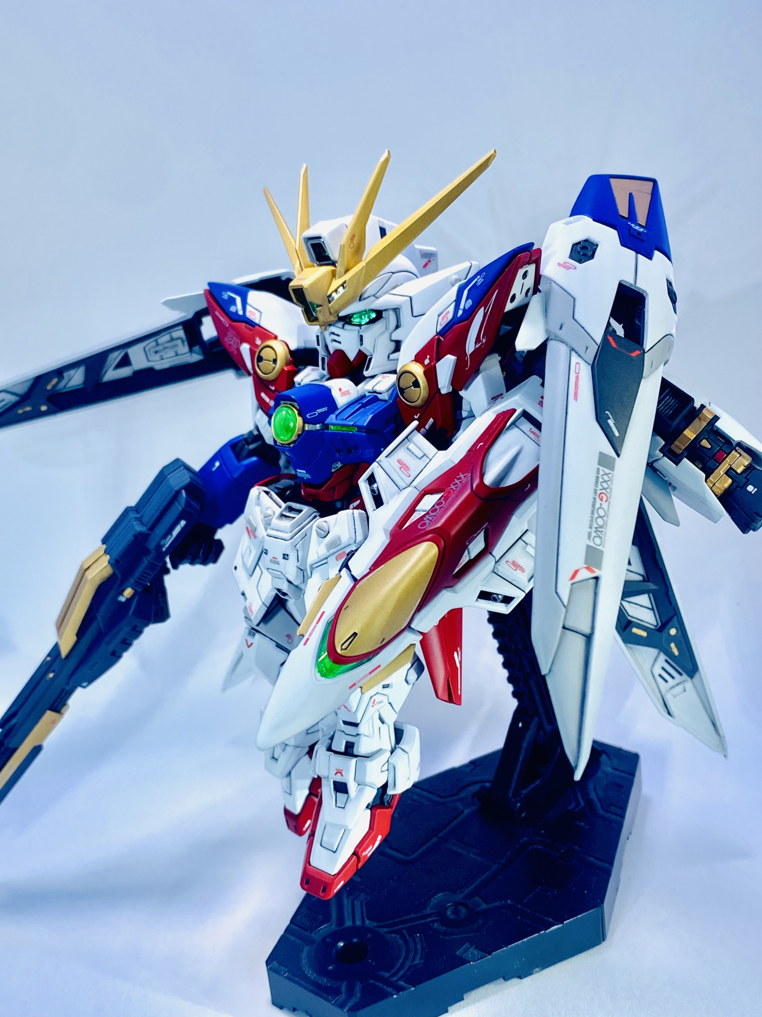 MGSDウイングガンダムゼロをベースに、MGプロトゼロ、RGウイングガンダムゼロTV版、HGウイングガンダムゼロTV版、MGSDフリーダム、SDEXウイングガンダムゼロTV版のパーツをミキシングして「MGSDのTV版」を制作しました。