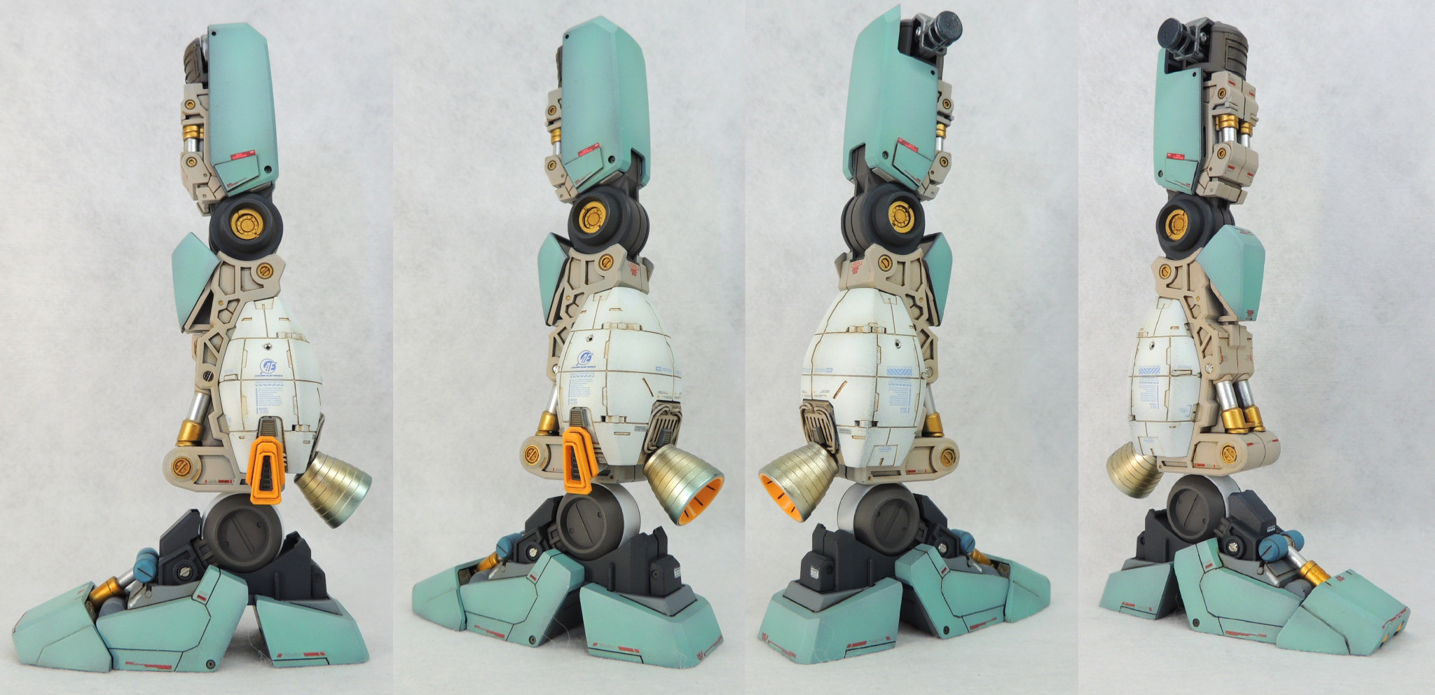 内部フレームはつや消しですが、手足のシリンダー部分は金属色を用いてアクセントとしました。内部フレームの可動機構はそのまま残しているため、完成後も自由に動かしてポージングできます。