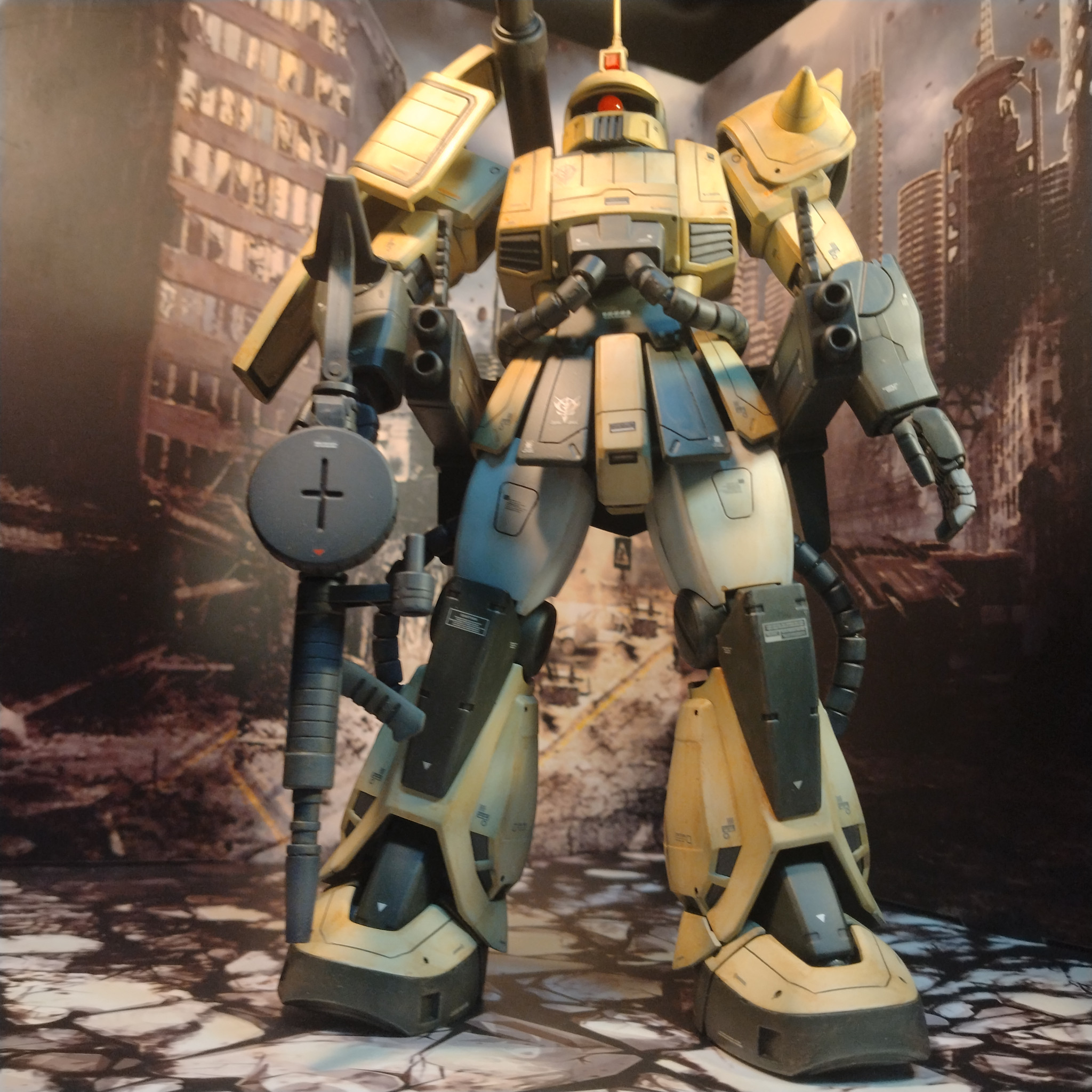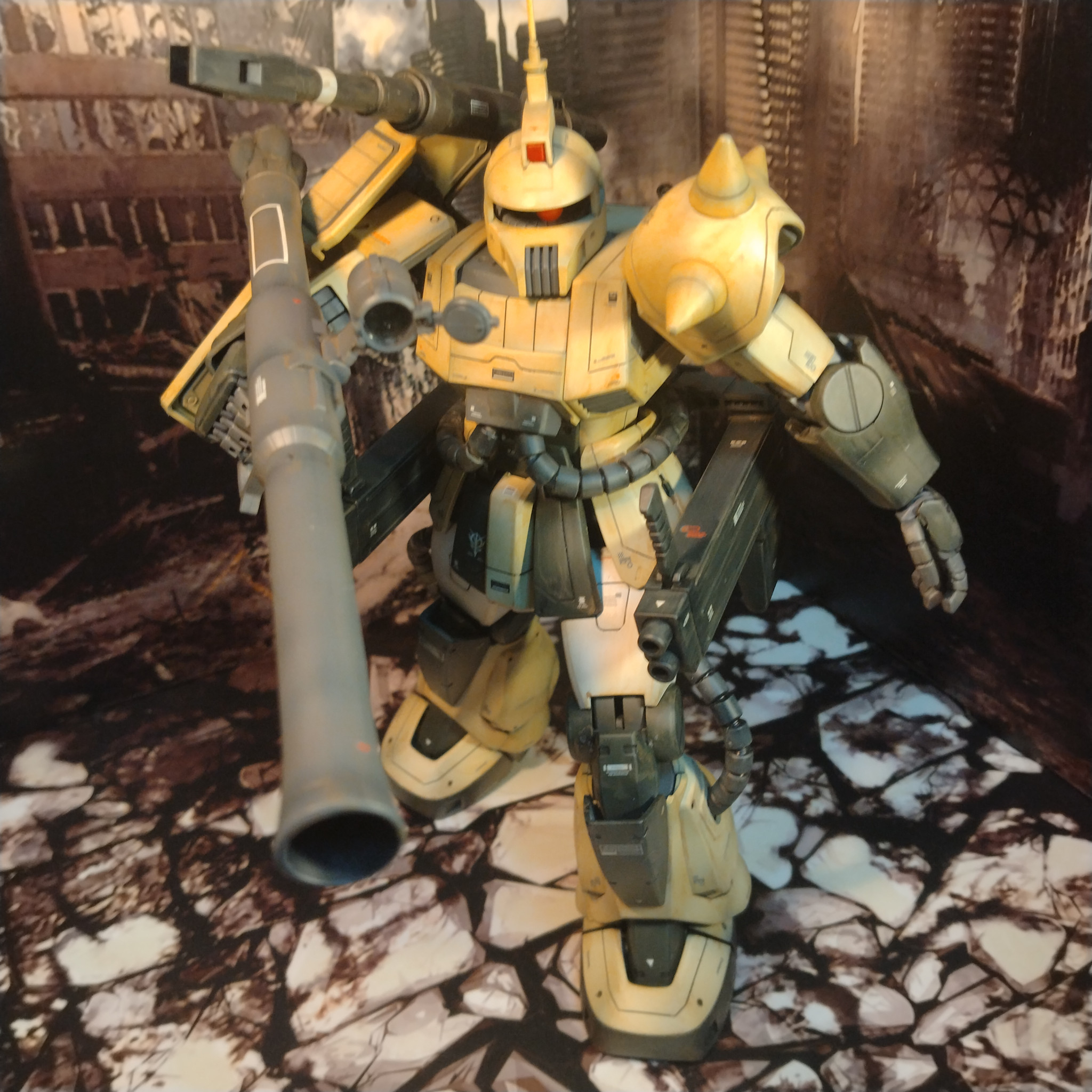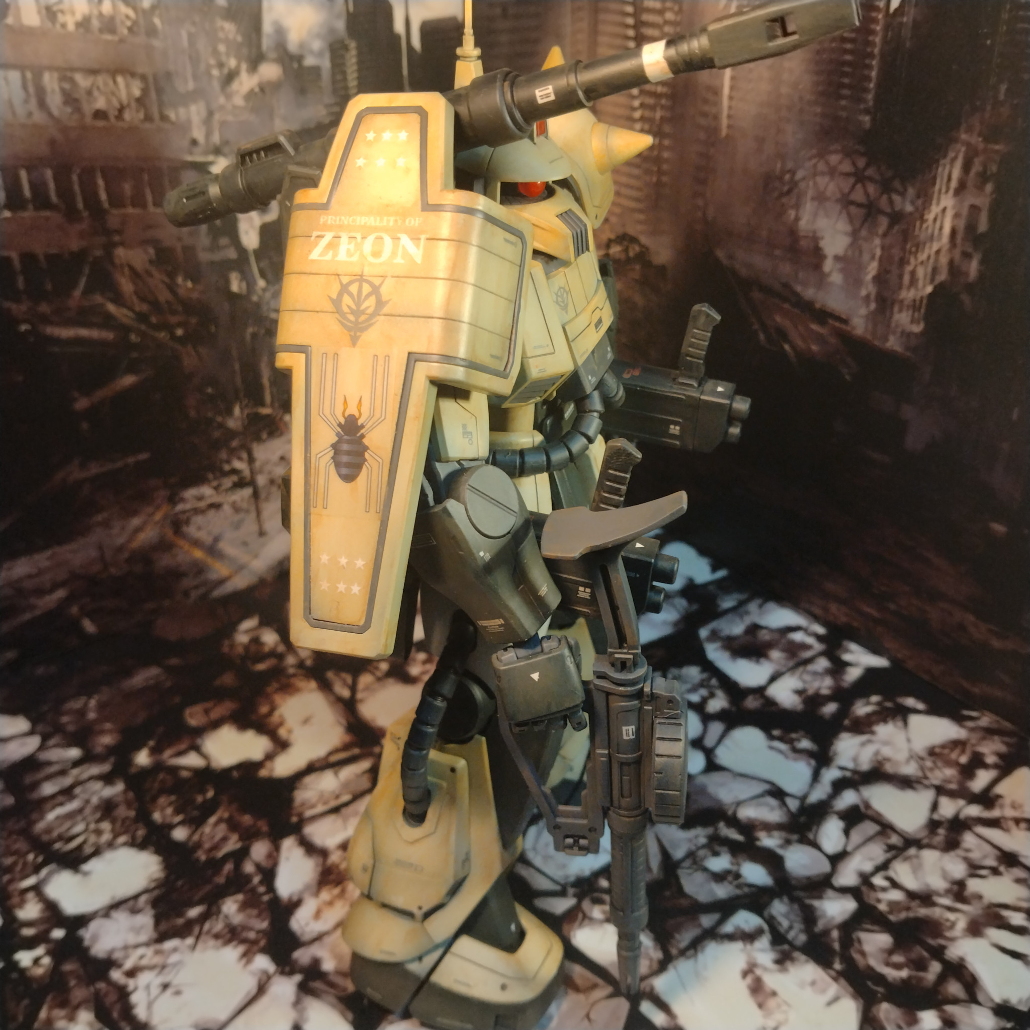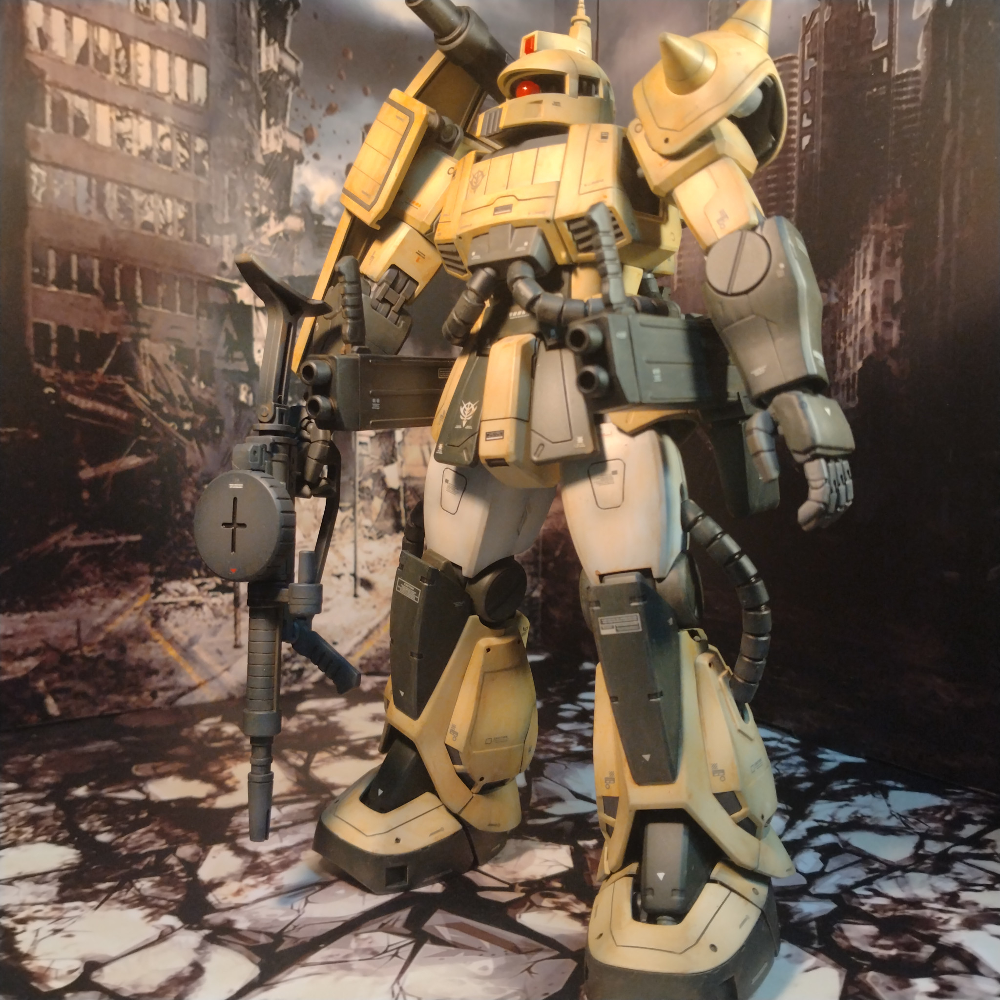 有難う御座います!😄私もここ数年はジオラマ等を製作してなかったので、ウェザリングは余りしてませんでした!😄なのでちょっと忘れてる様な感覚でやってます!😄😄私はジオラマ等として飾るならウェザリング!普通に飾るならグラデーション止まりって感じのスタイルが多くて、なるだけハンドピースで表現出来ないか?昔から今もそれを追求しながらプラモデルを楽しんでます!😄でもたまにウェザリングもやらなきゃなと言う感じで良い素材と思った時のザクキャノンでした!😀ウェザリングって色んな状況での縛りはあってもどれが正解と言えるものは存在しないと思ってますので!自分が良しと思ったりカッコイイと思えば、それが正解だと思ってます!😄褒めて頂き有難うです!次の励みになります!😄