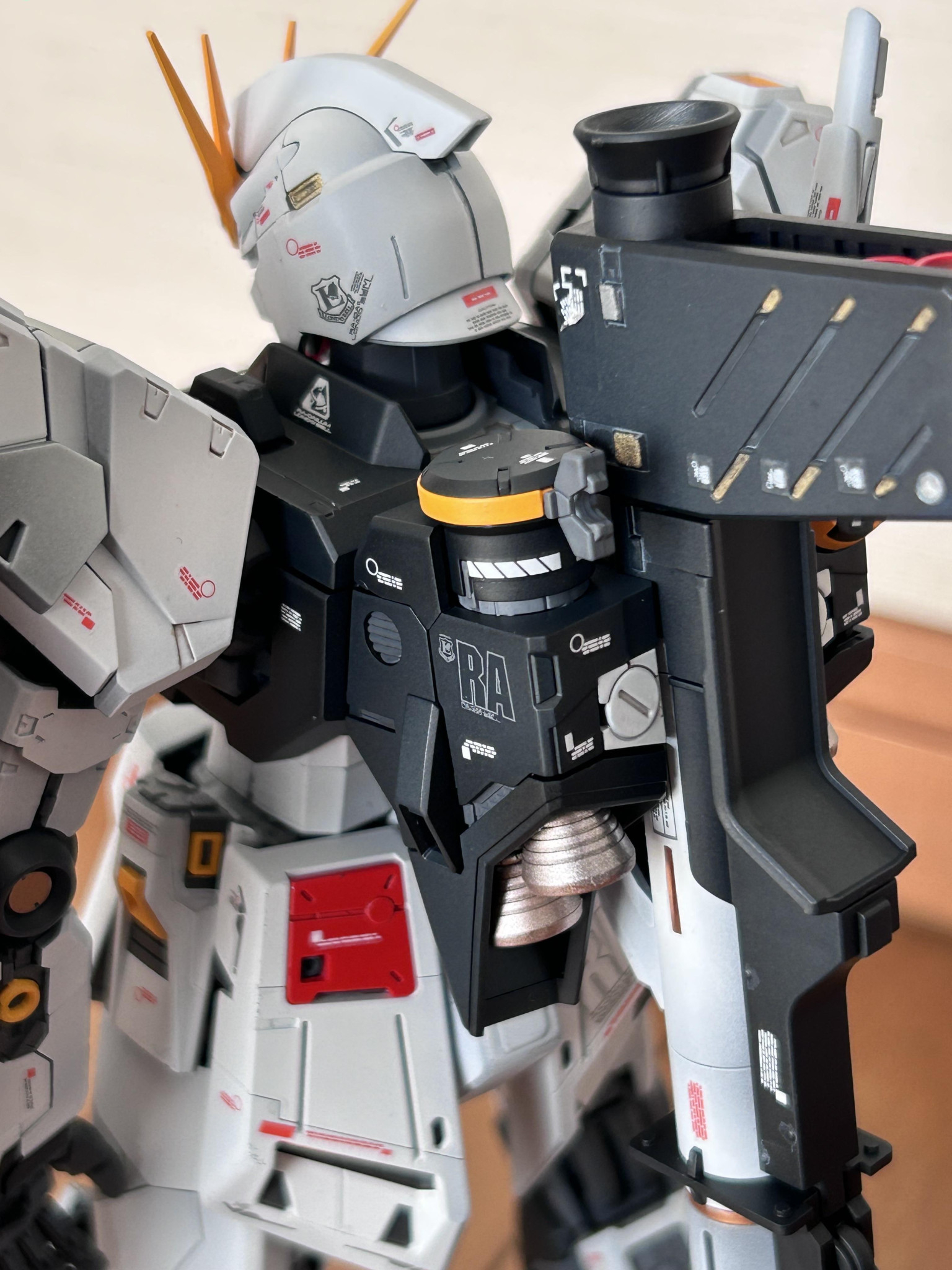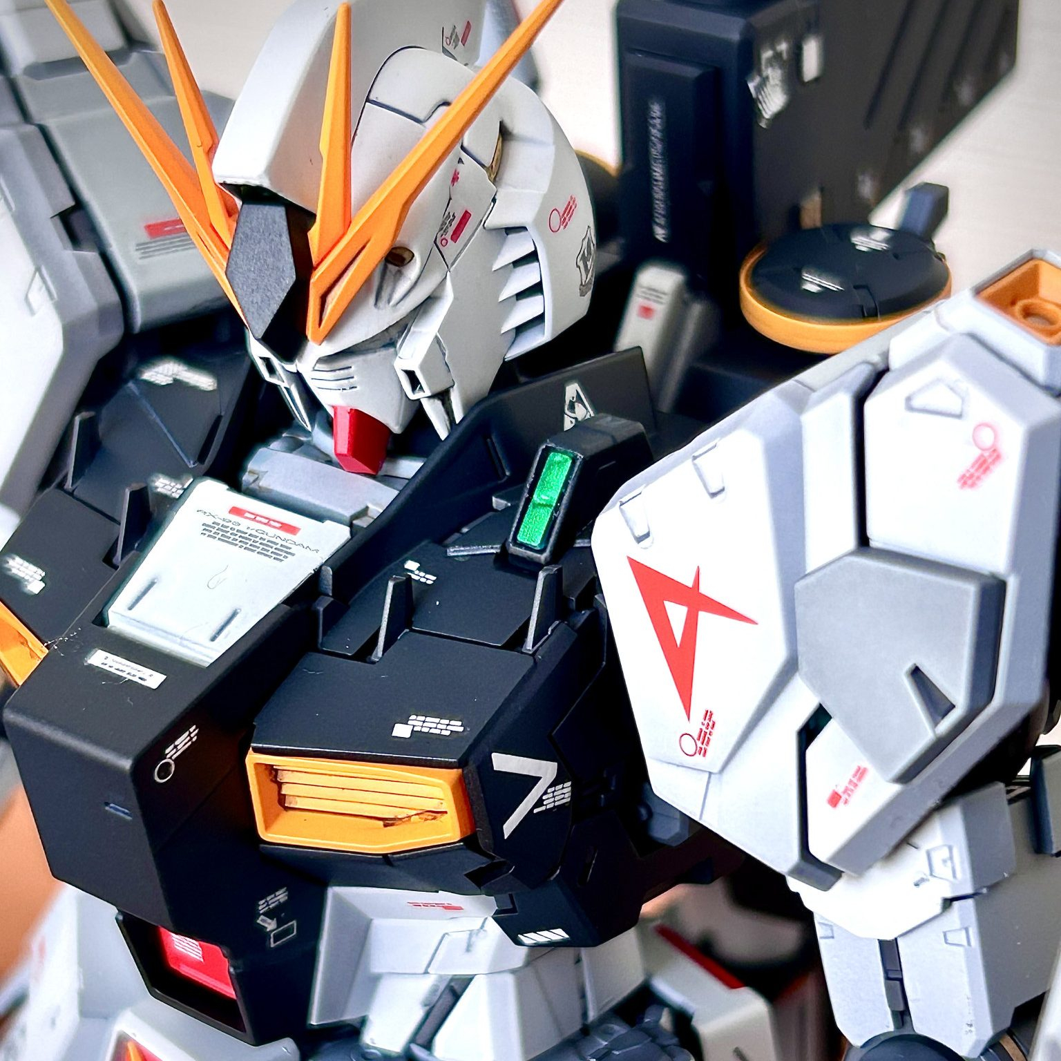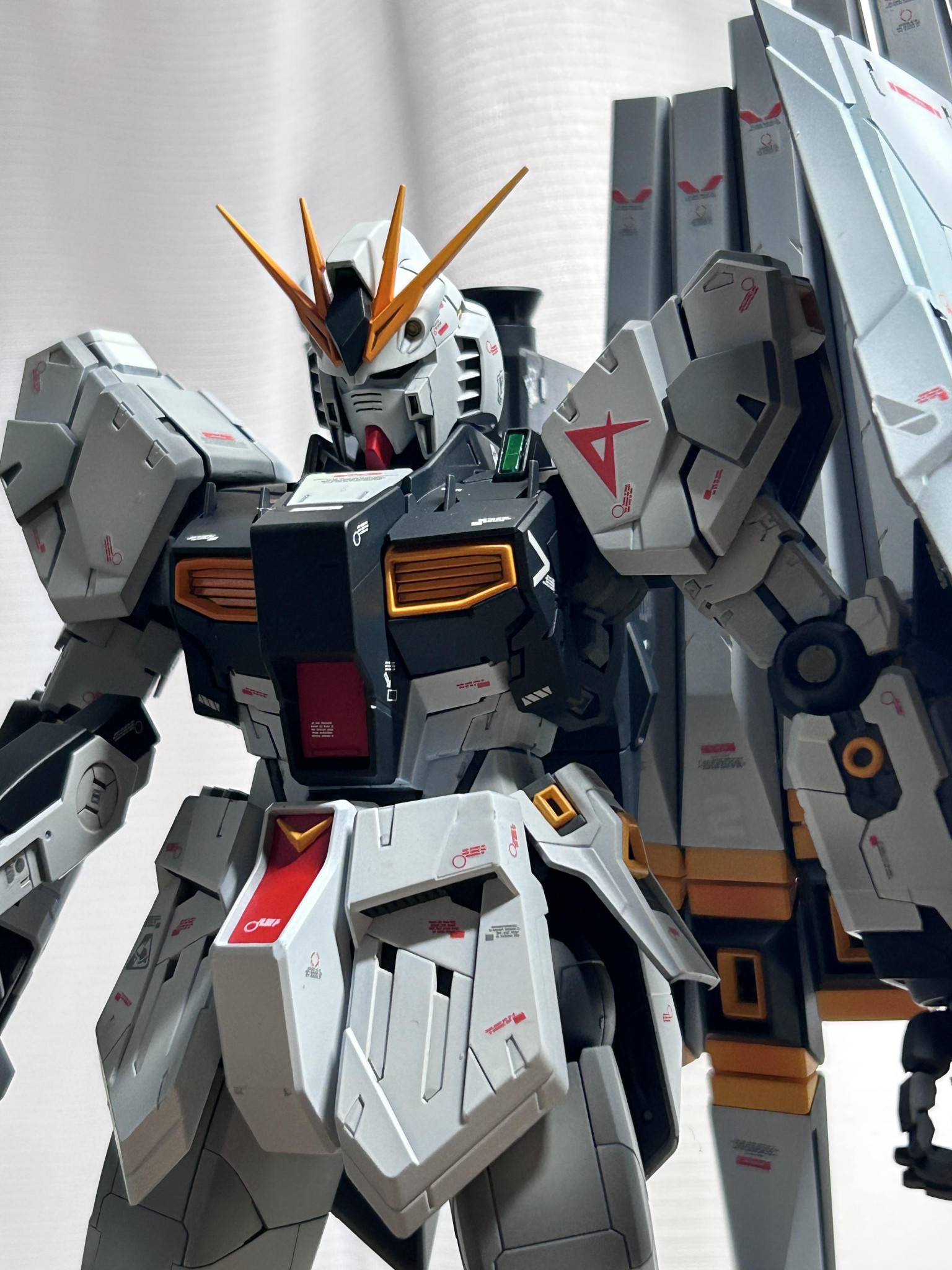 ようやく完成しました MG νガンダムver kaです。水転写デカールとファンネルにかなり苦戦するキットでした♪