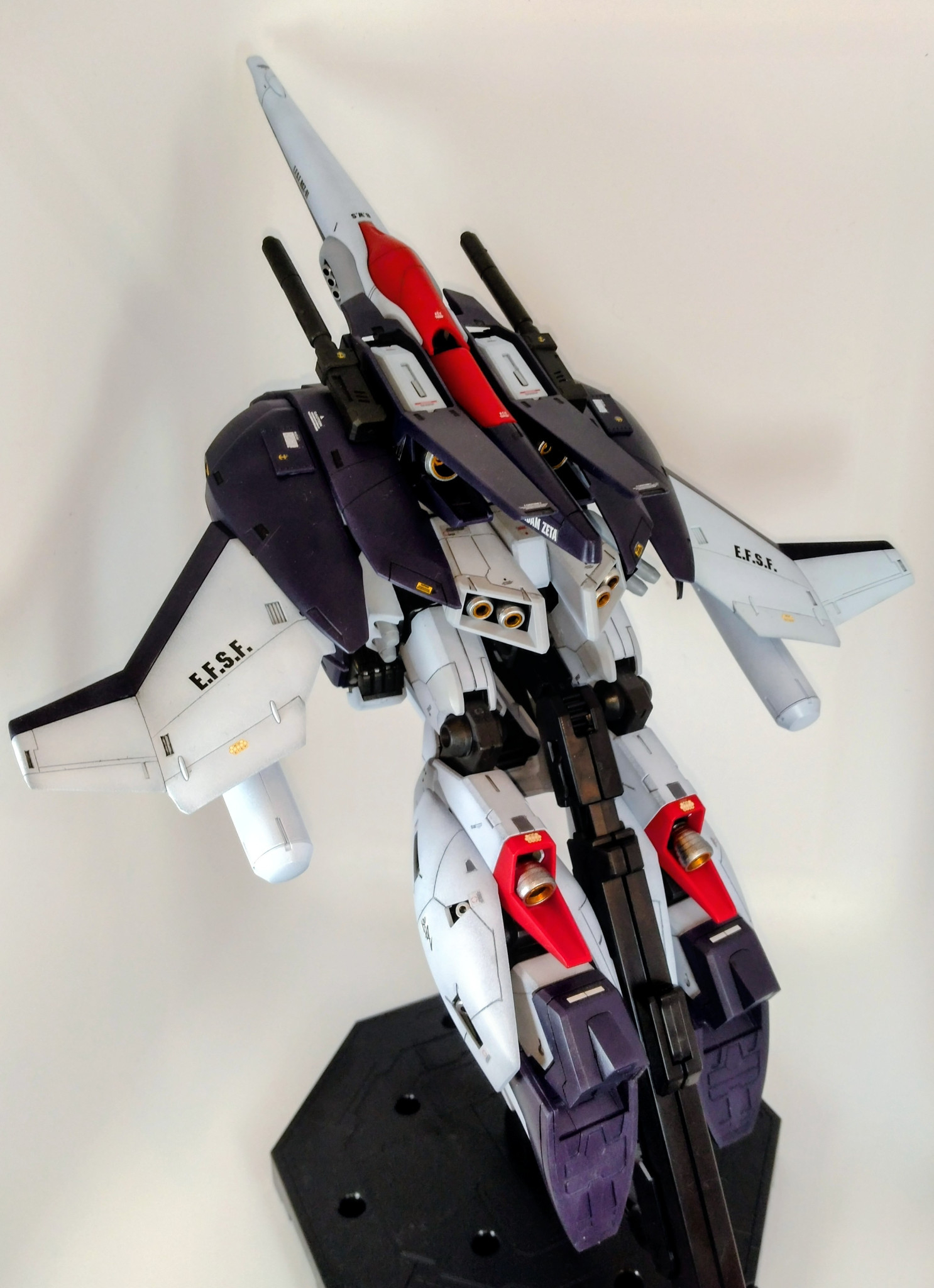 サイドF限定品ですが、元のキットは少し古めの構造です。合わせ目は段落ちモールドにしました。スジボリやプラチップでディテールアップしてます。アンテナはMGゼータの余りを切り貼りしました。