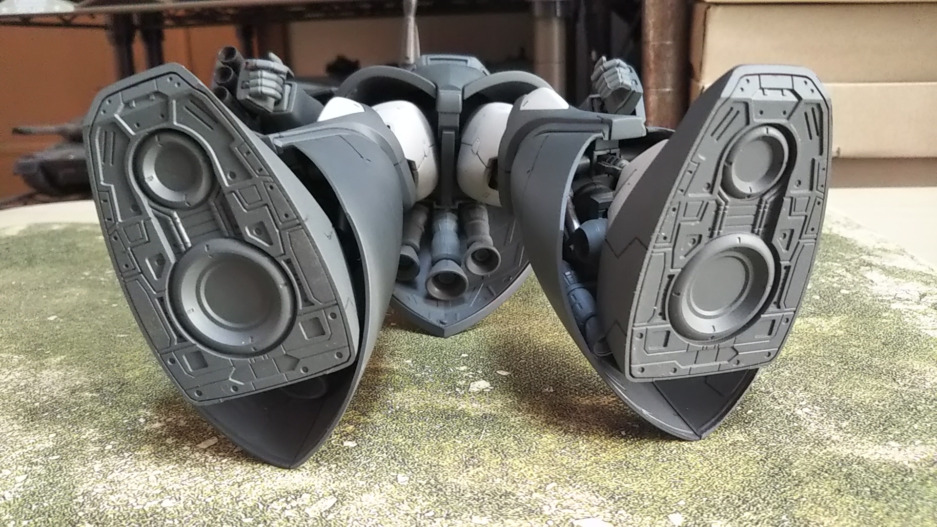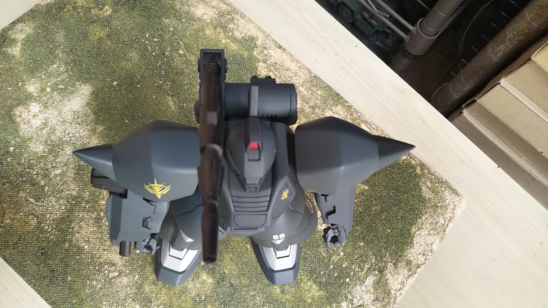 正面💦旧MGキットは、ジョニーライデン専用機とコンパチで手持ち武器もなく塗装も必須でした。キットの箱絵を参考にそれっぽく塗装しています。