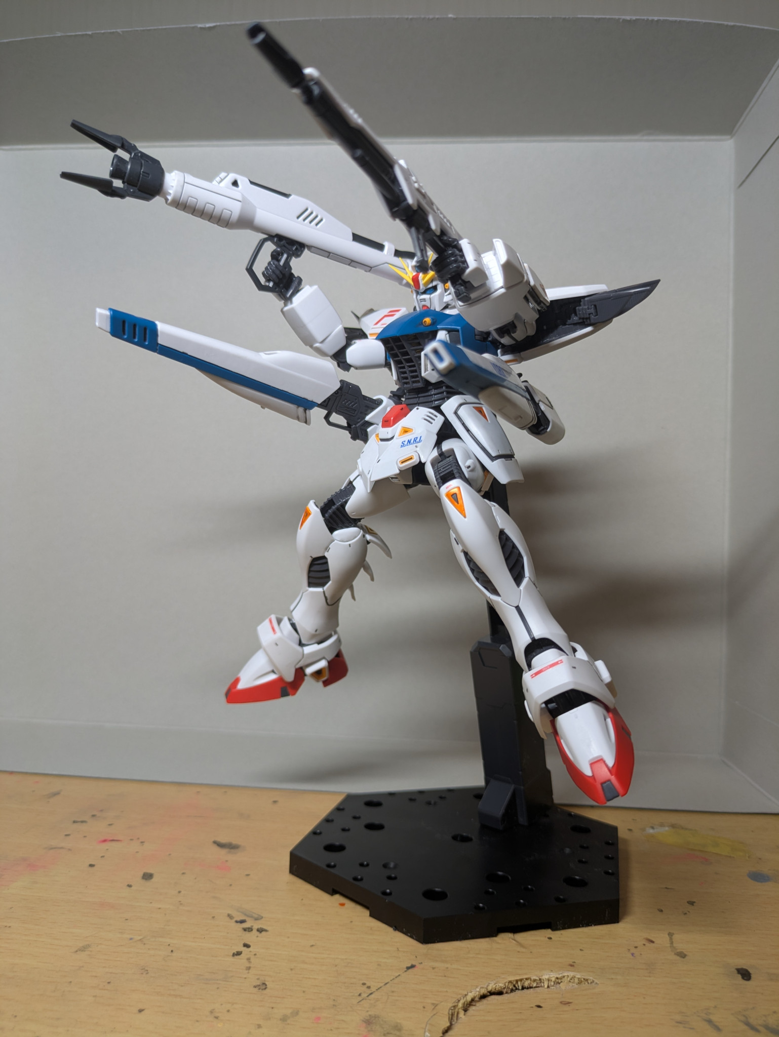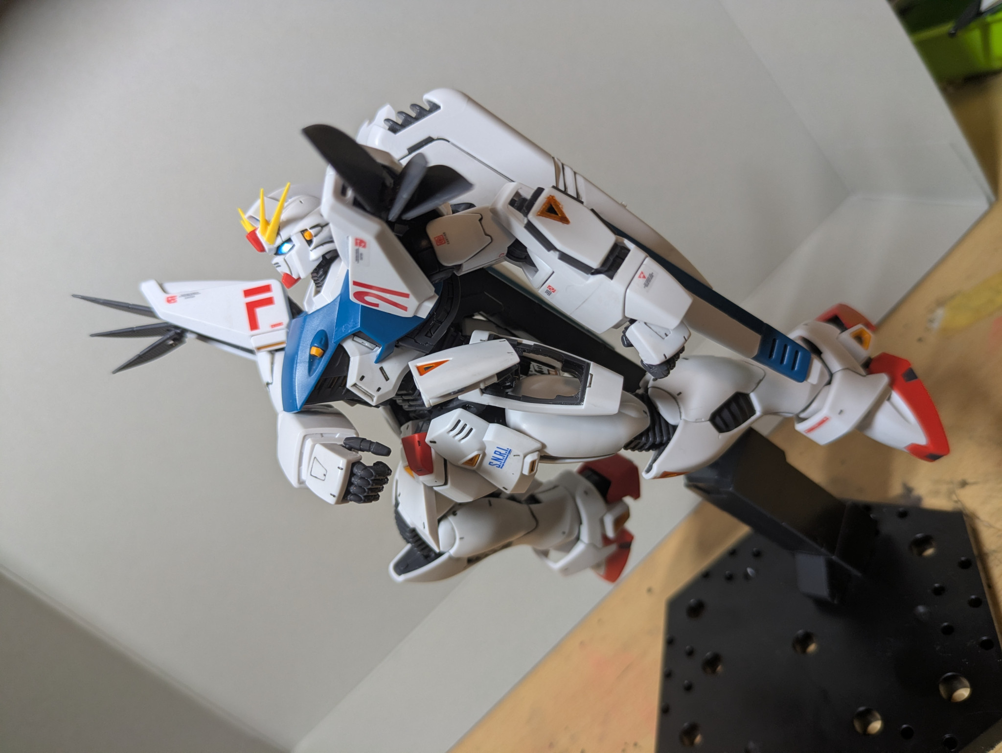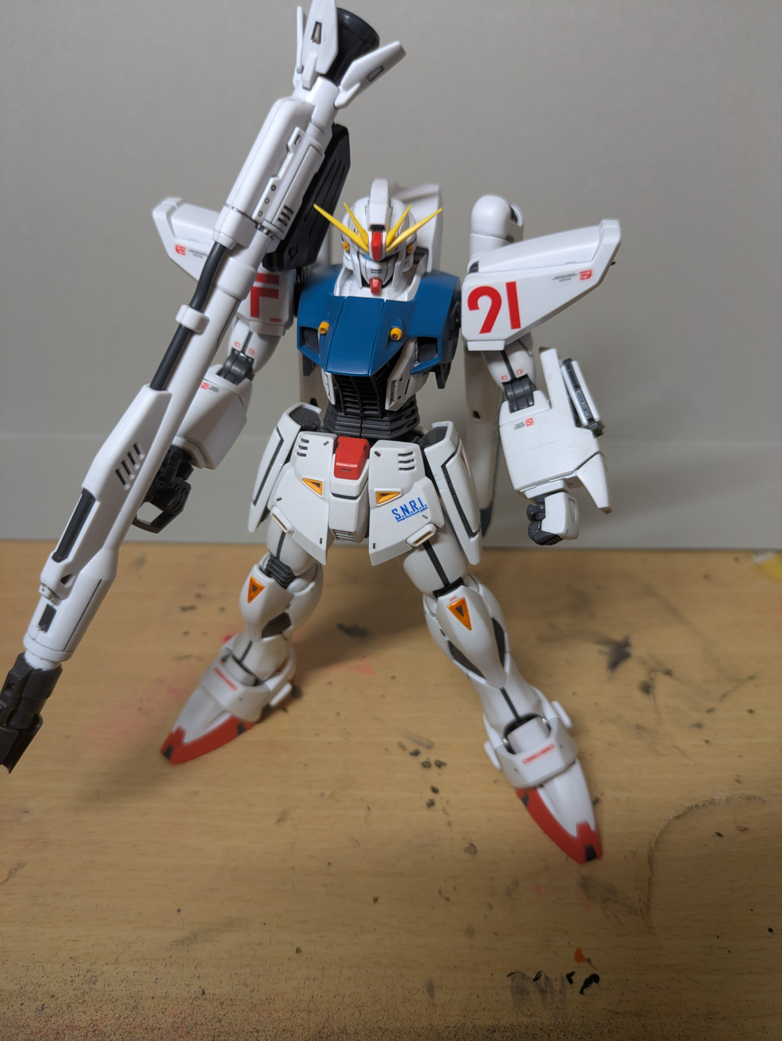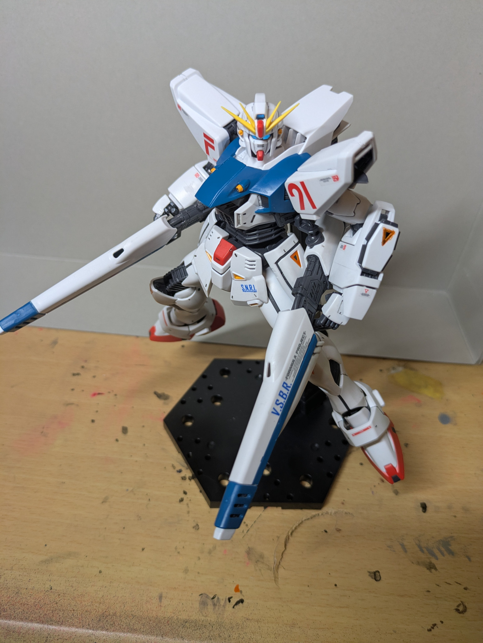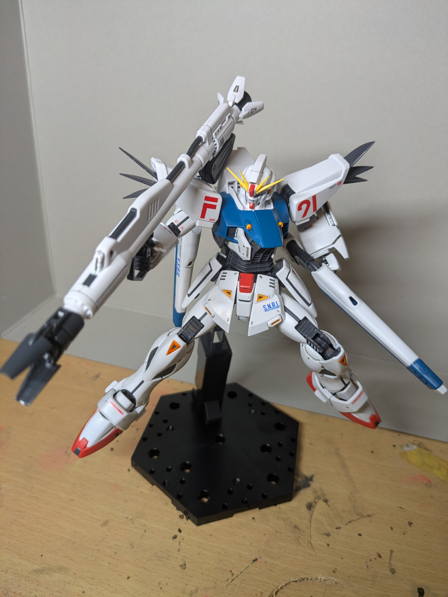 自分がガンダムフェイスのmsの中で1番好きなf91です。ジェガンと同じタイミングで買ったf91です。ジェガンと同じ値段で売ってたのをみて即買ってしまいました。ジェガンと発売されたタイミングが近いのですがフレームがABSだったのが意外でしたね。てっきりKPSかと思ってました。ガンダムドライデカールを貼るのがちょっとめんどくさかったですがプロポーション。ギミック共に大満足でした。