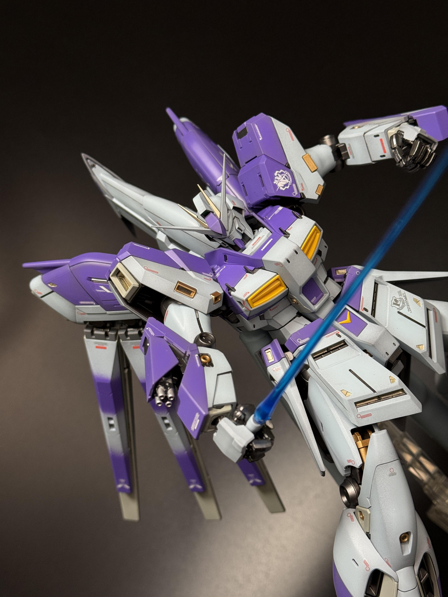 自分の中のハイニューのイメージが固まったのはスパロボα外伝や第二次αなのですが、ゲーム内ではけっこう青みがかった機体色だったのでそれをイメージして塗装しました。