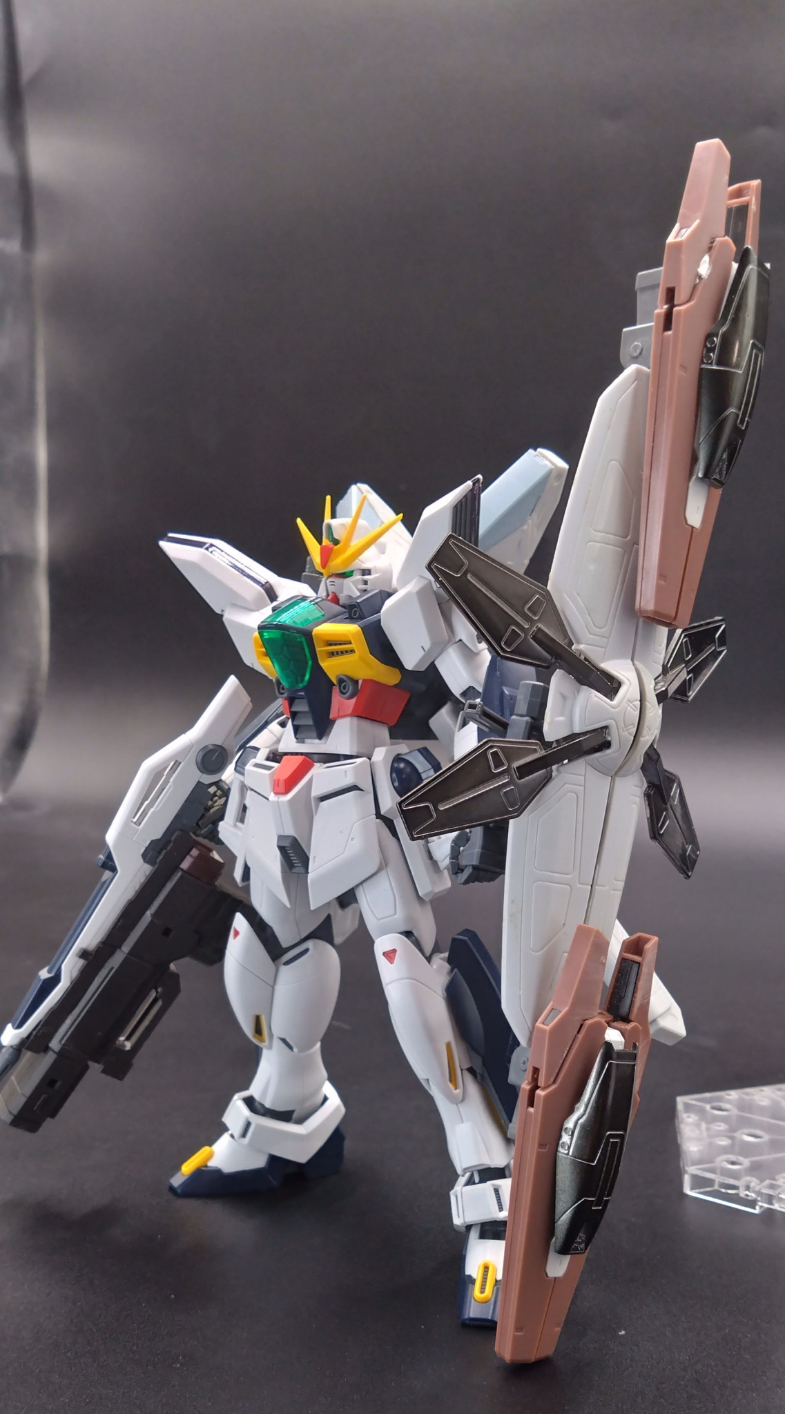 素体は積んでたMGガンダムDXにシールドと専用バックパックは旧キットXディバイダ―を使用肩と背中バックパックはジャンク屋でMGガンダムX売ってたのでW
