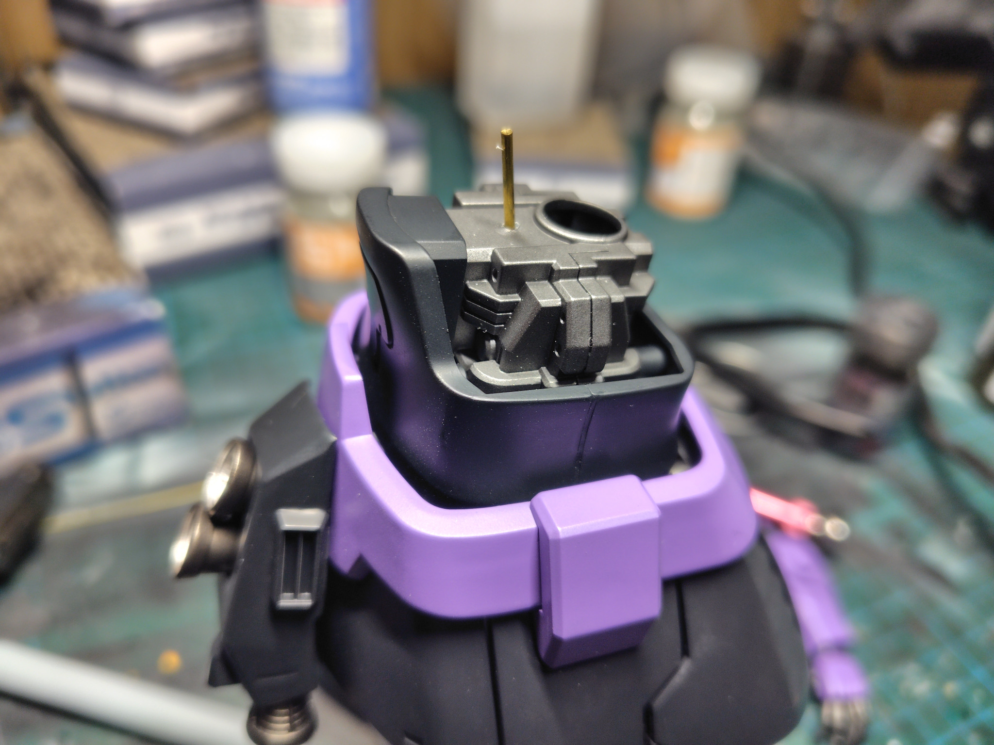 とは言え組んでみたら予想通り重すぎて自立不可能だった為胴体に真鍮線3本入れて無理矢理維持してますが膝がやられそうなのでスタンド使う用の穴も空けました。
