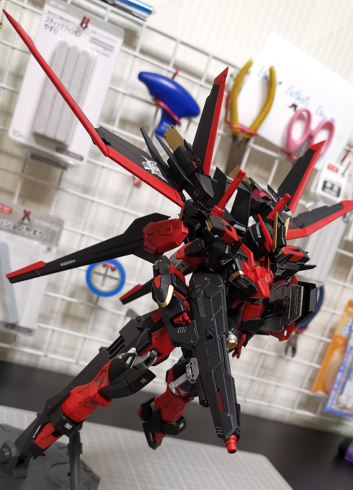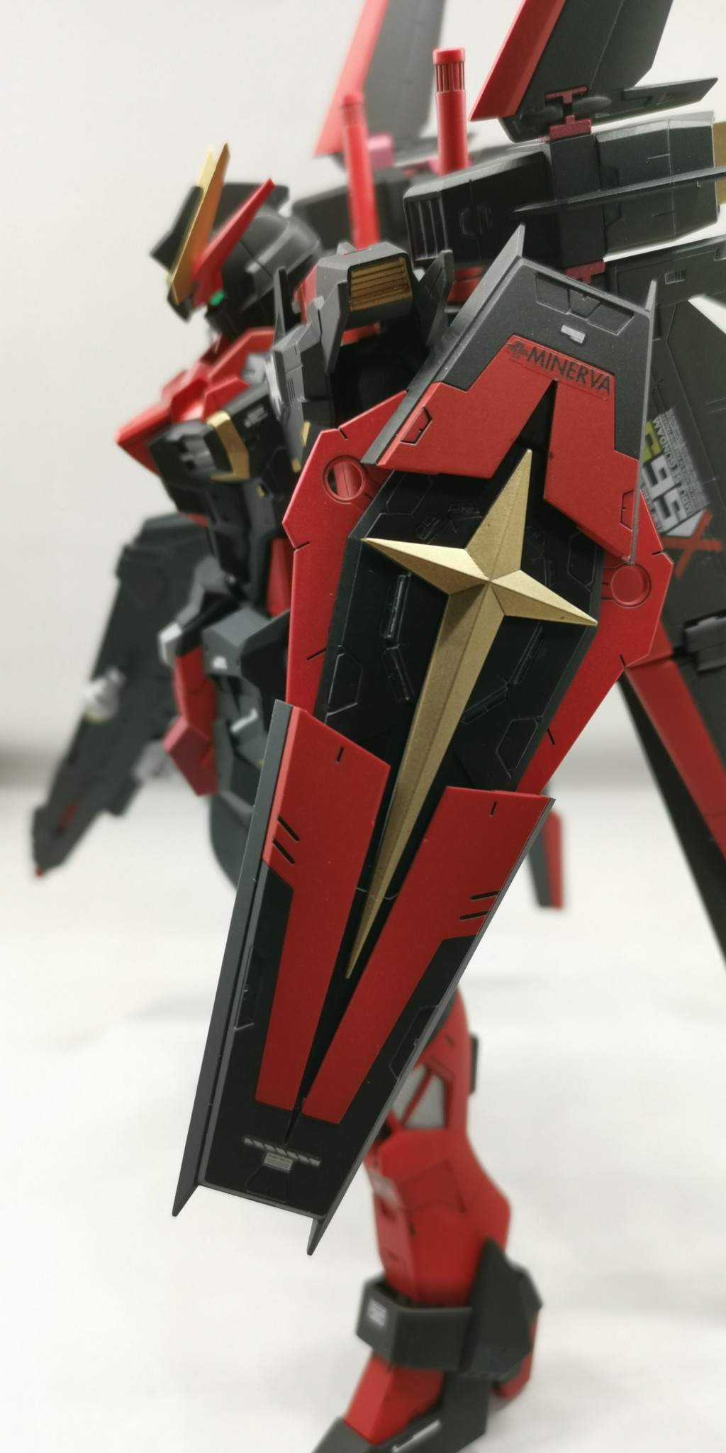 少し分かりにくいですが、赤は真紅をメインにして、スラスターなど一部メタリックレッドも使ってアクセントを付けてます。