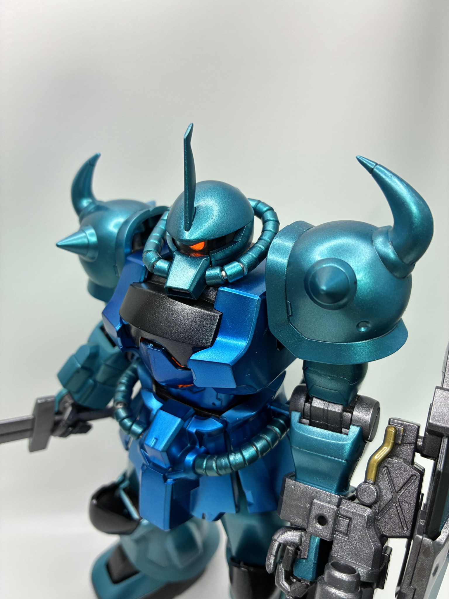 @RA76 MG 2026.02/01更新 MGグフカスタム 72 69 いいねしたモデラー(69) 2 0 作品を共有 キャンディ塗装が楽しくなってきてしまい、次はフリマサイトで購入したグフカスタムを塗装してみました 今回は、青い部分をタミヤさんのメタルシルバー下地にクリアブルー(クリアグリーンをちょっとだけ追加)他は青竹色で塗装しました。腹の動力パイプの取り付けを間違えてしまい、隙間が空いてしまいました(;_;)設定のカラーリングとは違うオリジナル塗色にしてみましたコックピットとモノアイは蛍光塗料でビコーンするように!煽りで見ると、迫力がありますね!昔に作った、なんちゃって汚しのEG-8とのツーショット斜め上からの顔つきカッコいい前回アップのケンプファー とのツーショット コメント コメントをして応援しよう コメントにはログインが必要です T-Non 2時間前 キラッキラ✨️ 美しい仕上がりが素敵👍️ 青みの異なるケンプファーとの並びもたまりません😍 @RA76 2時間前 T-Nonさん、いつもコメントありがとうございます♪キラッキラMSが最近楽しくて、次は赤色行こうかなって考えています @RA76 MGで販売されていないキットを作ってみたくなる今日この頃(^^)50歳にもうちょいで手が届く歳ですが、よろしくお願いします。 @RA76さんがお薦めする作品 ガンダム7号機 1/100 MG ガンダム 6号機 マドロック 6 MGケンプファー 久しぶりの投稿です。過去作はガンダムばっかりだったので、一番… 9 クロスボーンガンダムX-0 以前アップしたクロスボーンガンダムX-2と一緒にフリマアプリ… 6 ネオガンダム 旧キット、ネオガンダムの外装をMGクロスボーンガンダムのフレ… 6 クロスボーンガンダムX-2 フリマサイトで購入した、クロスボーンガンダムx-0からx-3… @RA76さんのページ この作品をお薦め作品に設定する Please login to update your profile! Please login to update your profile! Please login to update your profile! Please login to update your profile!