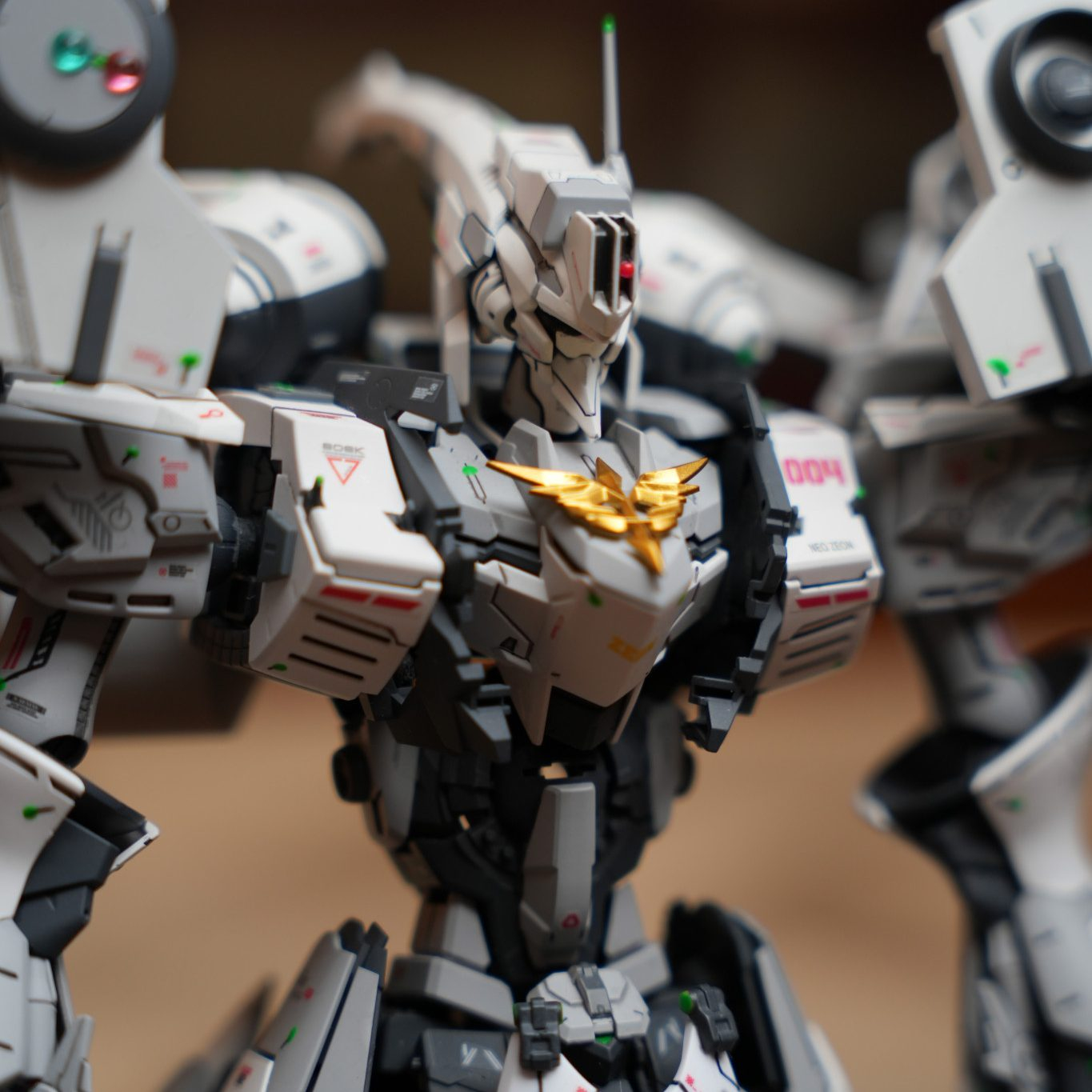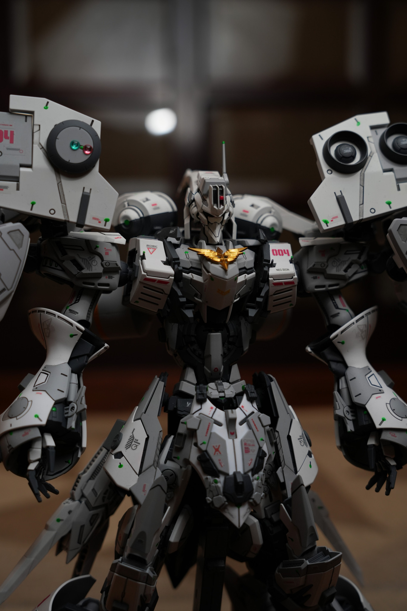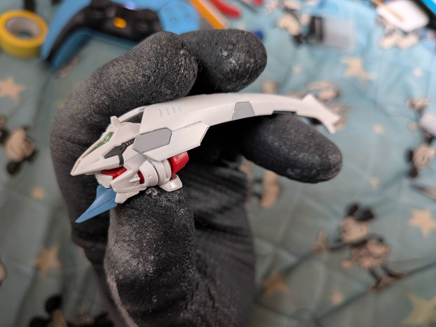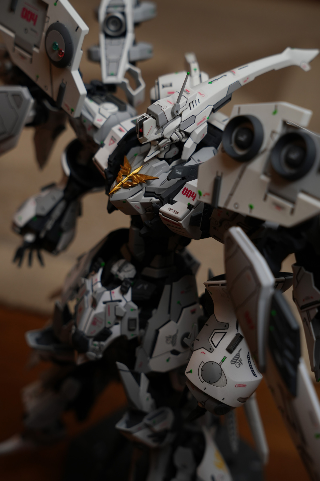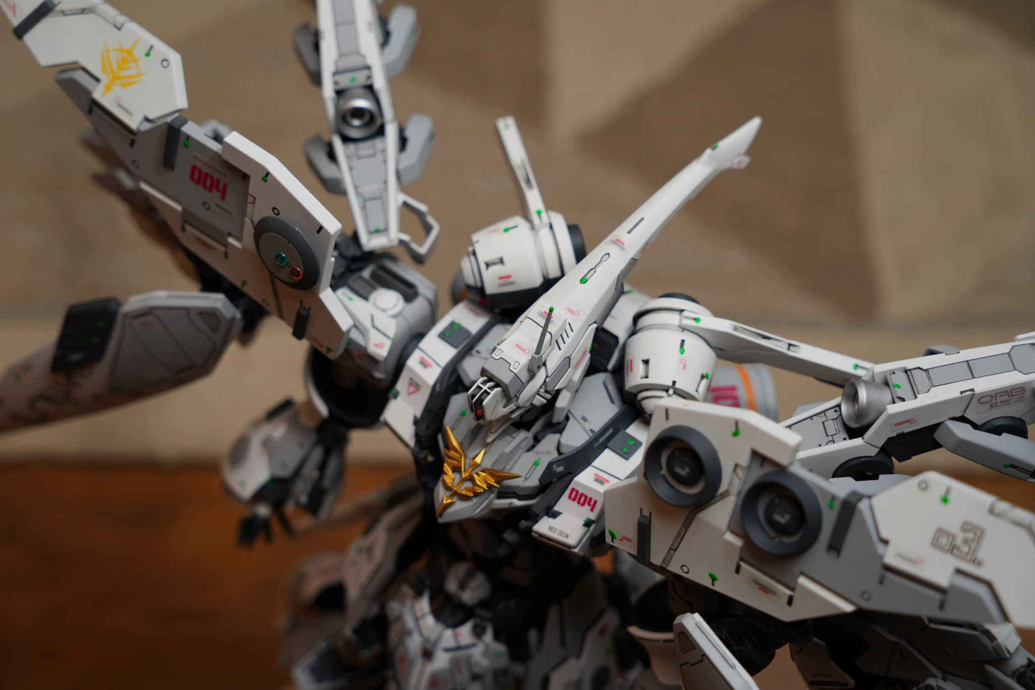 エクシアリペアの胴体の上にバルバトスの胴体を置いて、横にサザビーの胴体をつけるという魔改造を行っております。付けませんけど余剰スペース的に太陽炉積めれます。