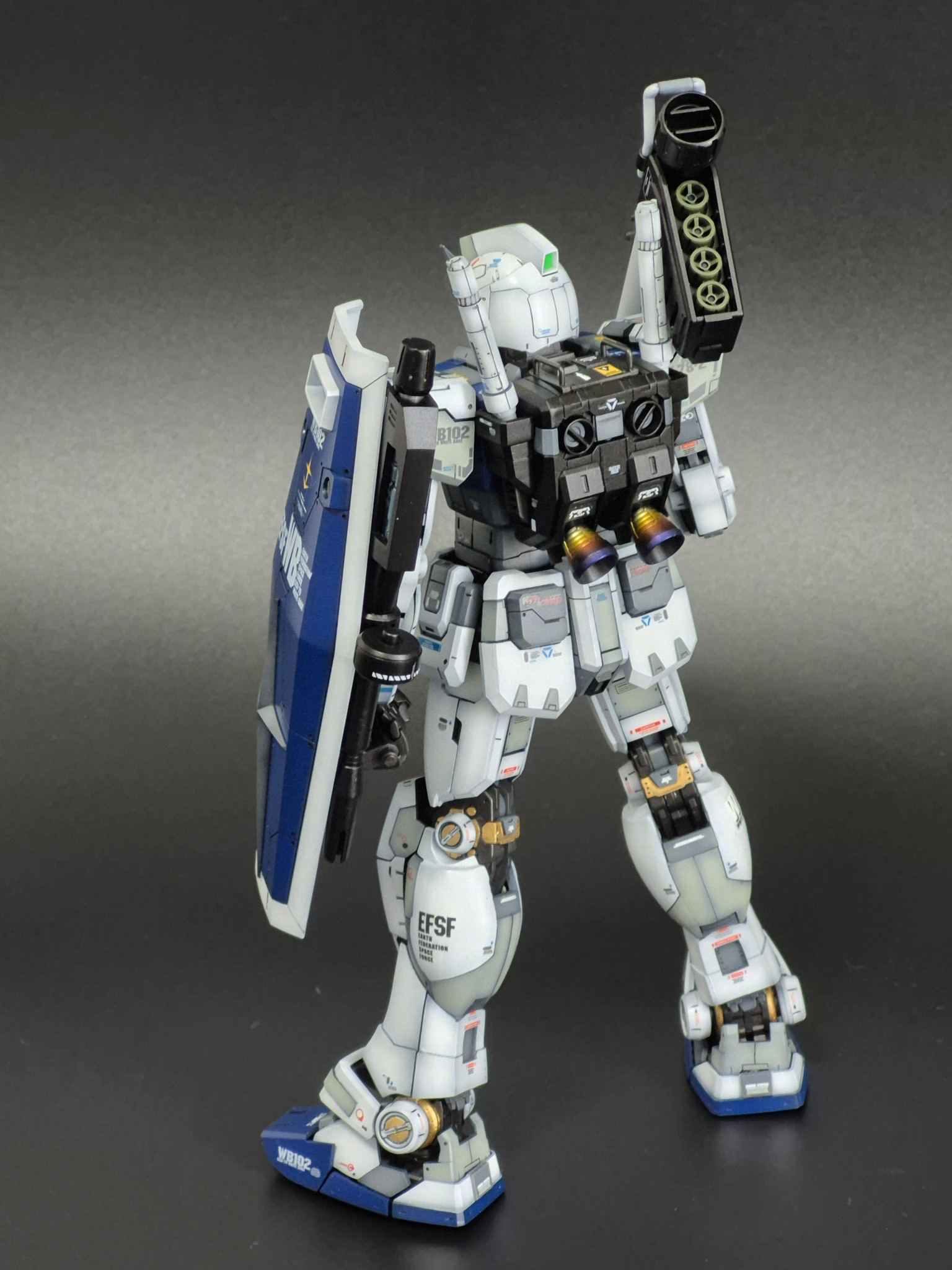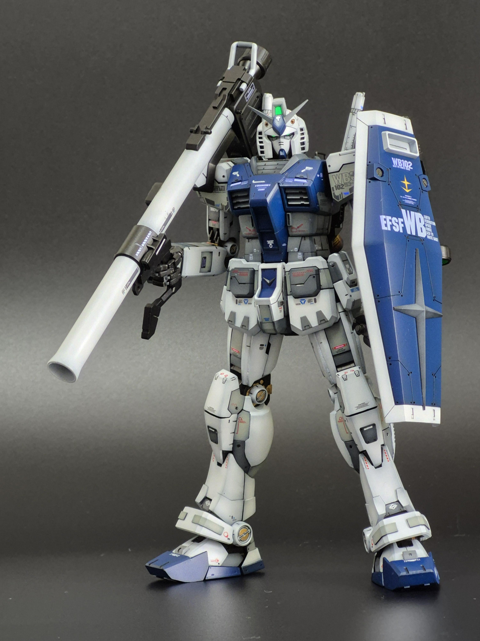2号機は最終決戦であるア⋅バオア⋅クー攻略に向けて、宇宙要塞コンペイトウ(旧ソロモン)にてテストヘッドである3号機のデーターを基にモスク・ハン博士の技術指導によるマグネットコーティング処理を行った。同時に長らく囮としての役目も終え、派手なトリコロールカラーから白い悪魔の異名は残しつつロービジ化したであろうと妄想し最終決戦仕様を製作しました。