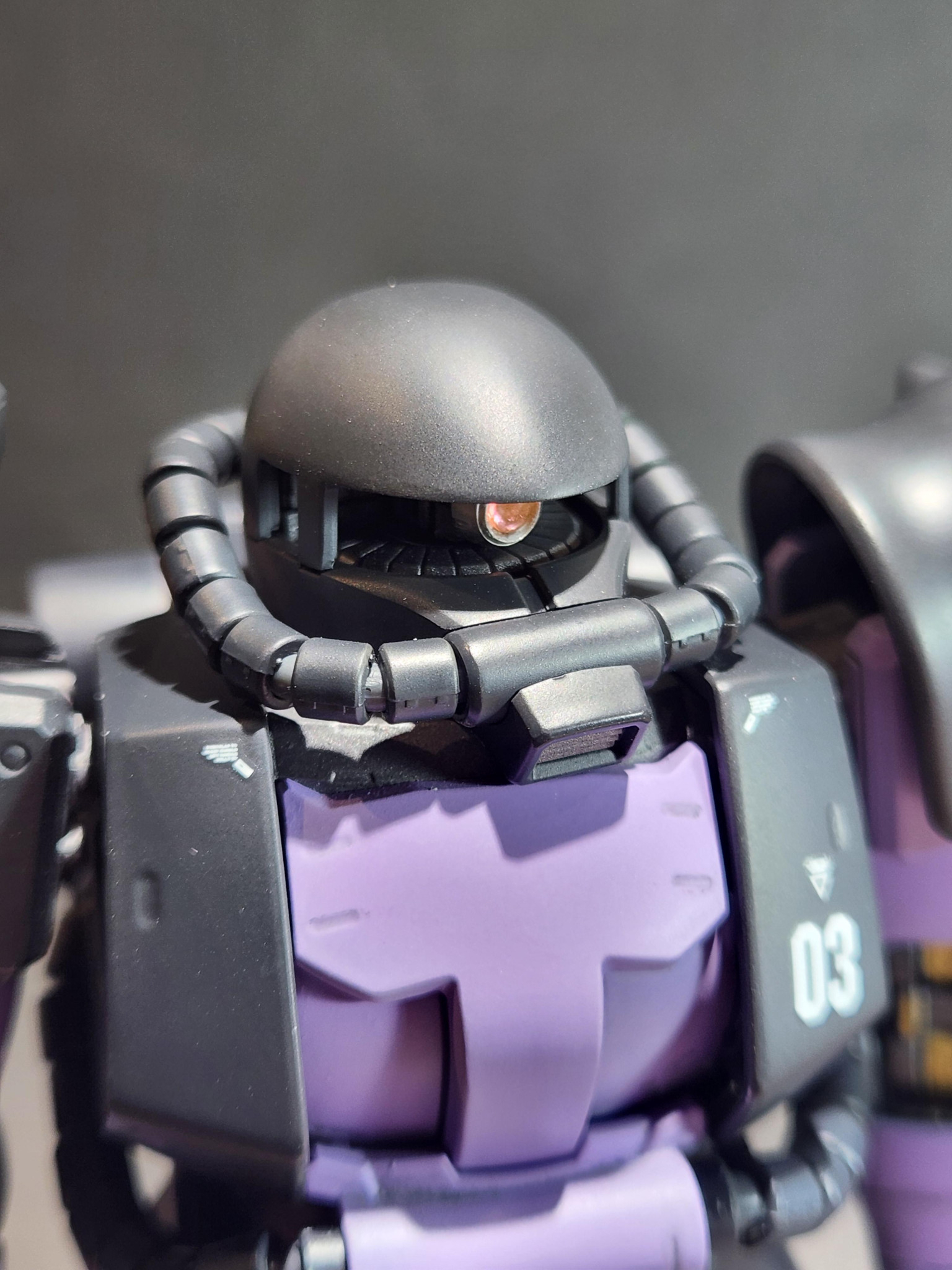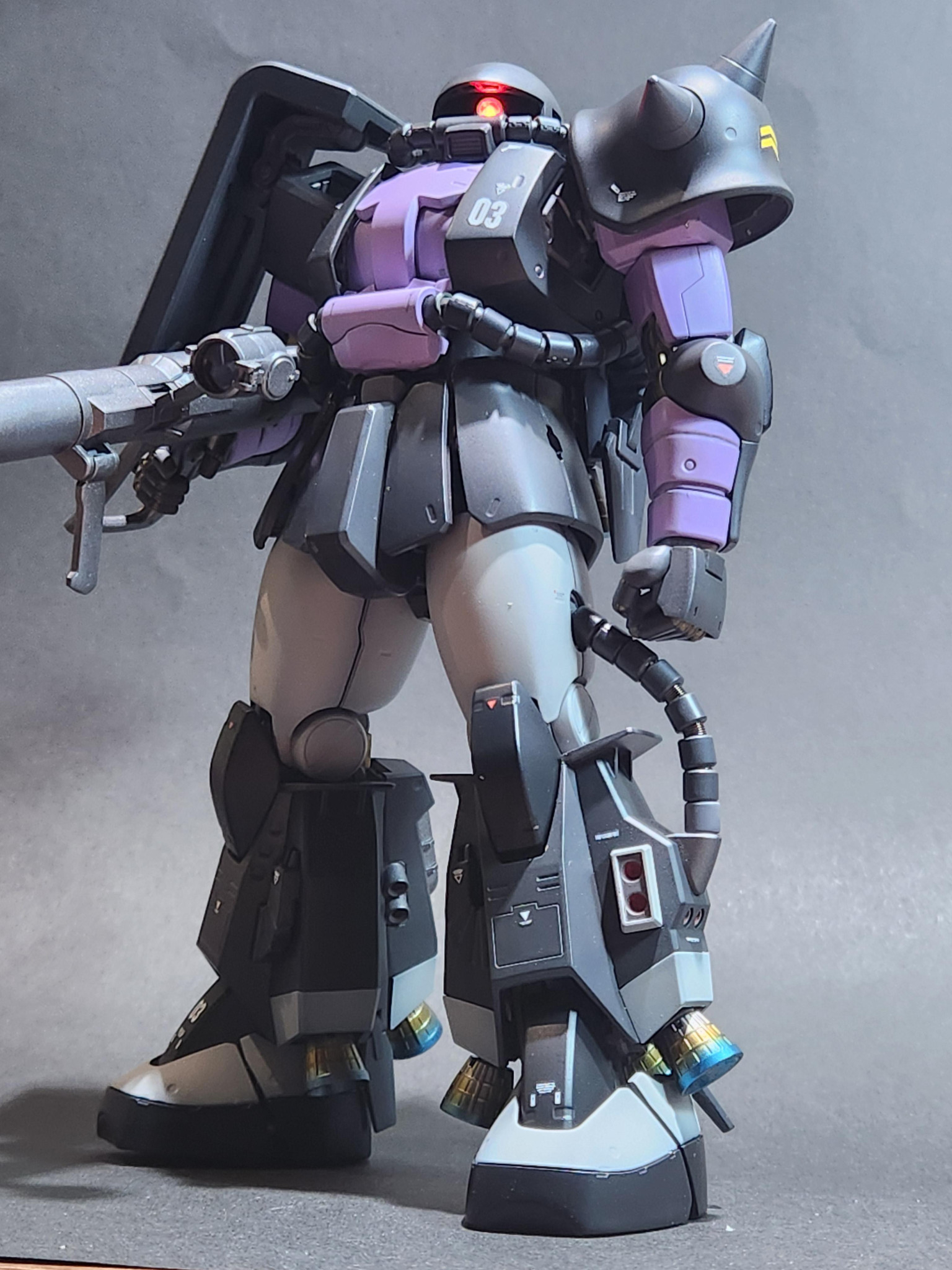 ありがとうございます!黒い三連星だけど、黒や白を塗るとイメージから離れるので、グレーを色々調色して塗装しました。初めてのバーニア焼け塗装も練習になりましたし、お気に入りの機体ななりました😊