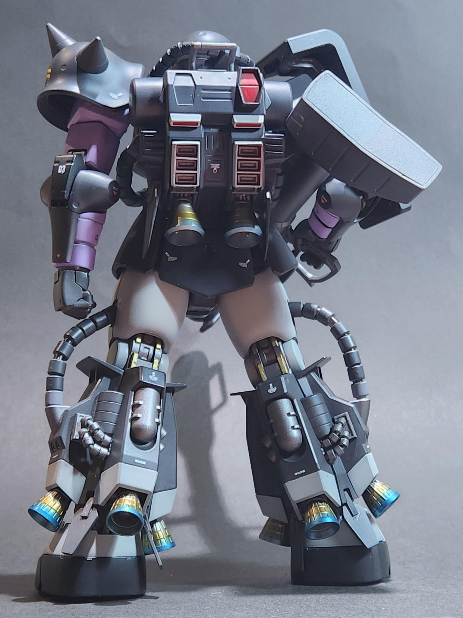 長らく放置していたMG高機動型ザク、黒い三連星機を作りました。初のver.2高機動型だったので、楽しく作れました。