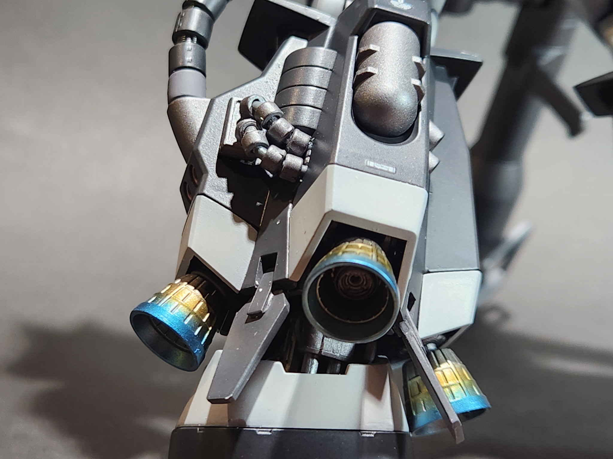 各バーニアを初めて焼け塗装にしてみました。面白いし良い表現の一つだと思いました。高機動型らしいかなと満足です。