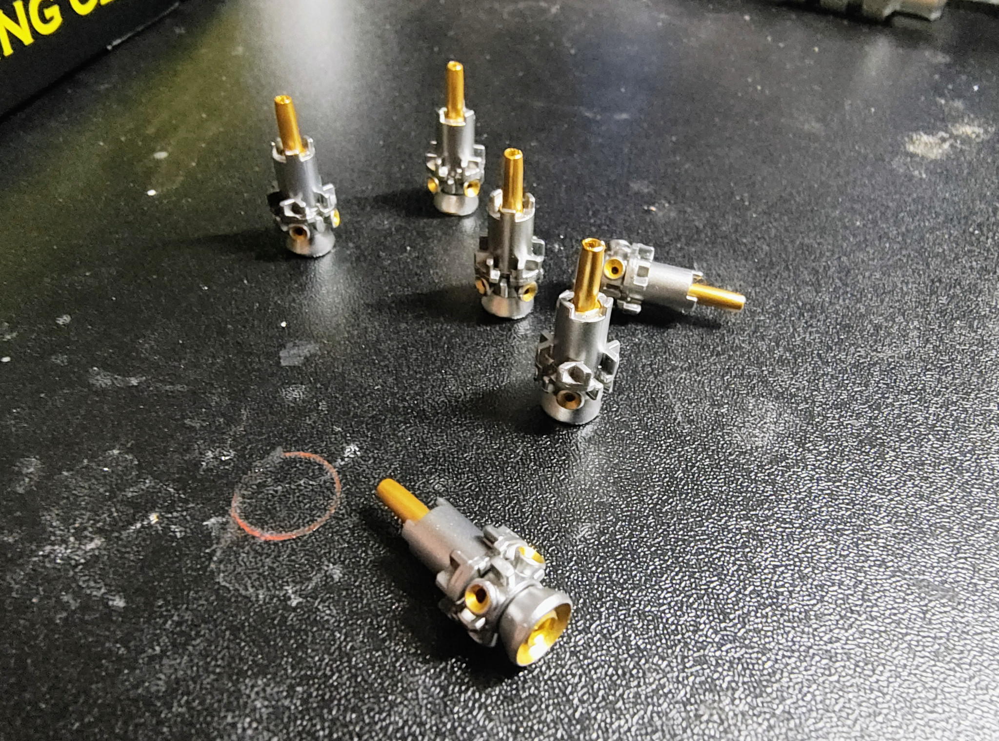 横のちっちゃいバーニアをゴットハンドのスピンモールドでくり抜いた後、面取りビットで漏斗のようにしました。