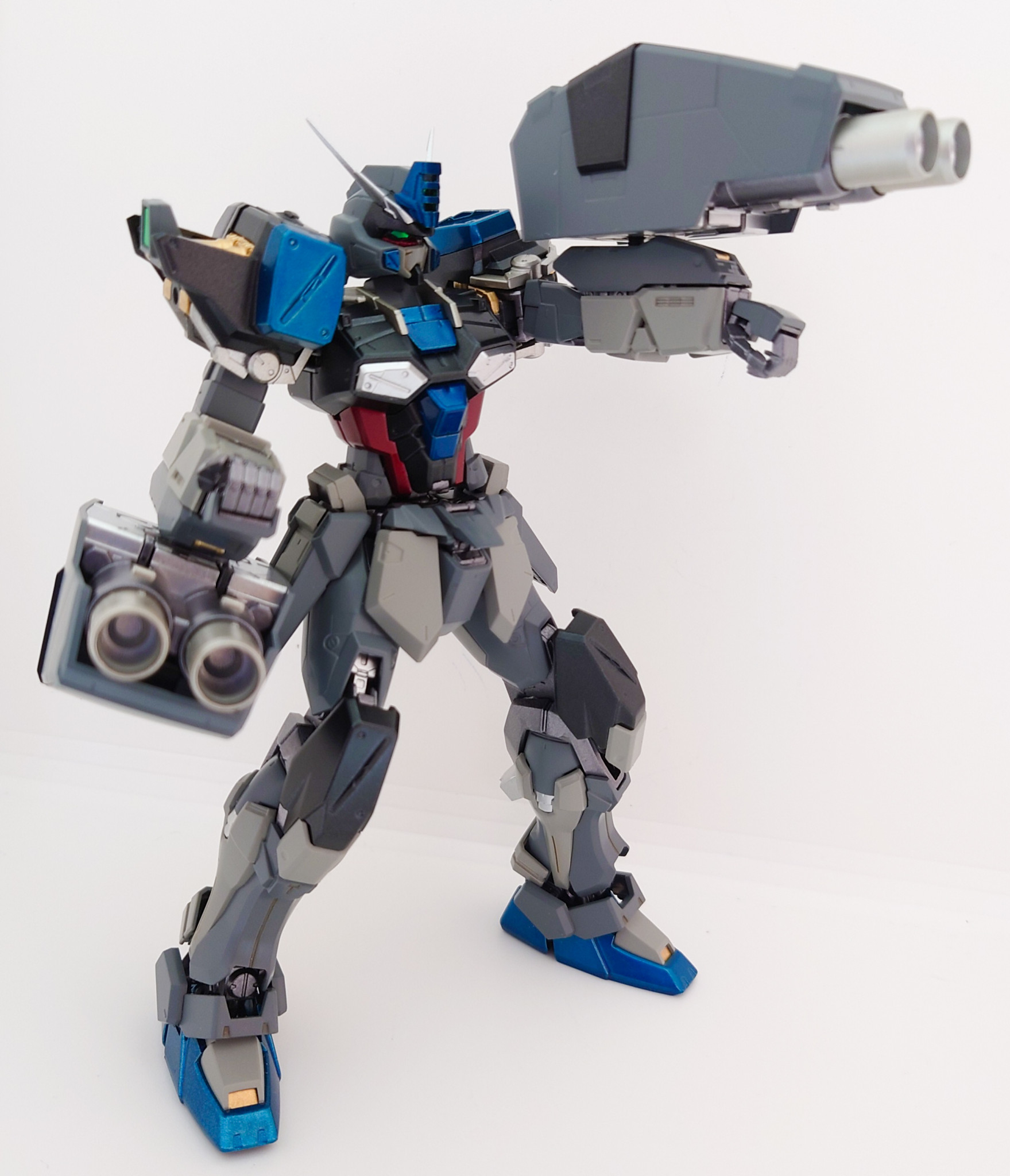 カラーリングはバスターガンダムの緑とオレンジから、青と黒でダークな感じにしてみました。
