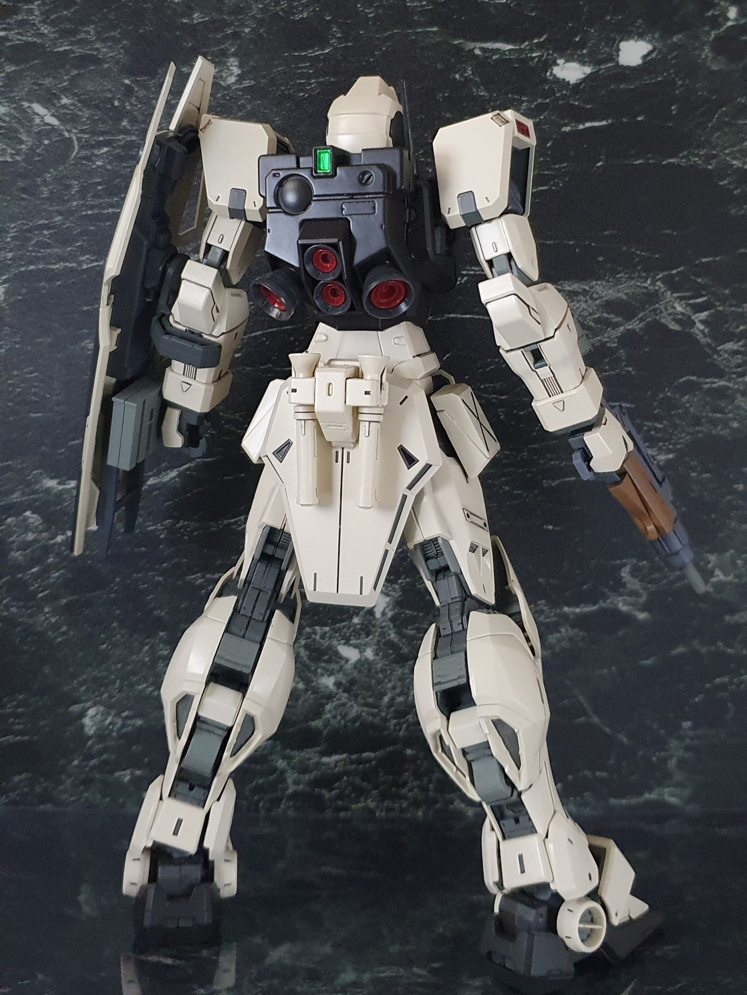 珍しく後ろ姿。SEED系のキットでまとめたので、ジムコマンドのまんまの肩がちょっと浮いてる…
