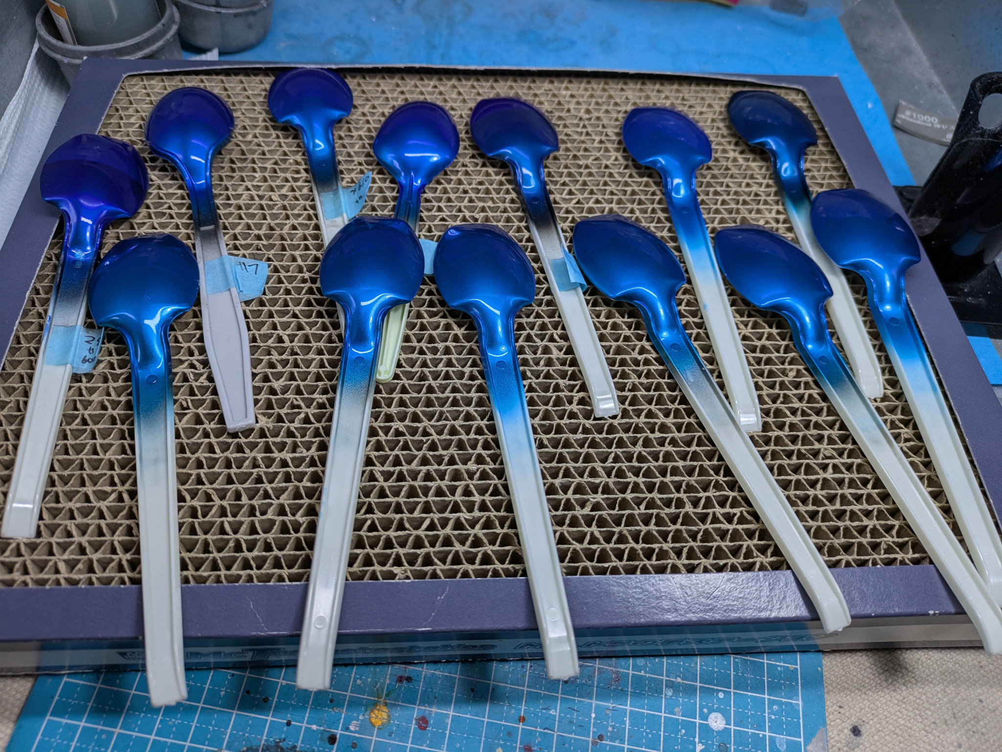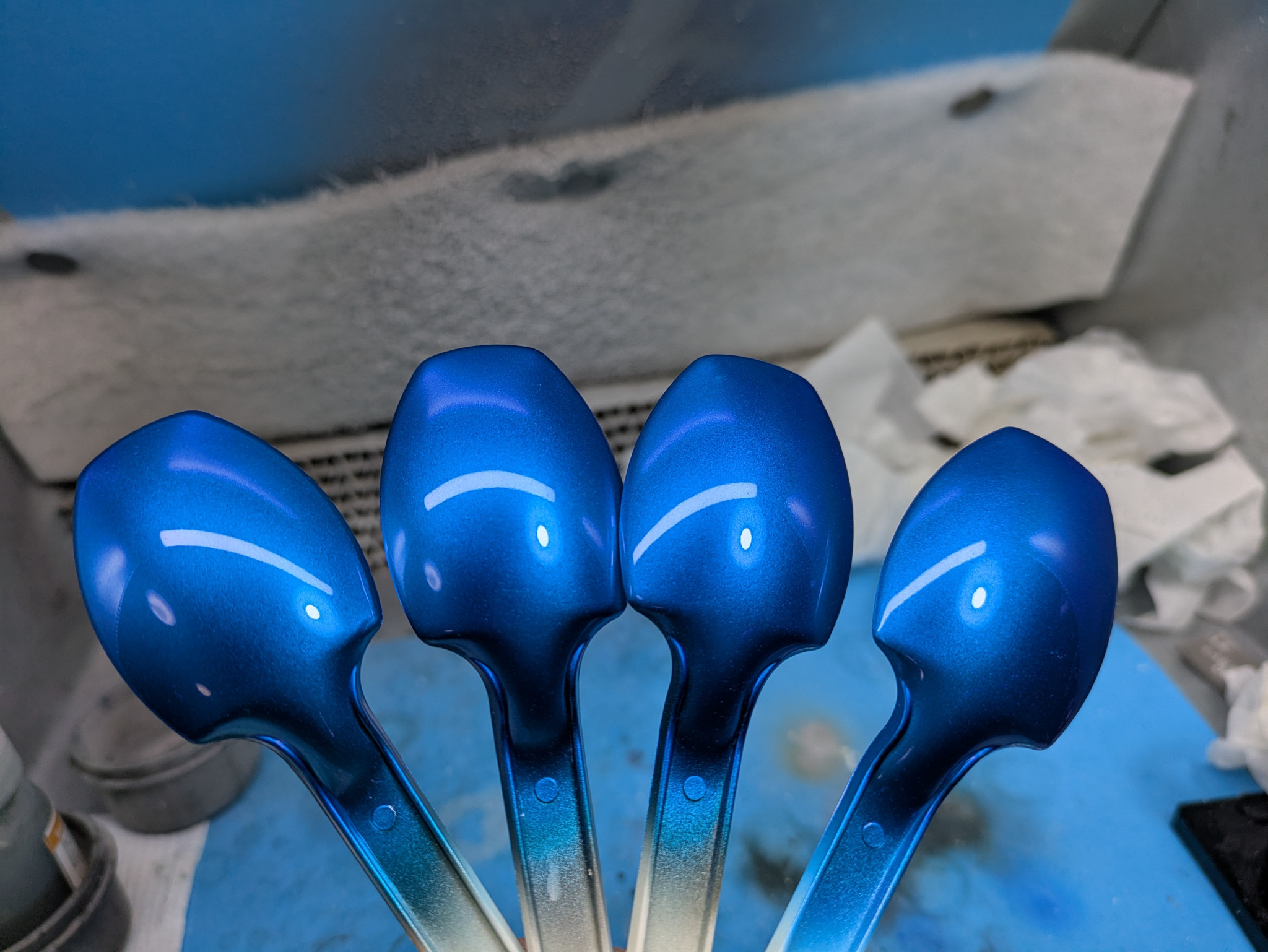 基本240番でやすってサフを吹いて番手変えて整えてブラック吹いて→シルバ→青クリア→光沢→コンパウンド