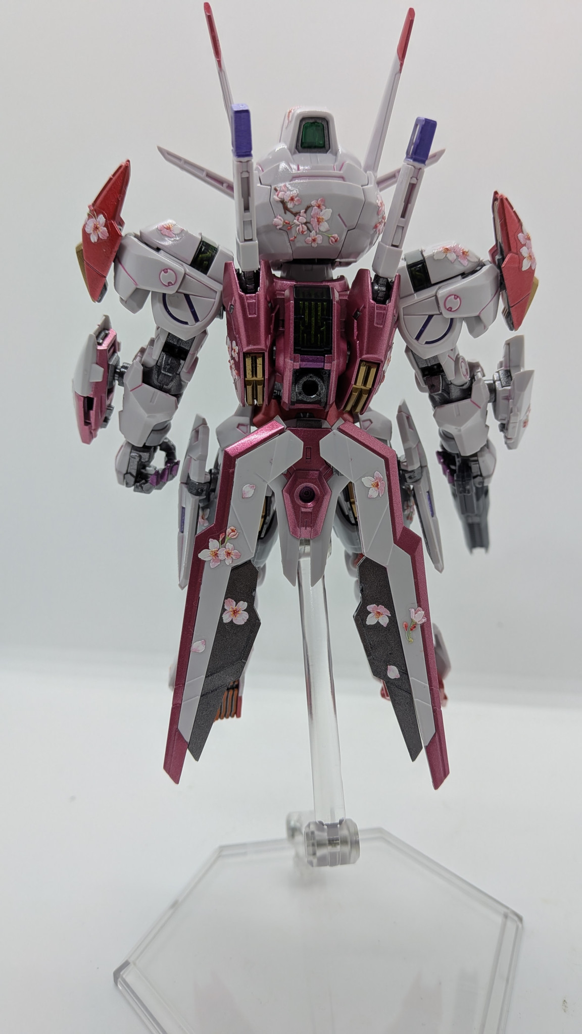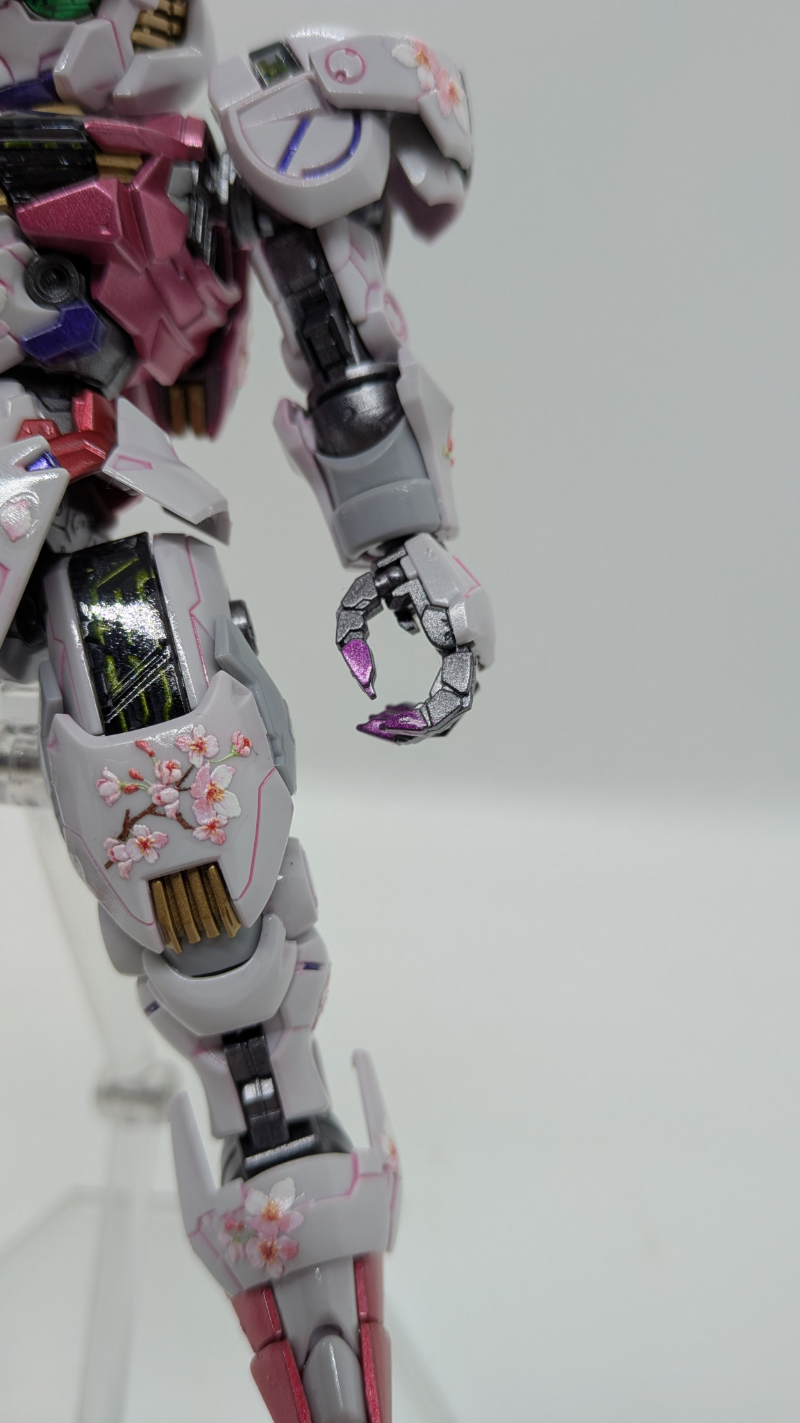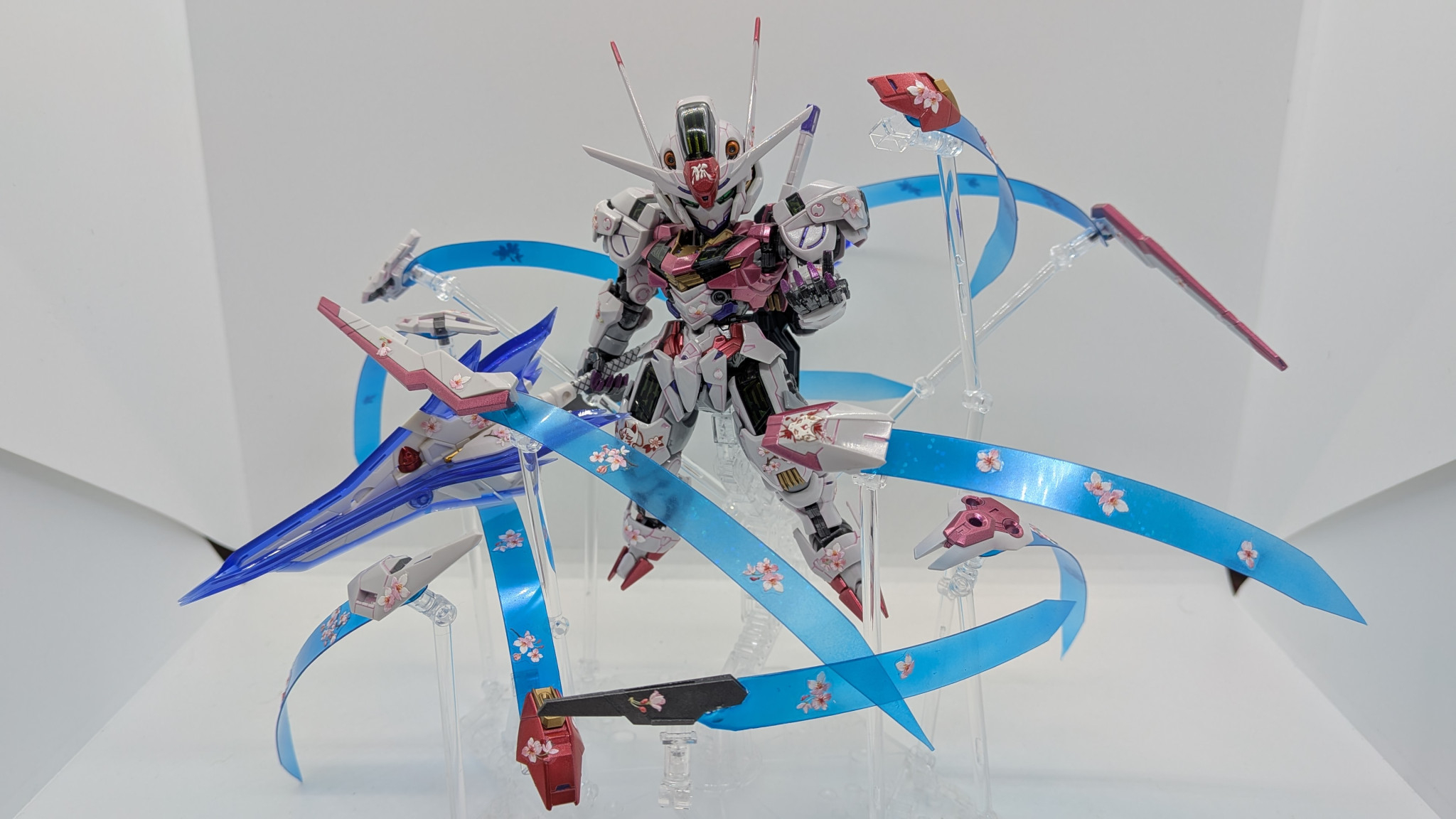 ガンビットエフェクトも自作。セリアで見つけたホログラムカードケースを切り出し、クリアーブルーで塗装して余っていた桜シールを散りばめました。桜が舞い散っているように見える・・・気がする!