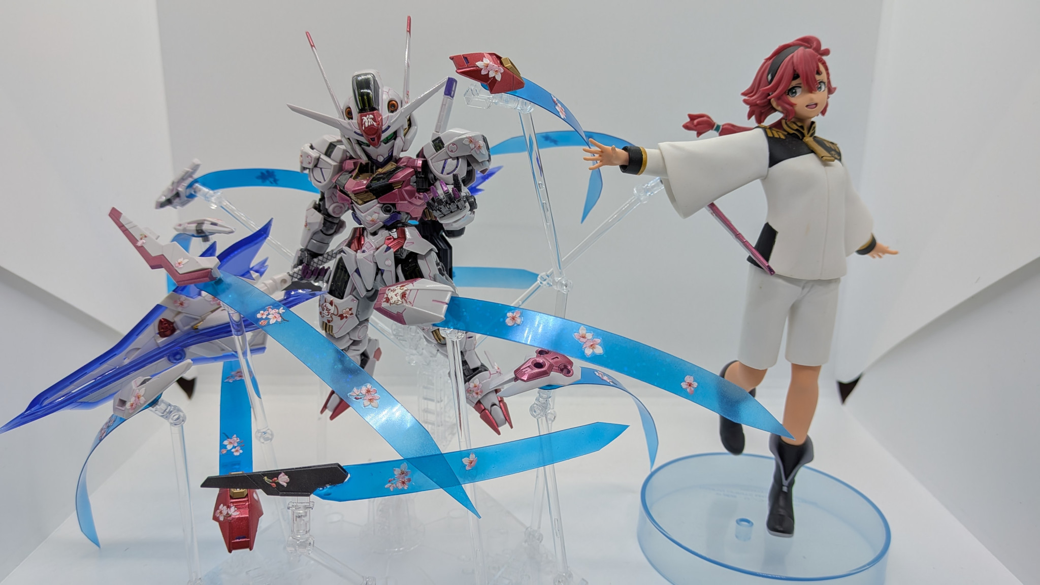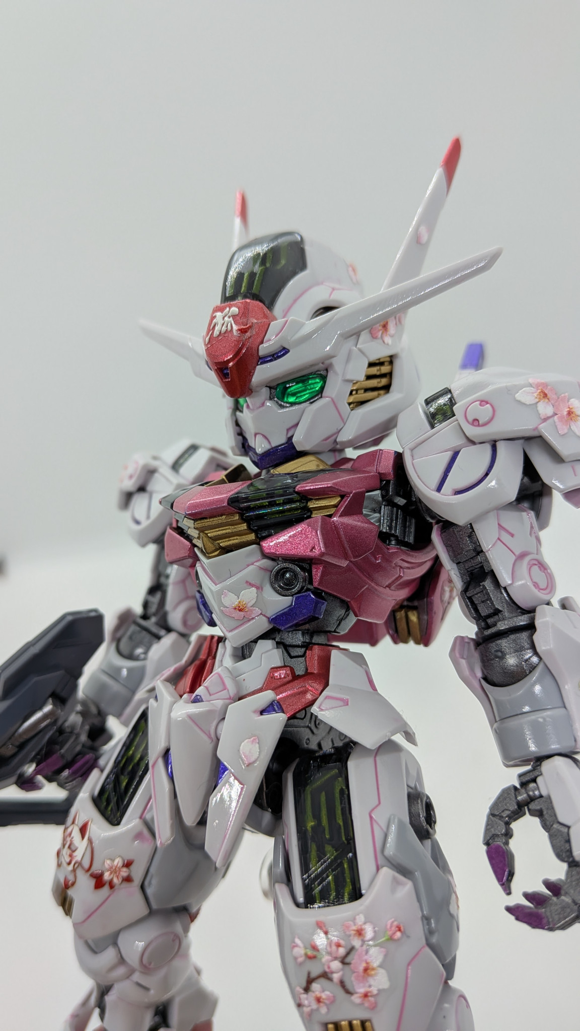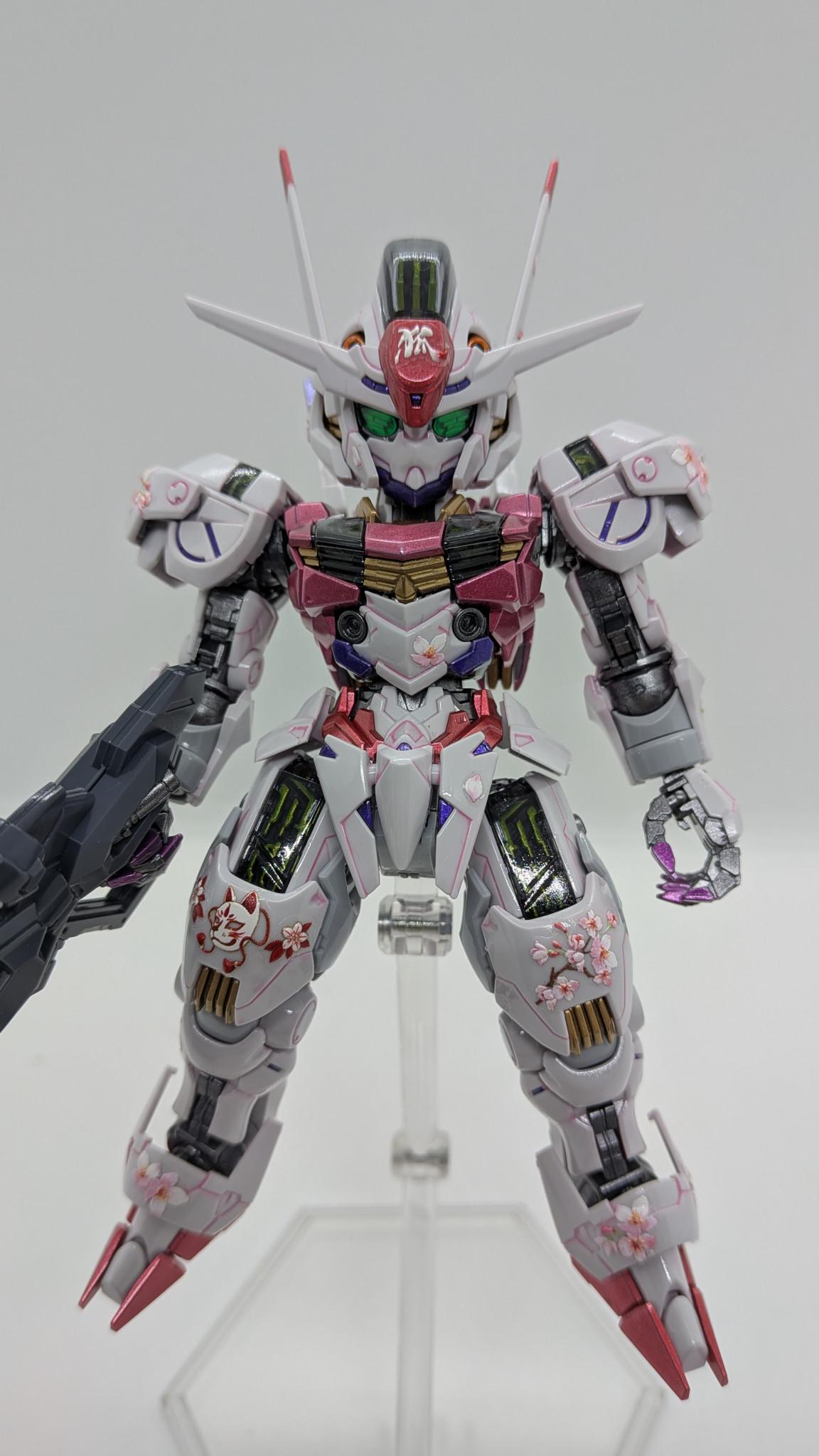 ガンビットエフェクトも自作。セリアで見つけたホログラムカードケースを切り出し、クリアーブルーで塗装して余っていた桜シールを散りばめました。桜が舞い散っているように見える・・・気がする!