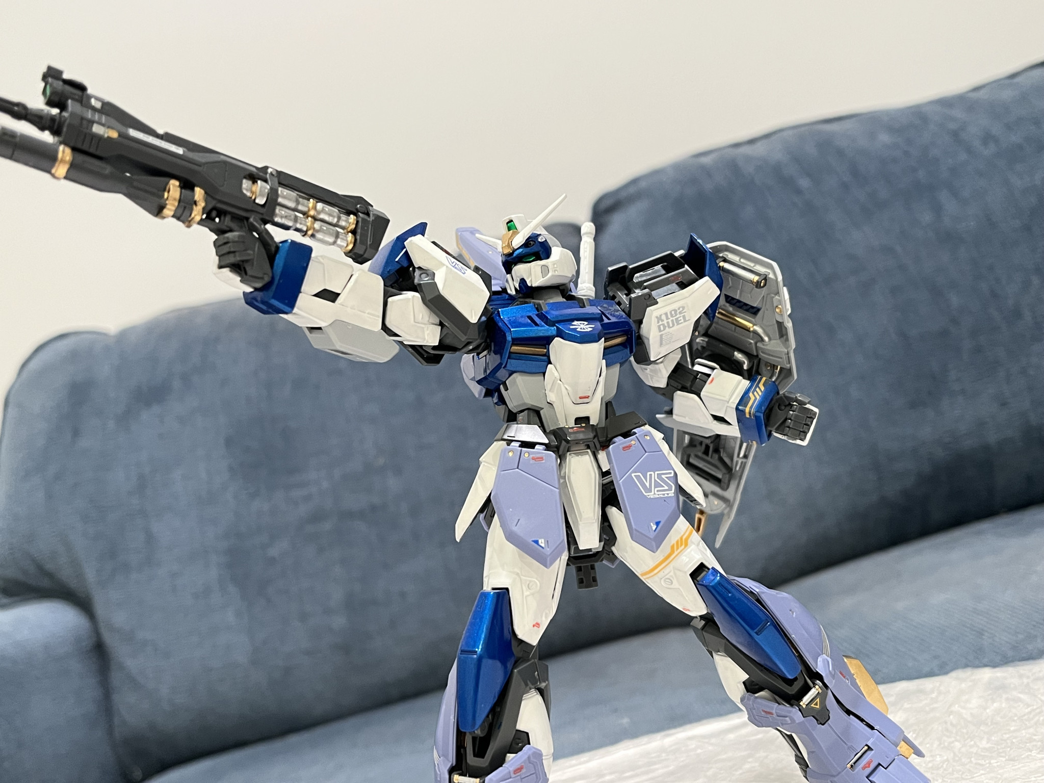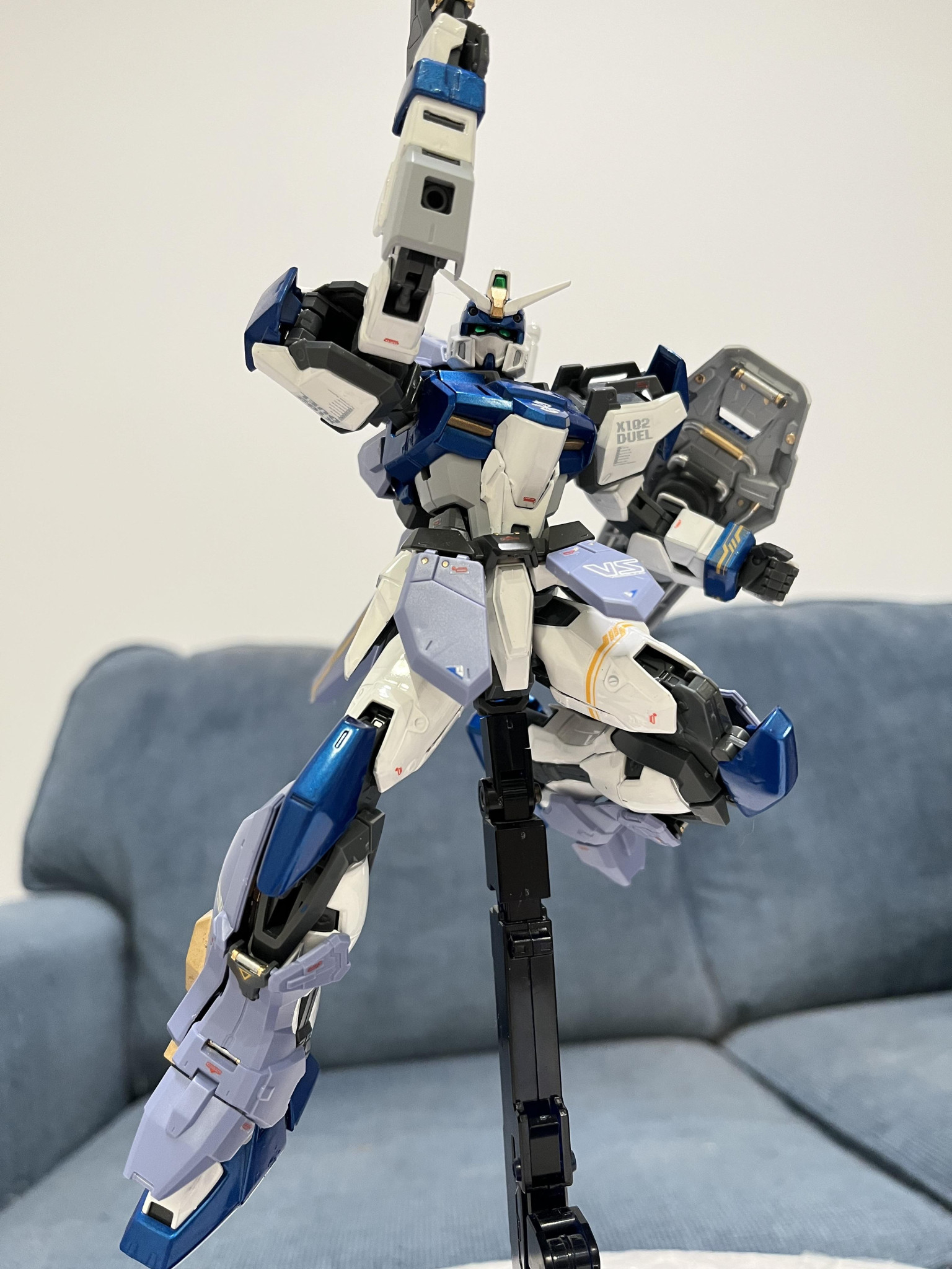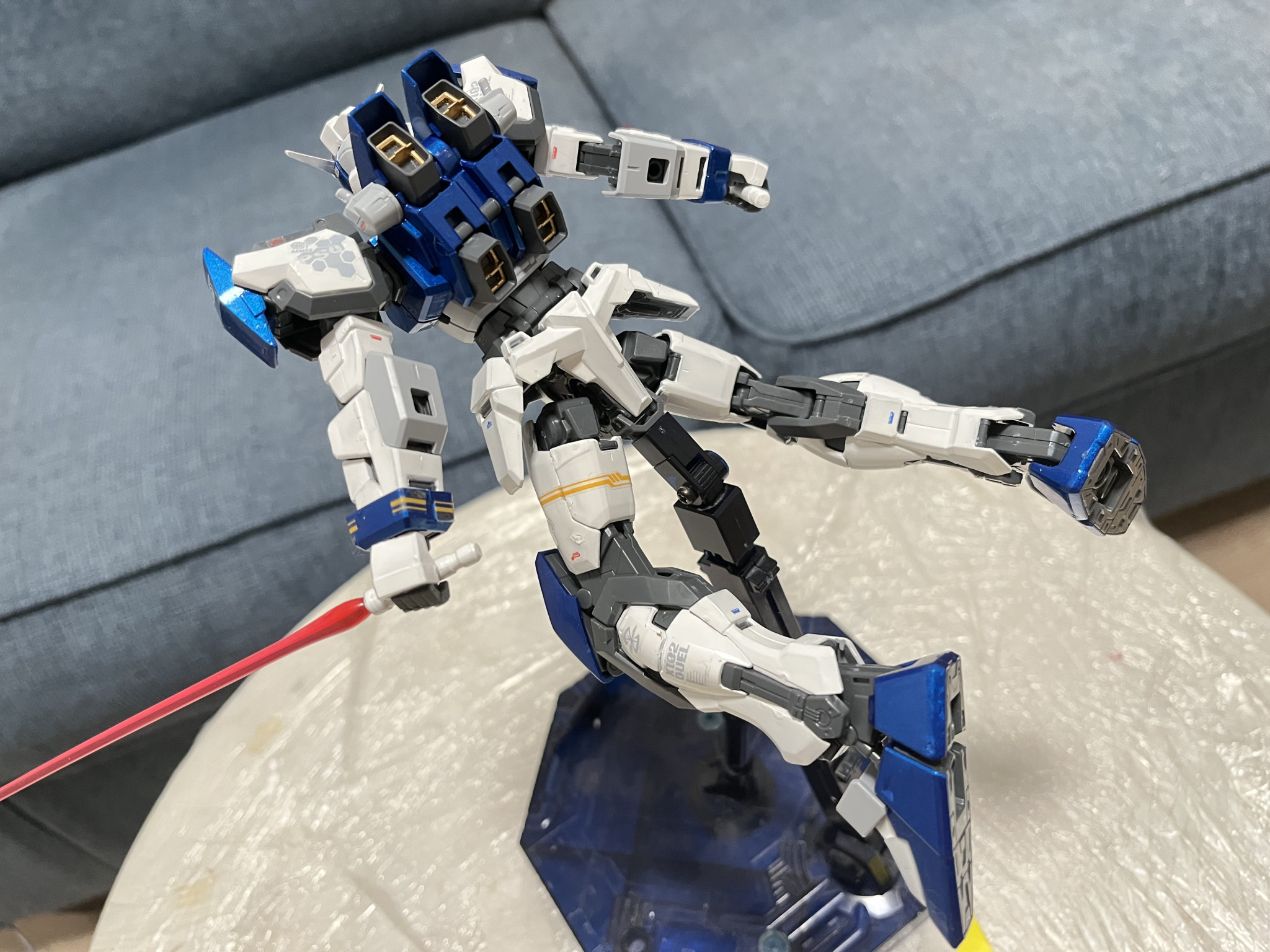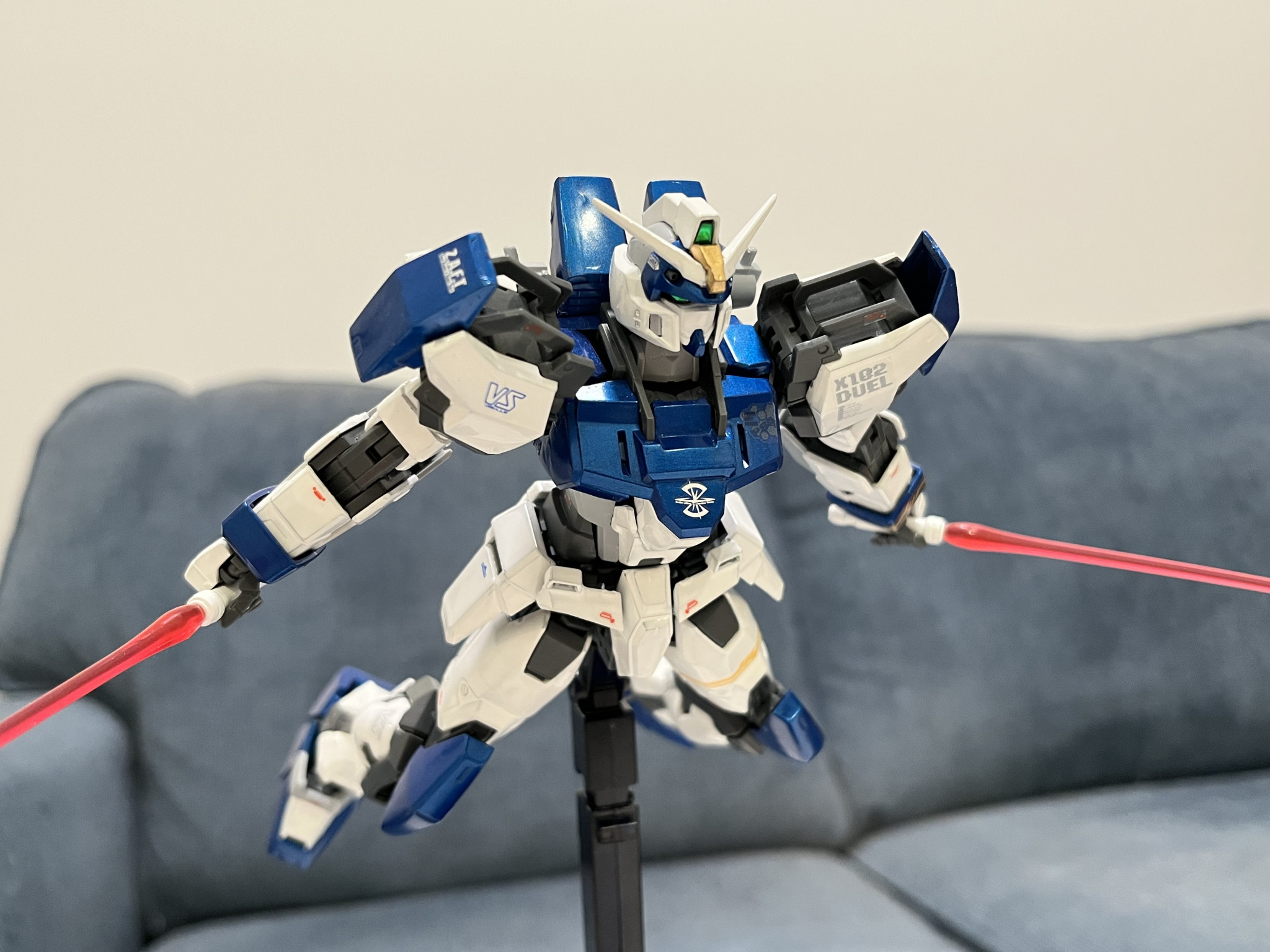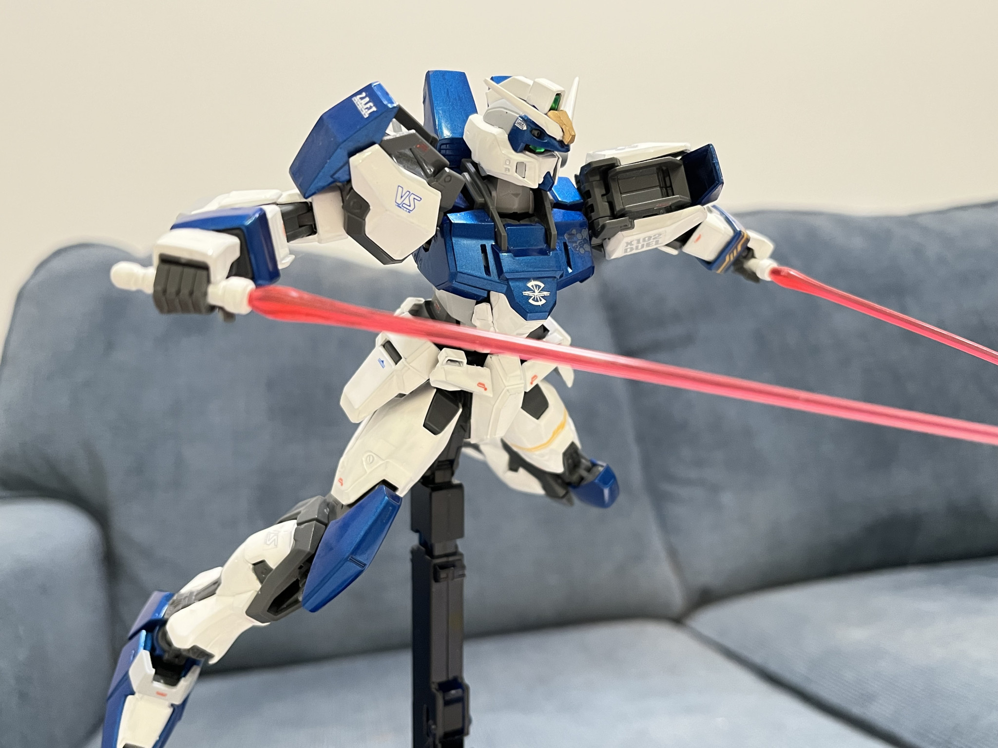 ヘリオポリスでガンダム強奪から終戦まで参戦した名機であるデュエルガンダムです。Xフレームより可動域が凄く広くてポージングが決めるのは楽しかったです。