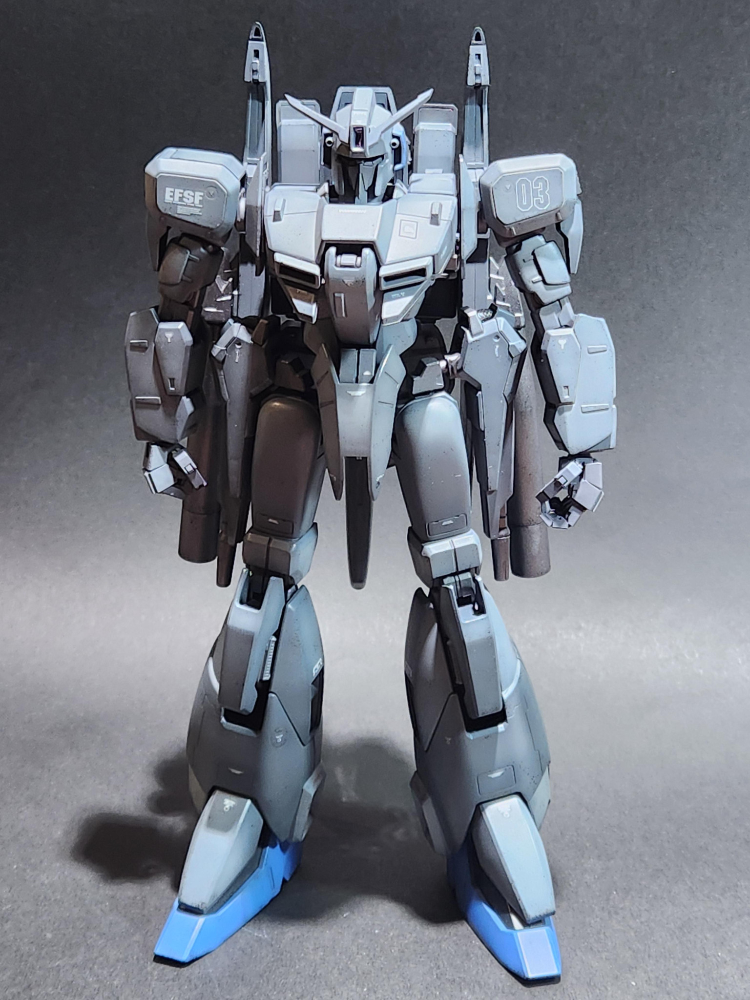 カラーリングは設定にあった色分けで、色味を自分の好みのイメージで塗装しました。それと斜め上部から光が当たっている感じで、少しモジュレーション塗装をしています。