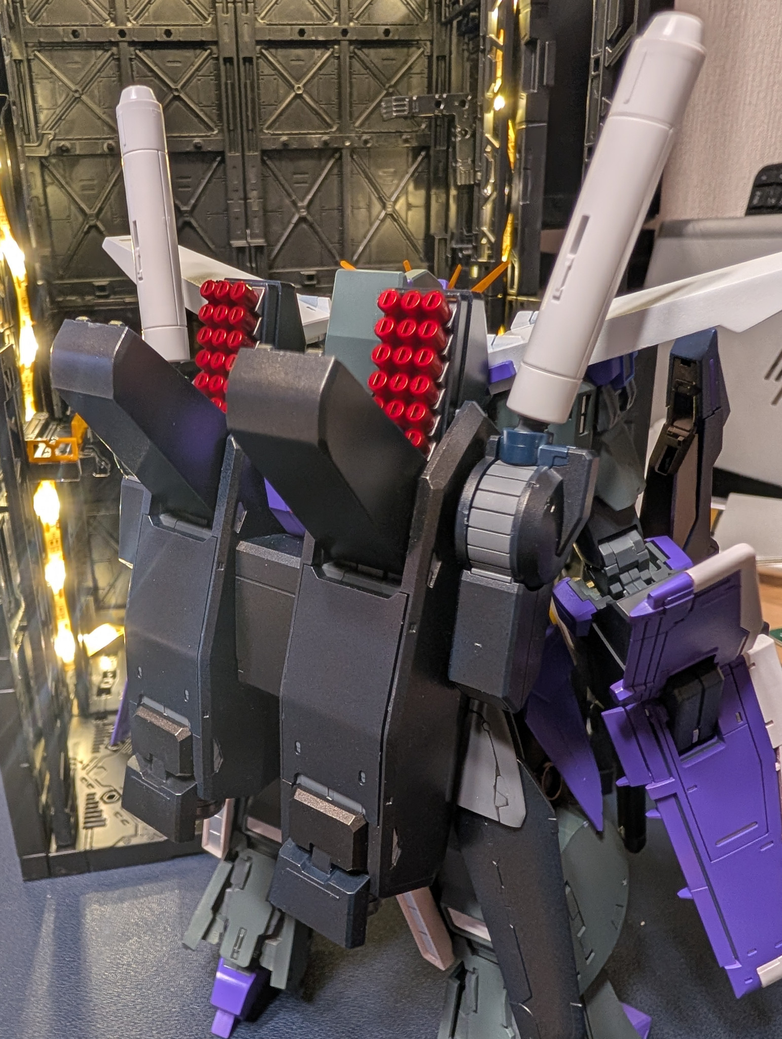 バックパックはメタリックブラック、ミサイルポッドはロイヤルメタレッドでギラギラに。