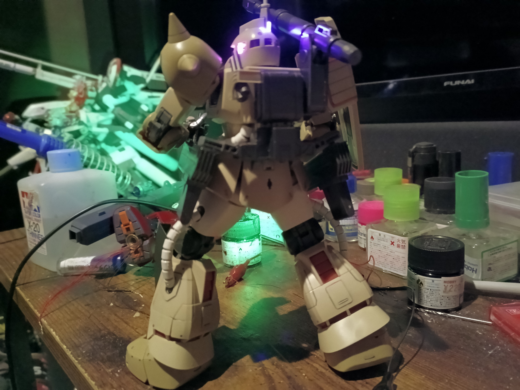 MG ザクキャノン LED組込み完成です‼️👍サイコザクのパーツ待ちの間に終わってしまいました😅💦