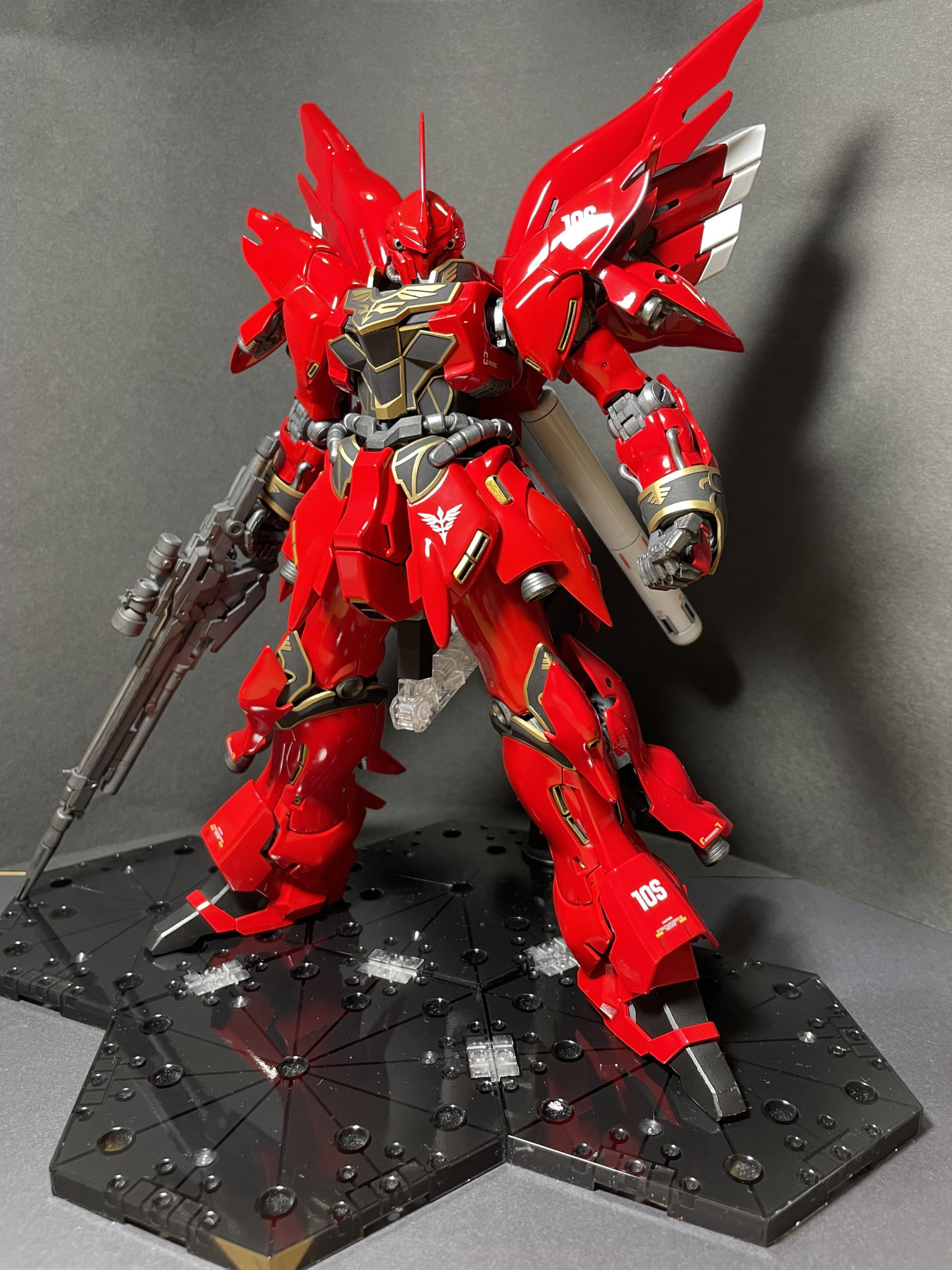 某コンテストに出展した過去の作品ですが、今回友人に譲ることになり、綺麗に磨き直して記念撮影をしました。 今見ると拙い部分も多々ありますが、当時、「最高に格好良いシナンジュを作る‼️」と気合を入れて制作した、個人的に思い入れの有る作品です。 ガンプラ仲間の皆さんにも、少しでも楽しんで頂ければ幸いです。