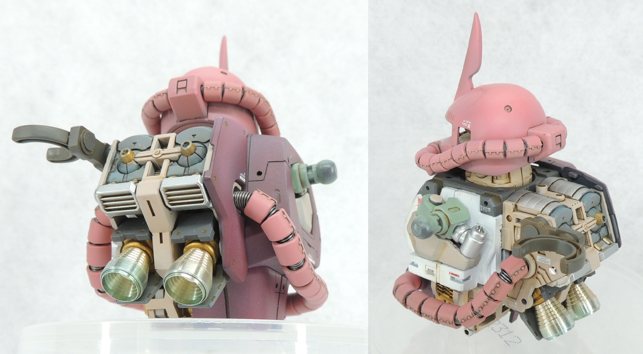 子どものころから1/144、1/100とも無数のザク・タイプを製作してきたのですが、いつ作ってもどのバリエーションでも楽しいものです!