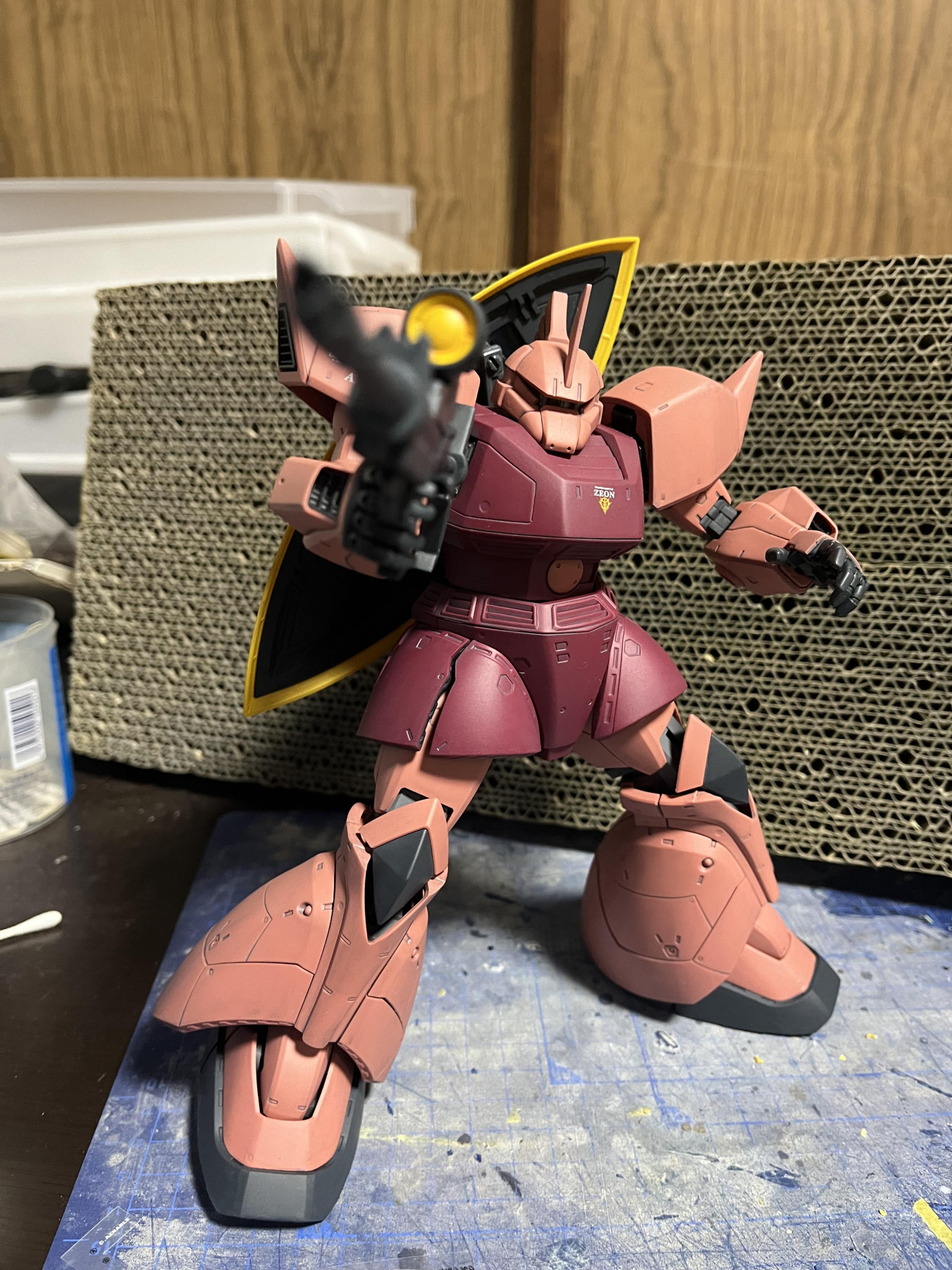 ちゃぶ台モデラー MG 2026.03/01更新 シャア専用ゲルググ 120 ??? 0 0 作品を共有 宇宙世紀コンの応募作品です コンテストの予選期間中は自分以外の作品の「いいね!」数はシークレット表示になります。 気になった作品は、是非「いいね!」をして応援しましょう。 久しぶりの投稿です。 最近知り合いがガンダムにハマりシャアが推しキャラとの事でシャアゲルをプレゼントとしようと作成しました。 全塗装とフィルタリング仕上げです。 過去作と一緒に。 宇宙世紀コン シャア専用ゲルググ MG ゲルググ コメント コメントをして応援しよう コメントにはログインが必要です ちゃぶ台モデラー 素組派でしたが缶スプレー塗装とウェザリングにハマってます。 最近缶スプレーはコスパが悪いなぁ〜と感じていてエアブラシ購入を検討しています。 作業机がないので主にちゃぶ台で作業してます。 ヤスリは基本水研ぎです。 色々な作品が拝見出来て良い刺激になる素晴らしいコミュニティだと思います。 気分が乗った時製作を始めるのでめっちゃ不定期で投稿しています。 ちゃぶ台モデラーさんがお薦めする作品 MS-14C-A1 ジャコビアス・ノード専用ゲルググキャノン 5 MS-14C A1 ジャコビアス・ノード専用ゲルググキャノン 以前投稿したお気に入りのゲルググを再投稿です。 3 RE バウ 素組で放置してたREバウです。 12 Z-エクスカリバー・I・SP MG ZガンダムVer.2.0のWR形態をもっとカッコよくを… 3 ドムの日らしいので 過去作成のドム アフリカ戦線仕様と埃の被ったドワッジです。 ちゃぶ台モデラーさんのページ この作品をお薦め作品に設定する Please login to update your profile! Please login to update your profile! Please login to update your profile! Please login to update your profile!