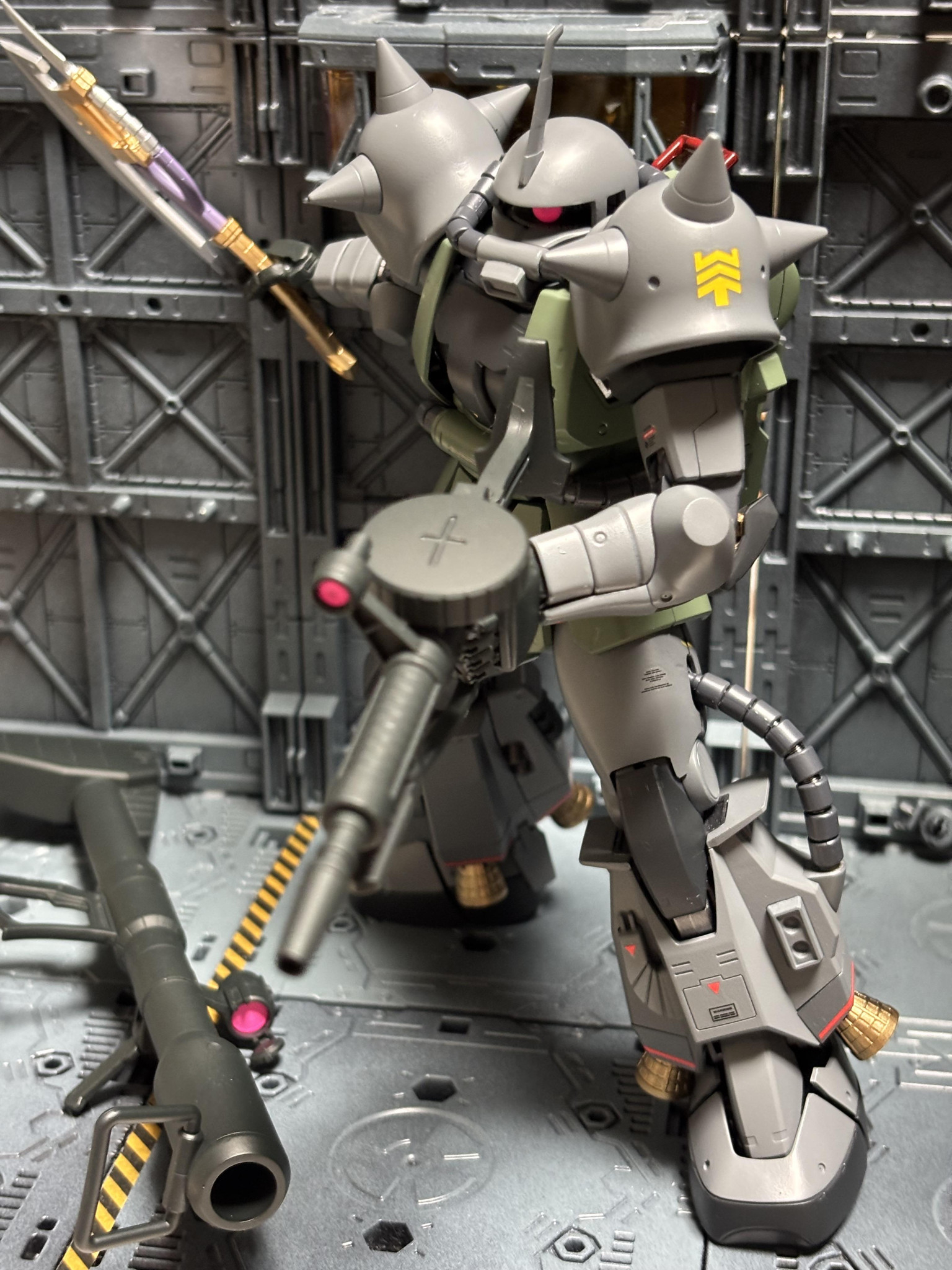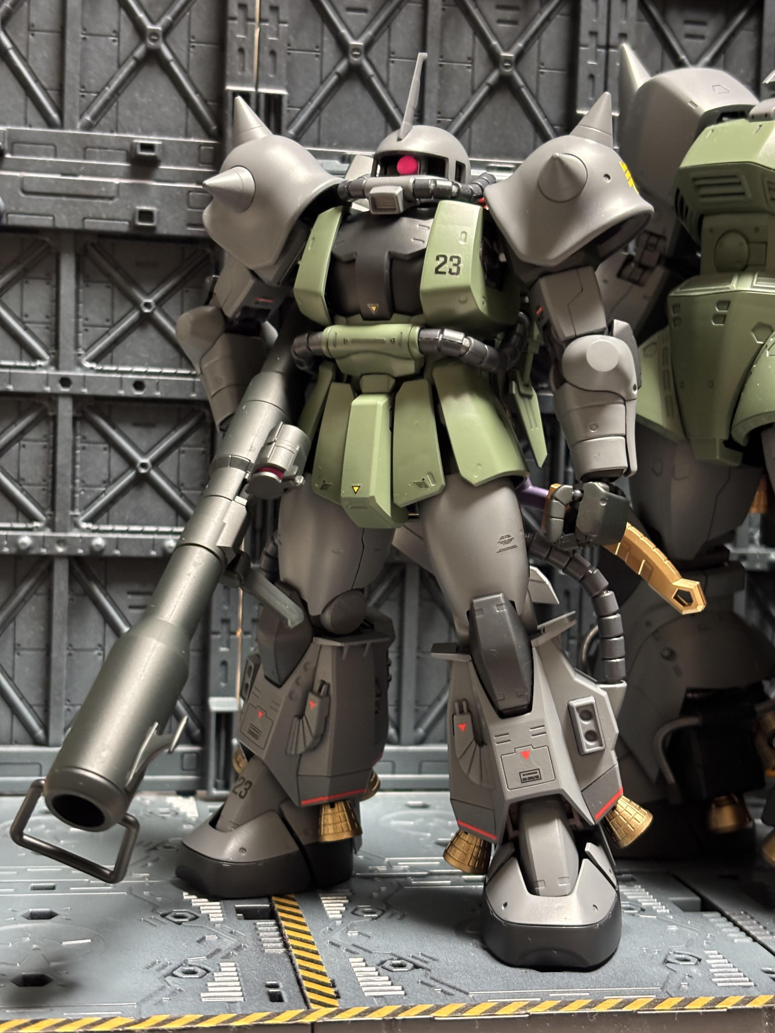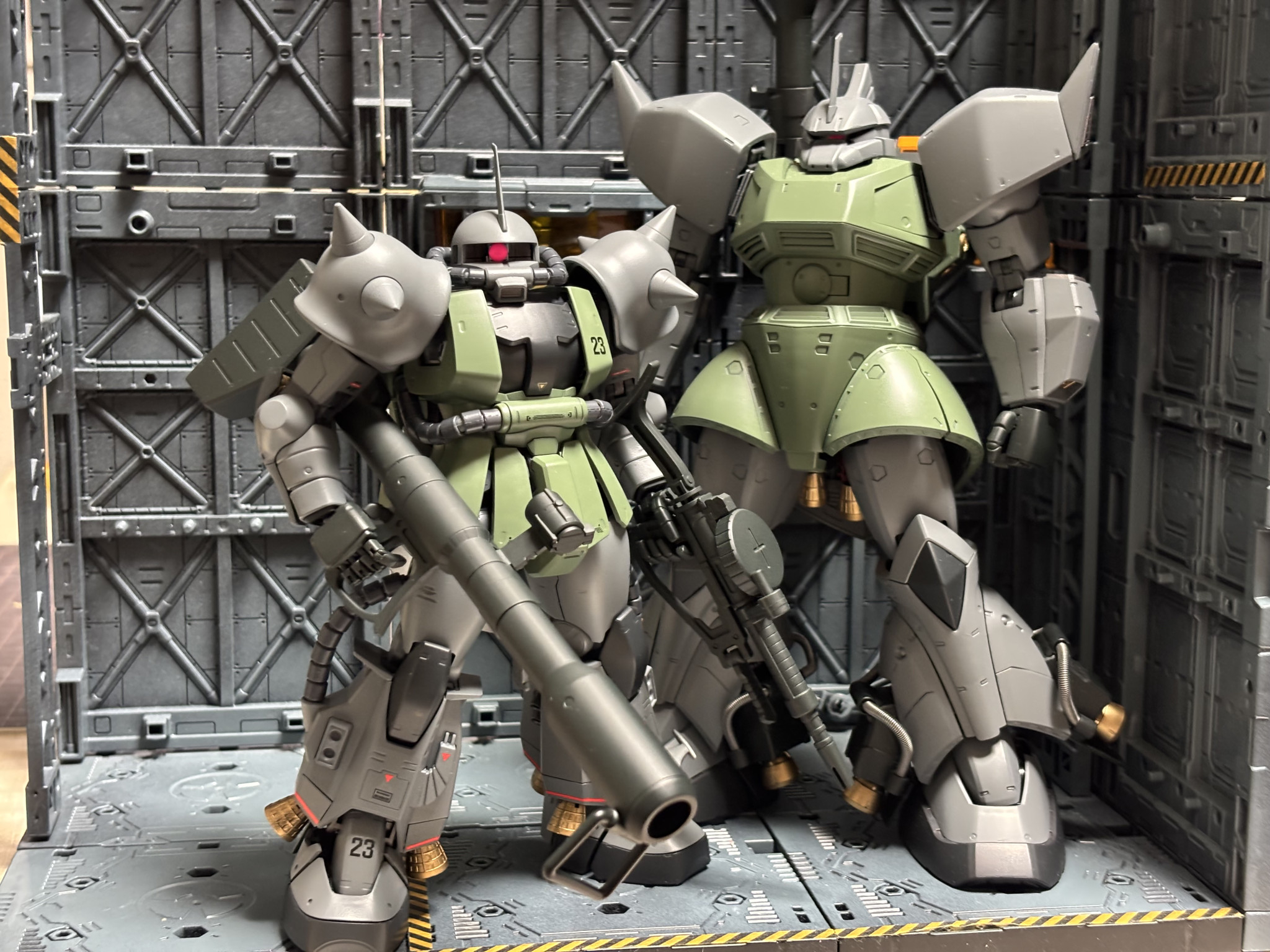 量産カラーでゲルググと並ぶ親衛隊感半端ないですね(zaku-kao2)大きめの武装が似合う
