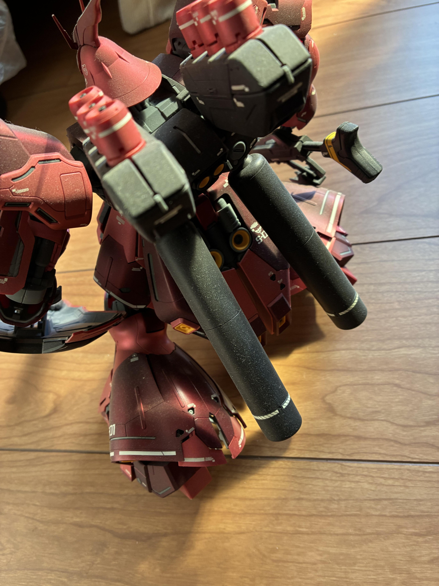 ちっぷ MG 2026.03/03更新 MGサザビー ver.ka 64 20 いいねしたモデラー(20) 0 0 作品を共有 自身のガンプラ復帰のきっかけになったキットで、以前制作したものです。 思えば、このキットがエアブラシでの全塗装が初めてで、ゲート処理もまともにしたのは、これが初めてでした。 赤三色のメタリック塗装後に艶消しトップコートしております。 コメント コメントをして応援しよう コメントにはログインが必要です ちっぷ ガンプラ再開です。 倉庫でエアブラシ環境整えて家族対策にしましたが、夏と冬は気温のせいで塗装困難なので、春秋しか塗装できません。 夏冬に仮組や塗装前作業や仕上げ、春秋に塗装といった作業流れになっています。 その関係で数体まとめての作業になることが多いです。 最終工程であるデカール貼り後のトップコートが、気温的に最悪の時期に強行することもあり、これが辛い、、、 4 ブースターベッド ガンダムベースで購入したものです。上から見ると中が透けて見え… 3 HI-ニューガンダム 昔作った無印HI-ニューガンダムを全塗装して、電飾しました。… 3 ジオング 過去に造ったジオングに電飾してみました。胸のバーニアと指も電… 2 メカニカルバストエクシア メカニカルバストガンダムエクシアのクリアのものを全塗装して自… ちっぷさんのページ この作品をお薦め作品に設定する Please login to update your profile! Please login to update your profile! Please login to update your profile! Please login to update your profile!