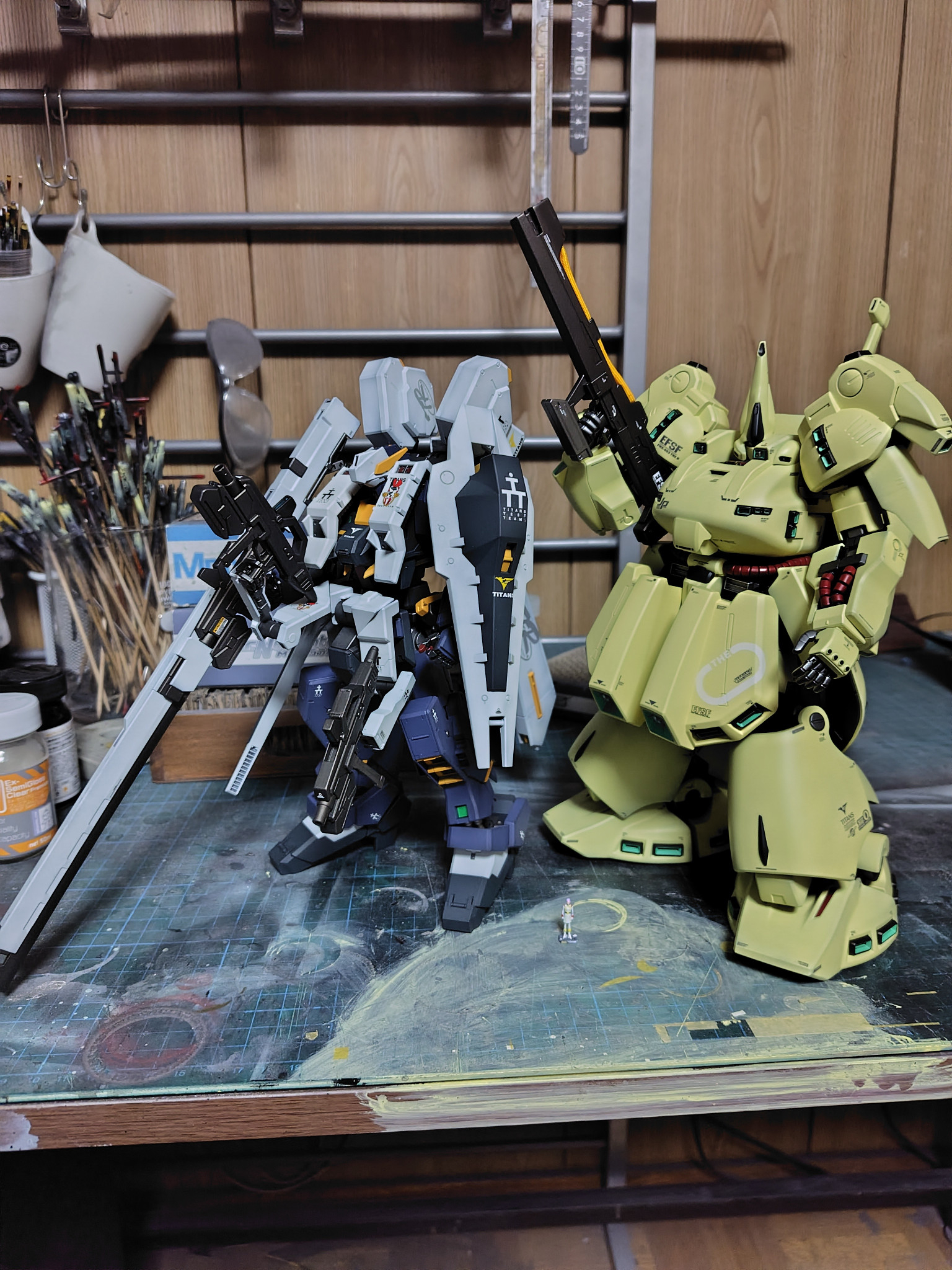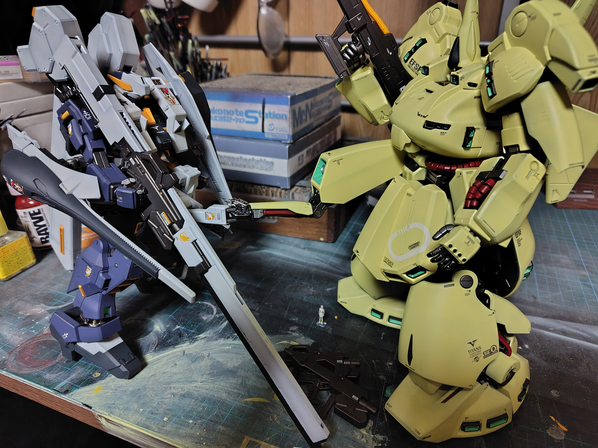 ポージング諦めて隠す気のない腕と握手。盛大に塗料瓶こかした形跡が。