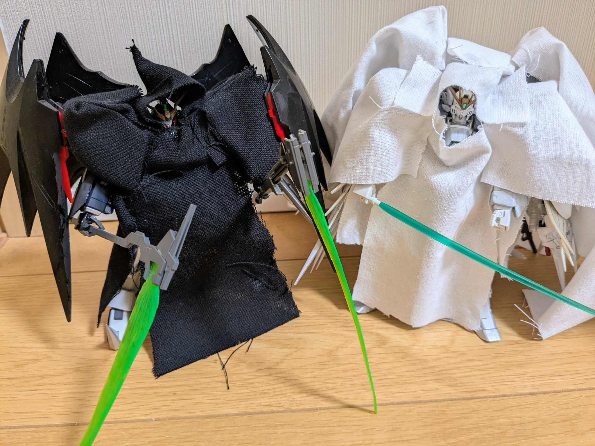 翼を閉じて、前回作成したスノーホワイト クロークドカスタムと並べて1枚。