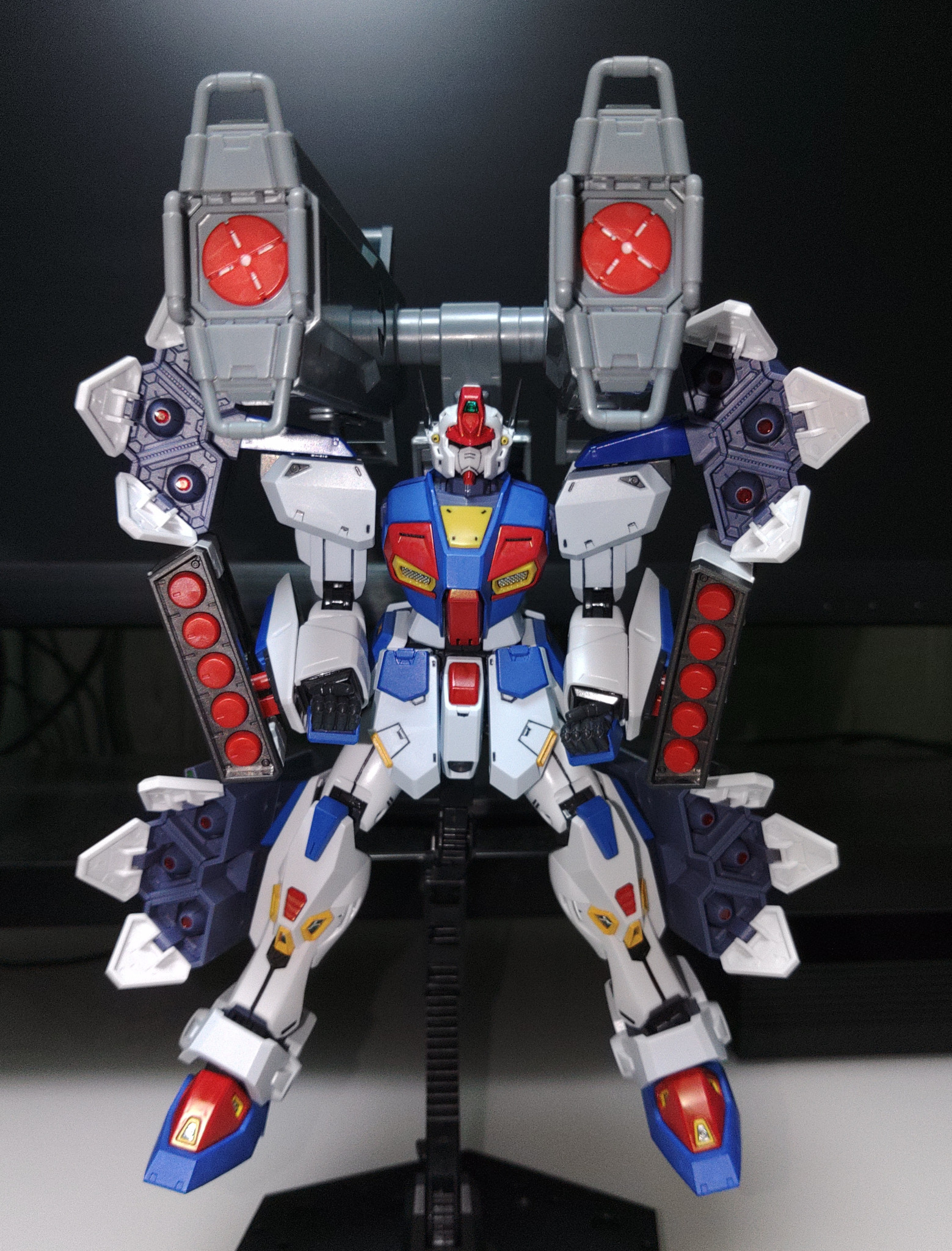 soler MG 2026.03/08更新 F85 MISSILE TYPE(拠点殲滅仕様) 152 57 いいねしたモデラー(57) 0 0 作品を共有 久々のオリジナルミッションパック。 F85((F90+F80)÷2)にミッションパックBタイプ+Dタイプ+HGのマルチランチャーパックを混合させたもの。 ヘビーアームズと違い、「撃ち尽くしたらガチで何もできなくなる」という対MS戦を一切想定していないミッションパック。まあ一発一発が戦略級、準戦略級の威力を持っていれば、この一機で要塞一個落とすのはできそうかな?護衛は絶対要るけど。 コメント コメントをして応援しよう コメントにはログインが必要です soler 4 XM-07 VIGNA・GHINA(ビギナ・ギナ) RE/100のビギナ・ギナ(エクストラフィニッシュ)です。 … 4 XM-02 DEN'AN・GEI(デナン・ゲー) RE/100のデナン・ゲーです。 作って撮ったはいいけど投稿… 5 GUNDAM SHINING BLAZE+α シャイニングガンダムとブレイジングガンダムのミキシング、ガン… 5 F9〇 久々の投稿になりますが、MGの火星F90とコトブキヤのナイン… solerさんのページ この作品をお薦め作品に設定する Please login to update your profile! Please login to update your profile! Please login to update your profile! Please login to update your profile!