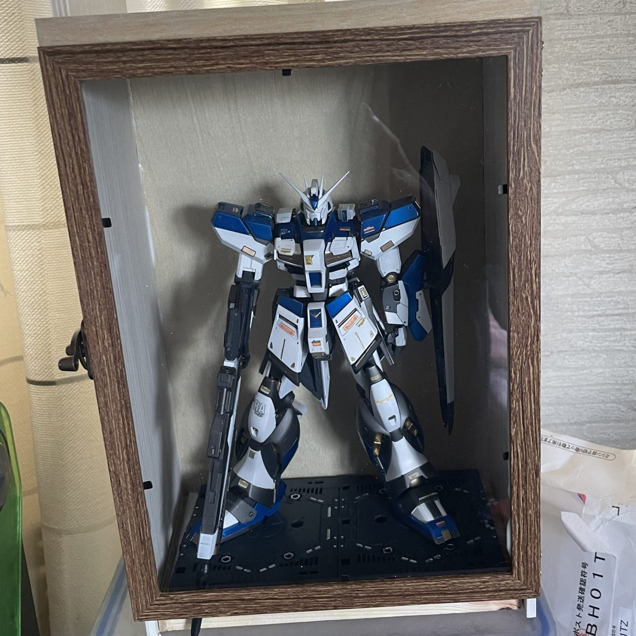 maru88 MG 2026.03/09更新 MG ハイニューガンダム ver.ka 贈り物品 104 64 いいねしたモデラー(64) 0 0 作品を共有 兄の為に作成したハイニューガンダムですが、そのままじゃつまらないので、100均で箱をDIYナガモノがいいと言うのでライフルを新しいものに変えました。 バックパックが収まらないので右側にラックを作りパーツを取り付け。なんとなくな小物入れスペースも作り完成です。自分も欲しくなる贈り物がうまくできたと思います。上には当時彼が小学生の頃劇場で買ってきたポスターを添えました。 宇宙世紀 νガンダム Hi-νガンダム コメント コメントをして応援しよう コメントにはログインが必要です maru88 細々と作品を作ってますー。 良かったら見ていってください。 皆様からの意見やいい改造の仕方があれば教えてくださいー 是非相互フォローしましょう! 沢山のイイね、いつもありがとうございます! 6 ハイニューガンダム ver.ka リハビリ品 お久しぶりです。かなり久々な投稿となります。リハビリがてら兄… 5 MG ブルーディステニー2号機 MG陸戦型ガンダムベースにブルーディステニー2号機を作成しま… 7 MG ブルーディステニー1号機 MG陸戦型ガンダムをベースに友人用に作成しました。顔は陸ジム… 4 MG ダブルゼータ ver.ka さらに改修 下で紹介してるものを更に改修してみました。 maru88さんのページ この作品をお薦め作品に設定する Please login to update your profile! Please login to update your profile! Please login to update your profile! Please login to update your profile!