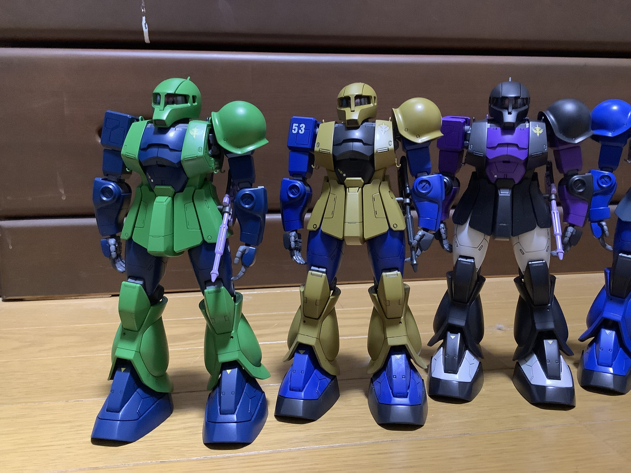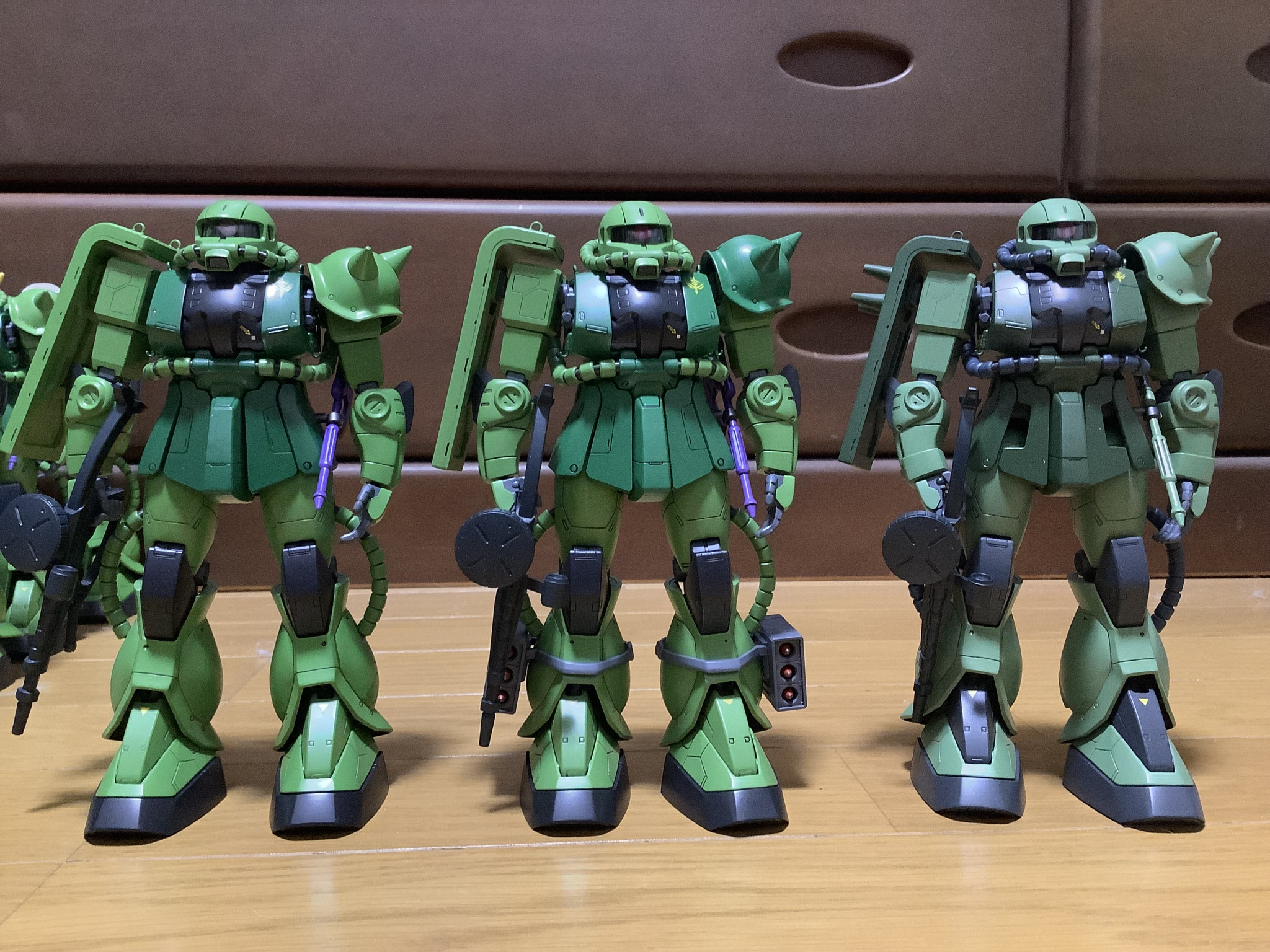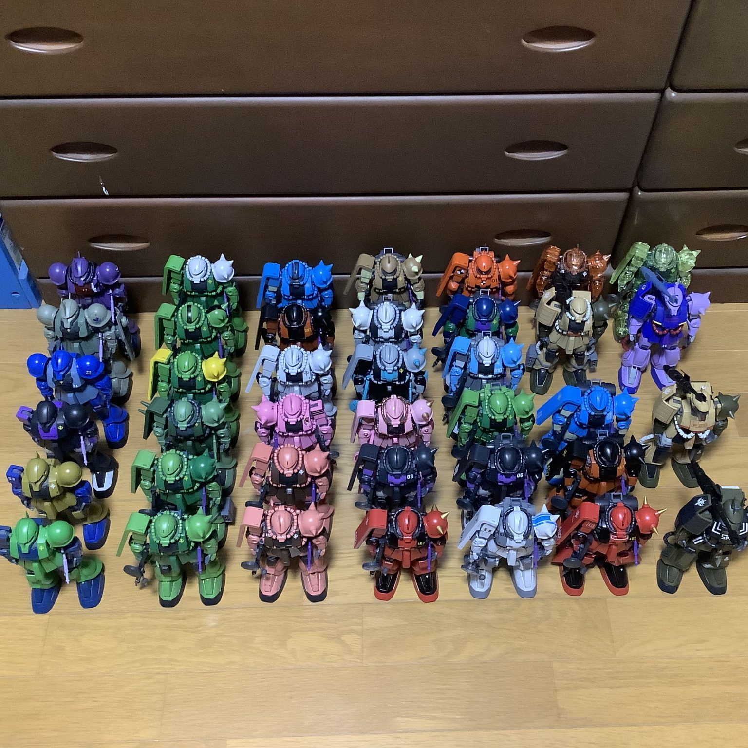 ザクだらけで凄いですね!ザクはバリエーションが多くていいですよね。まるでドミノみたいです。最後にミク専用でで39機とはナイスです👍