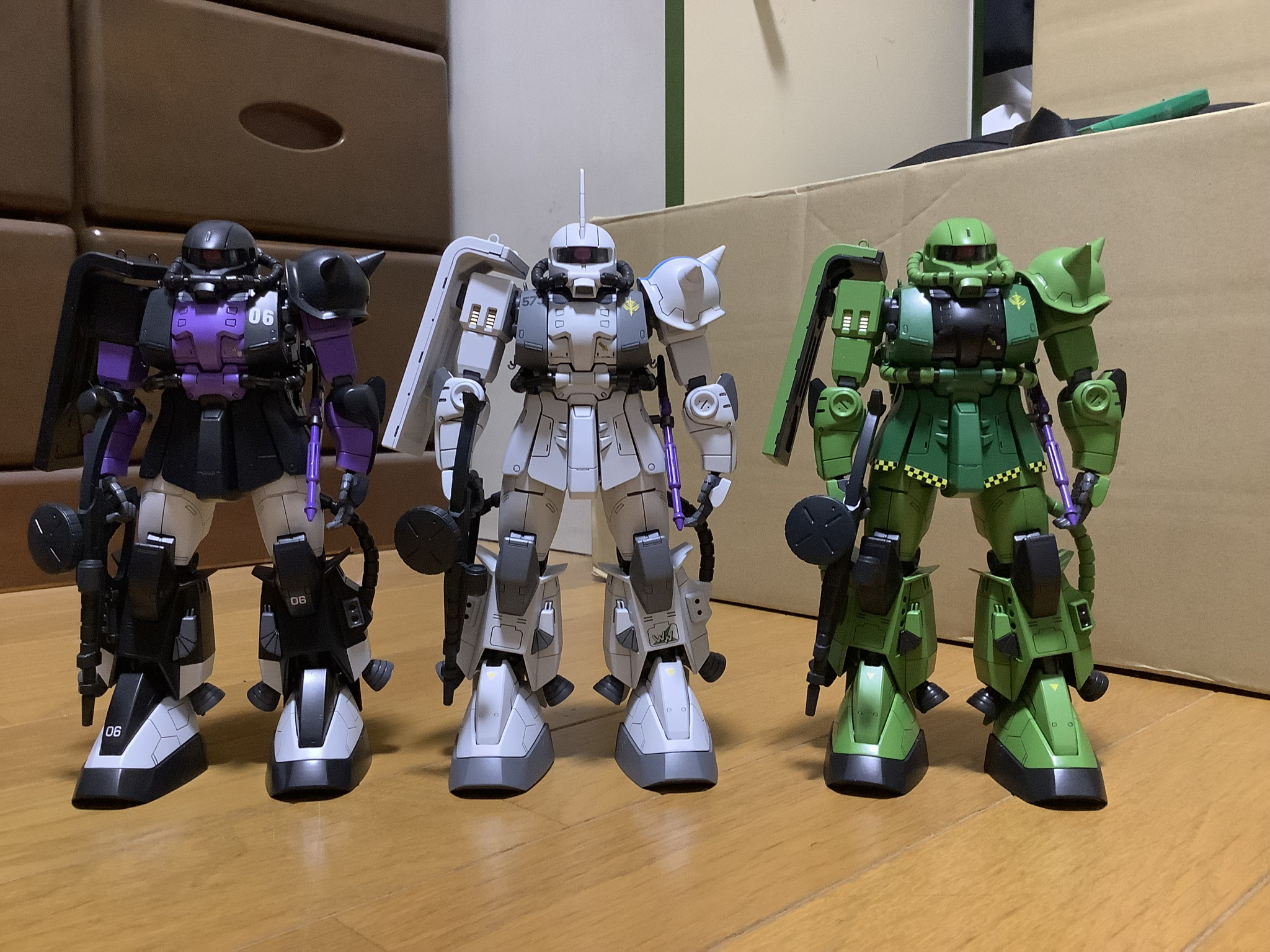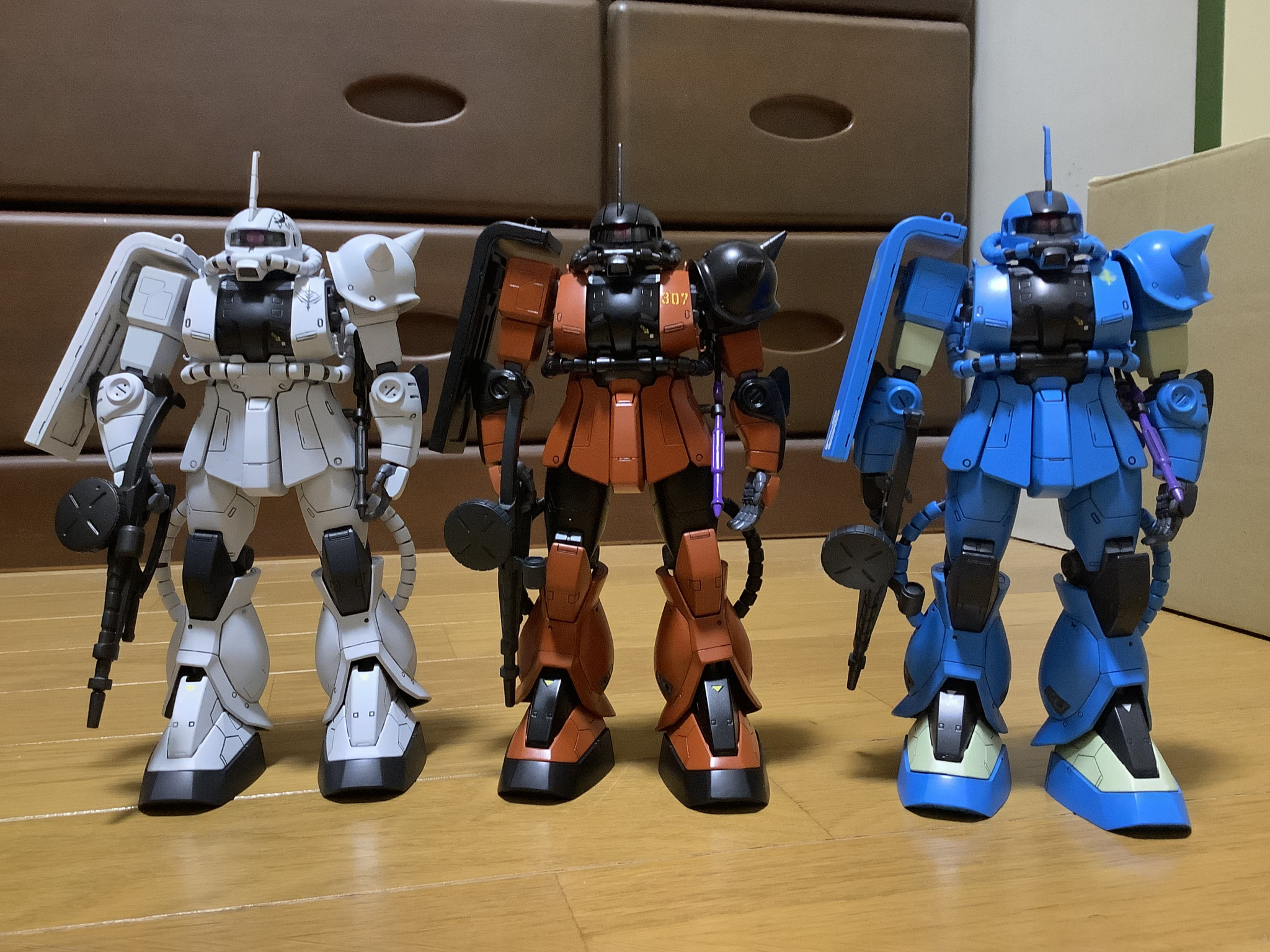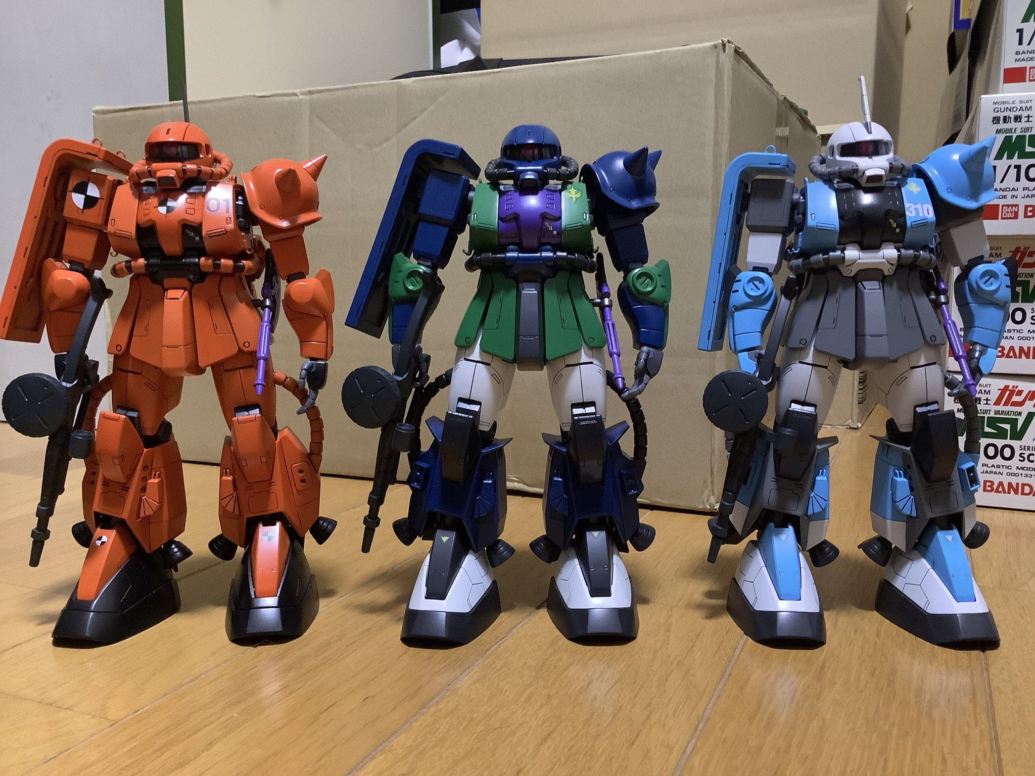 ザクだらけで凄いですね!ザクはバリエーションが多くていいですよね。まるでドミノみたいです。最後にミク専用でで39機とはナイスです👍