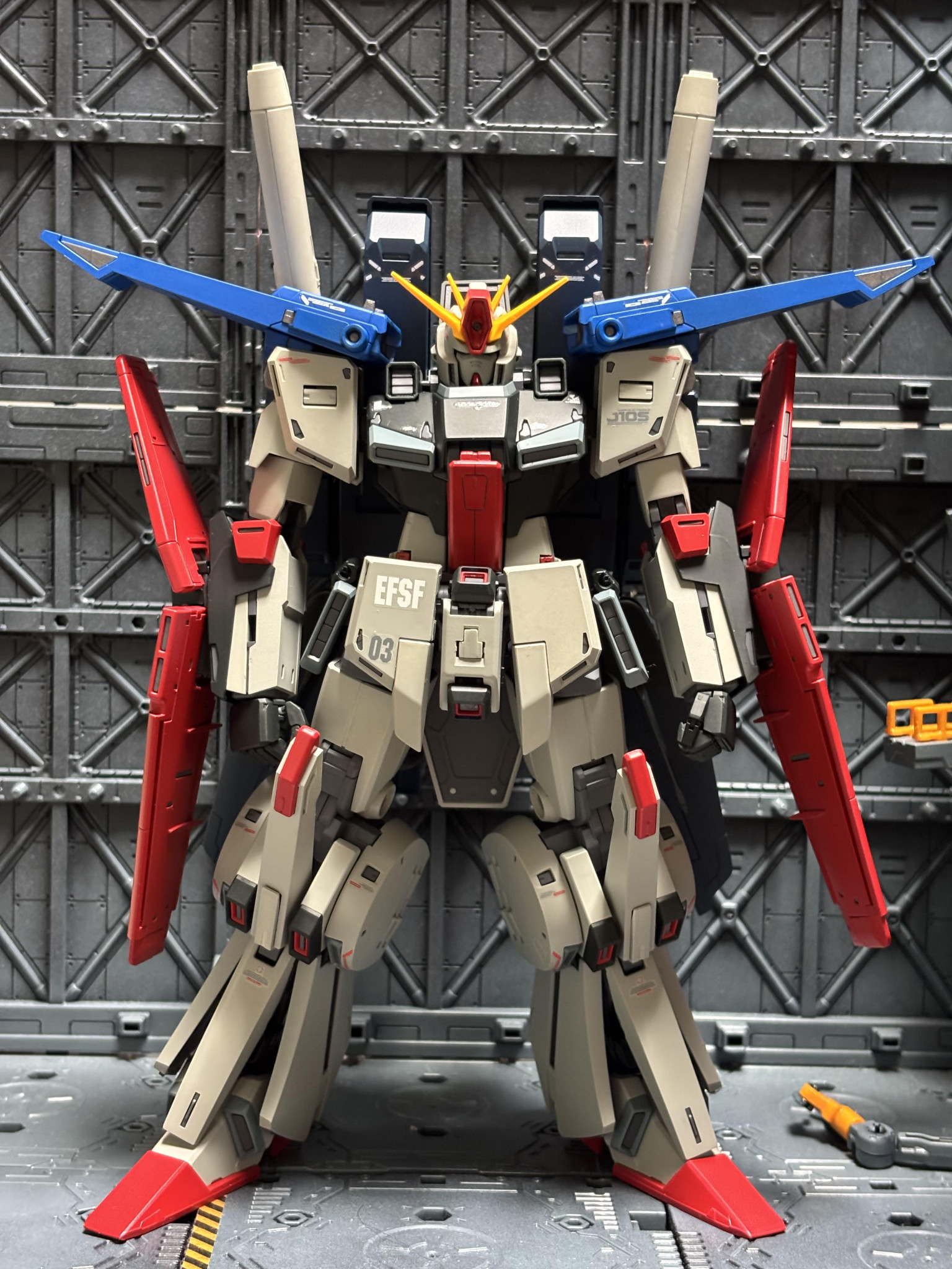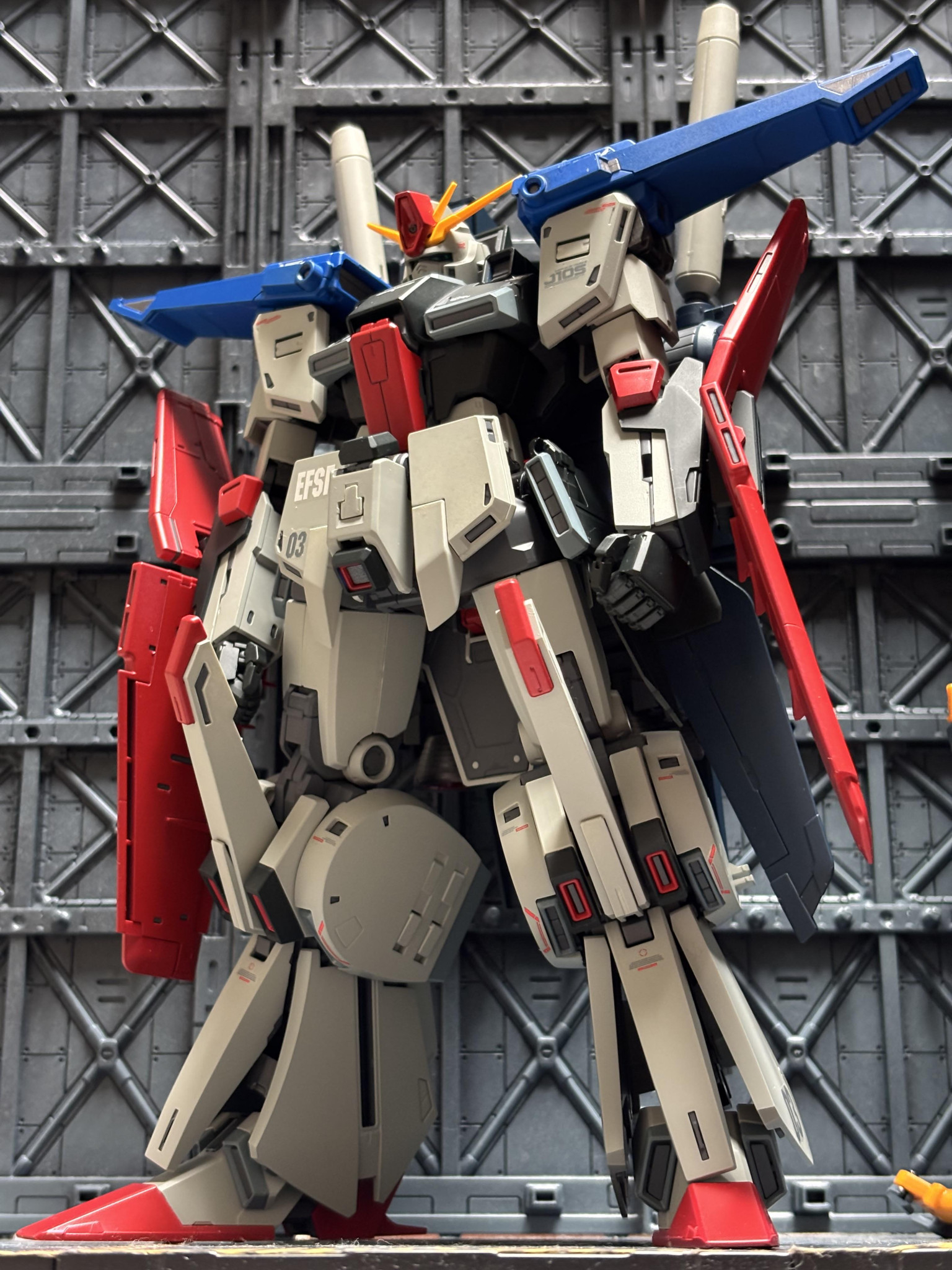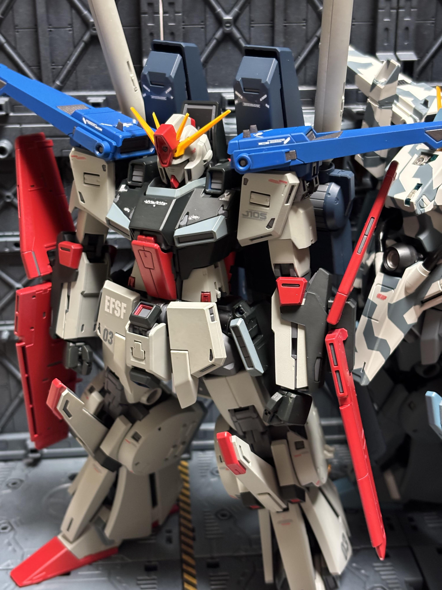 フルアーマー化した時のブルーは残したかったので肩部のみとし、ロールアウト風にしてみました!