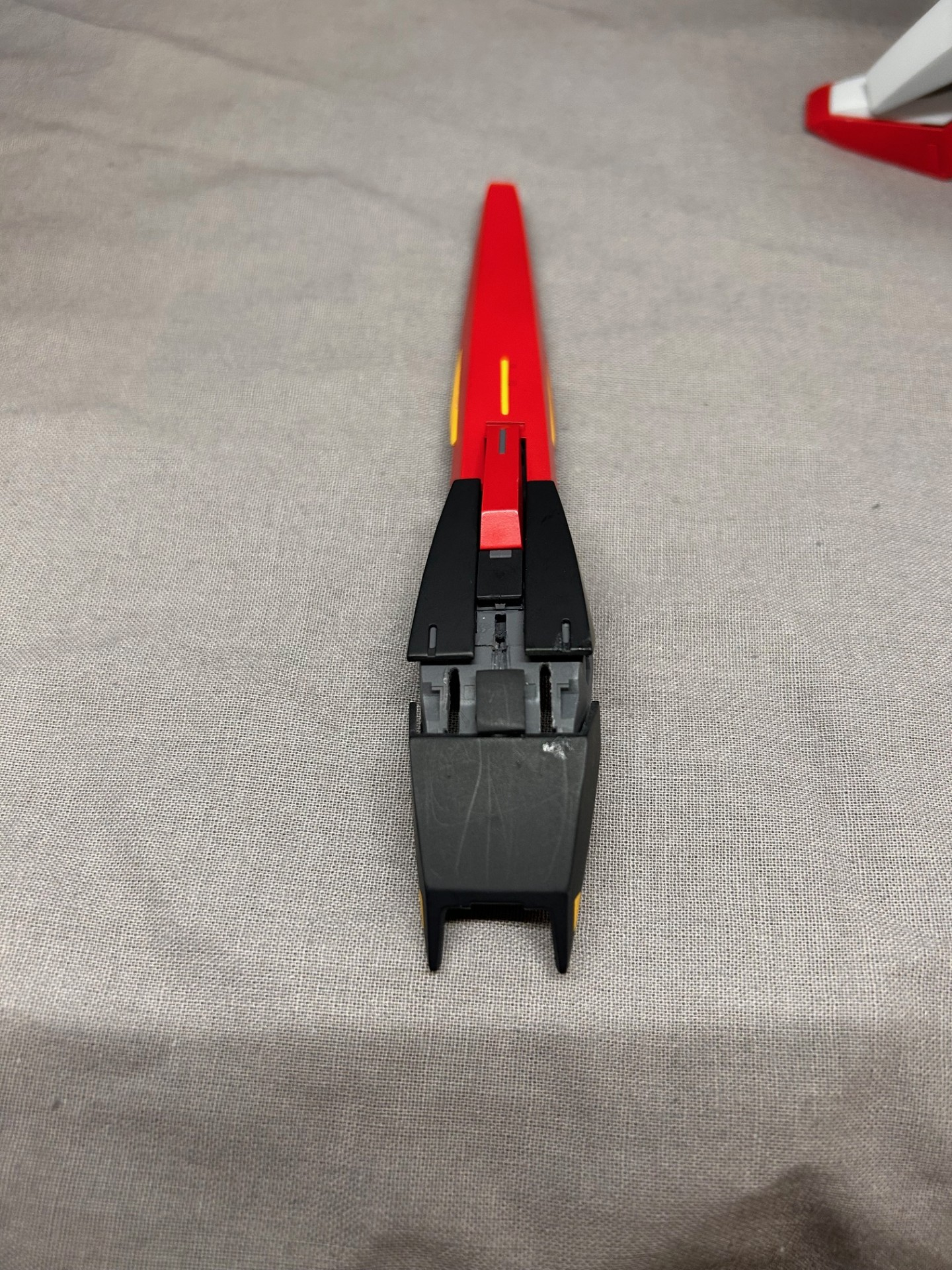 ちなみにキットのままだとフライングアーマーの先端がシールドに届かないのでプラ板とパテで4mmほど幅を足してます。シールドの先端はキットのままだと最終回のあのシーンでパプテマス様を圧し潰しそうな太さなので「突き刺さる」ように鋭利に加工してマス。