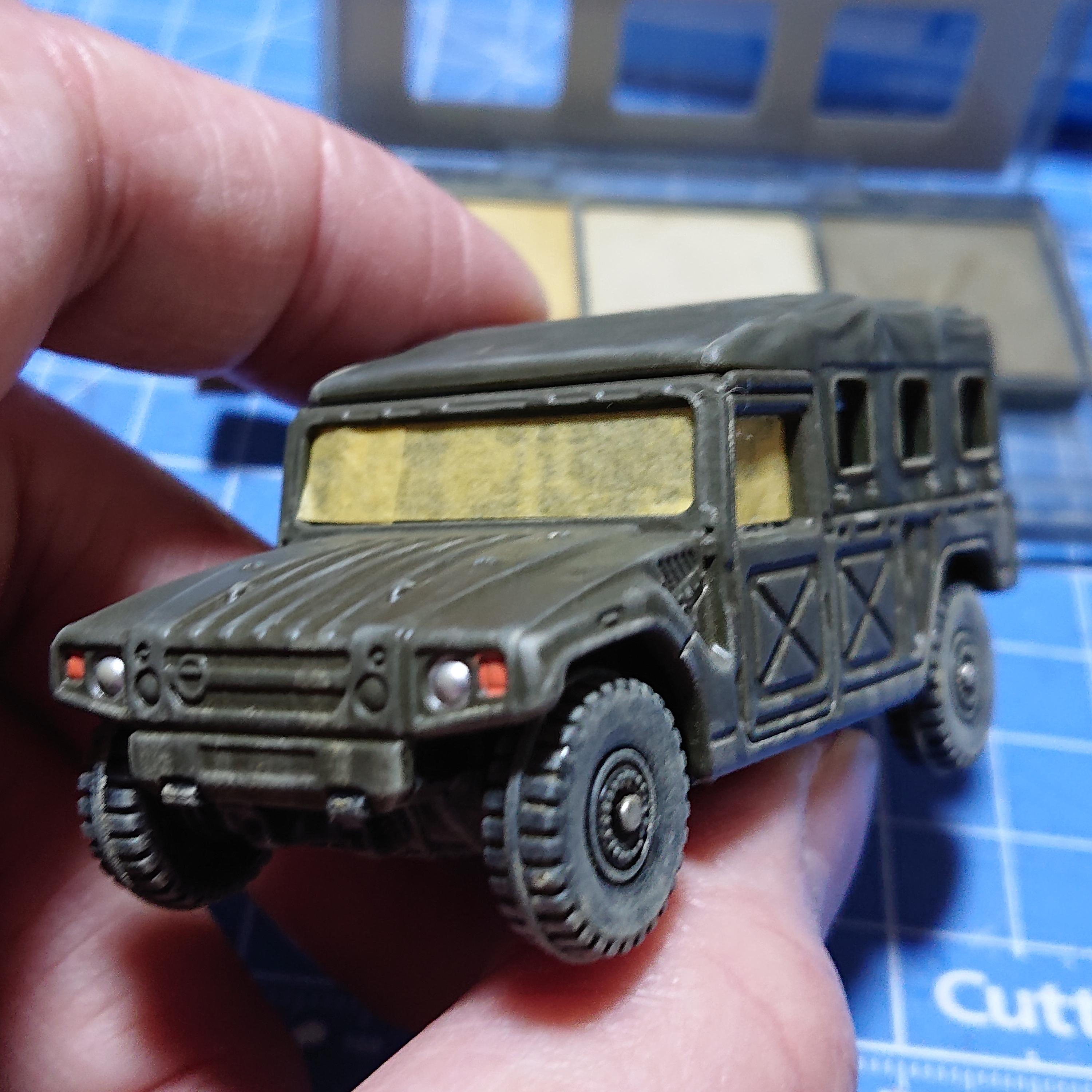ウインドウにマスキングして艶消しクリアでコーティングして小道具完成です。