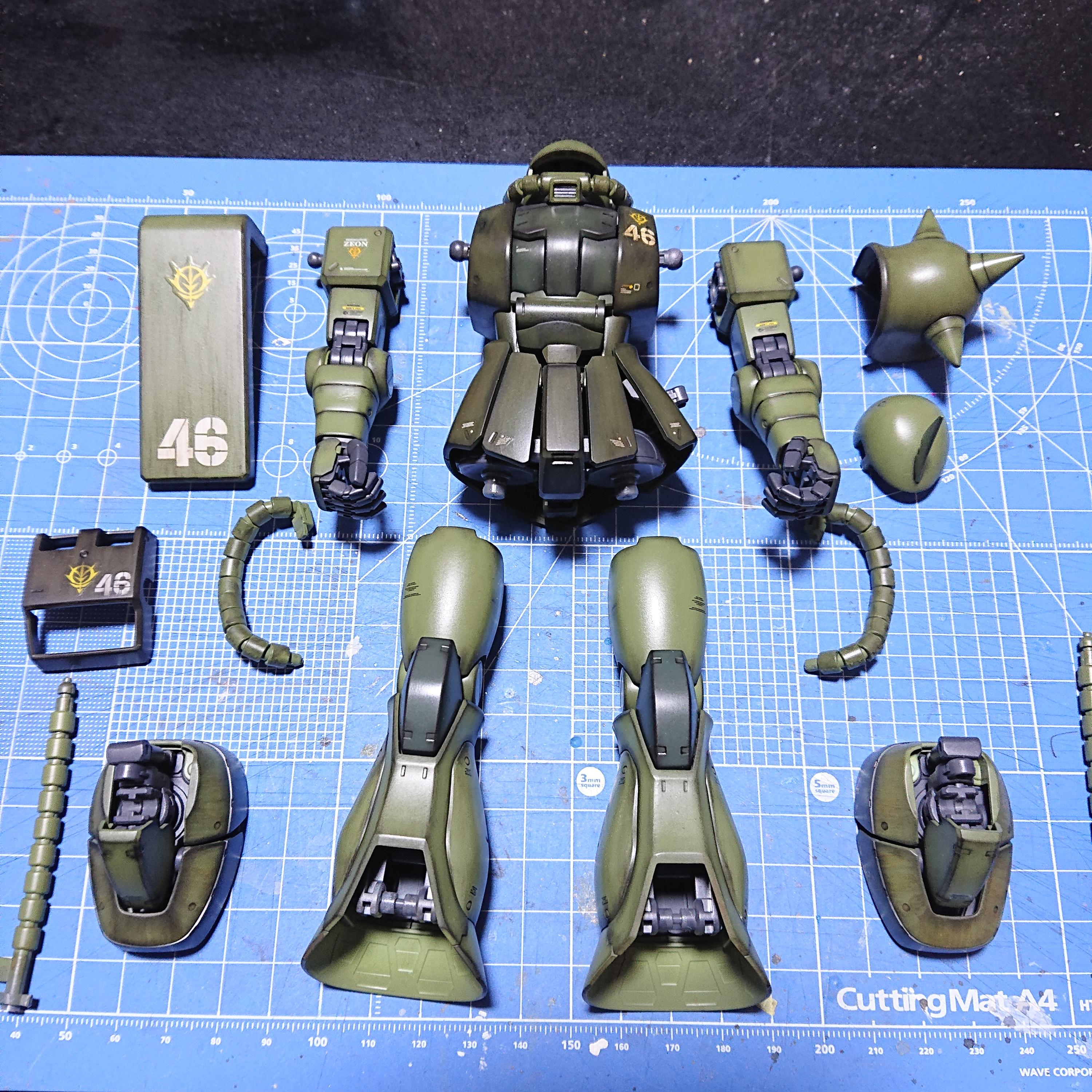全体的にウエザリングマスターのサンドを擦り付け完成です。ザクは何機でも作れてしまいます。