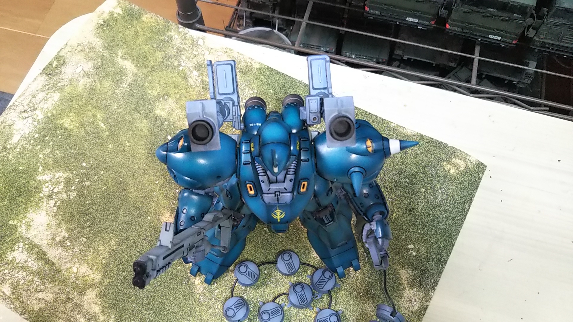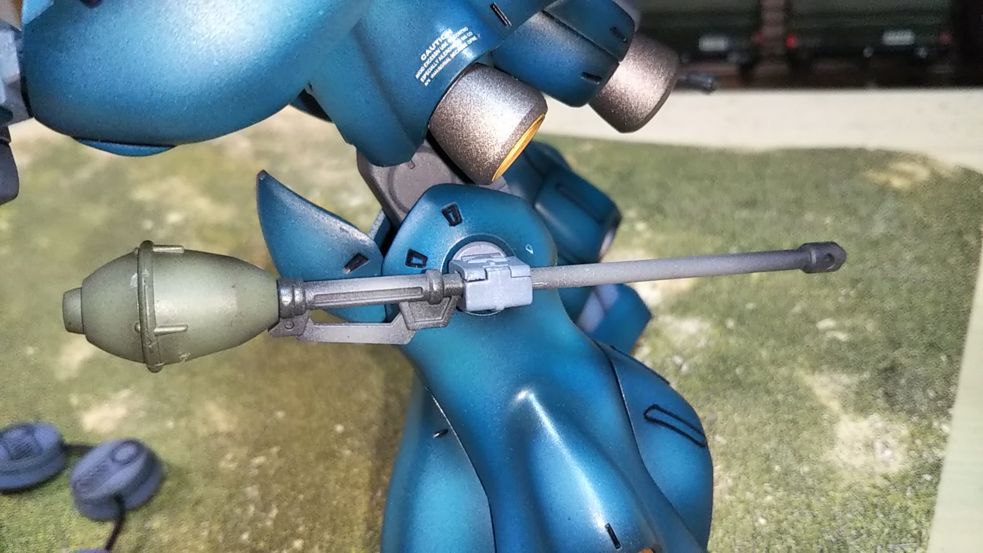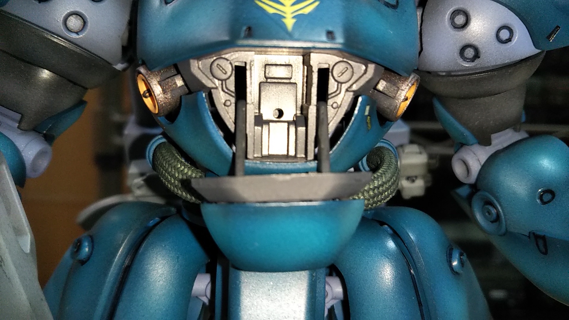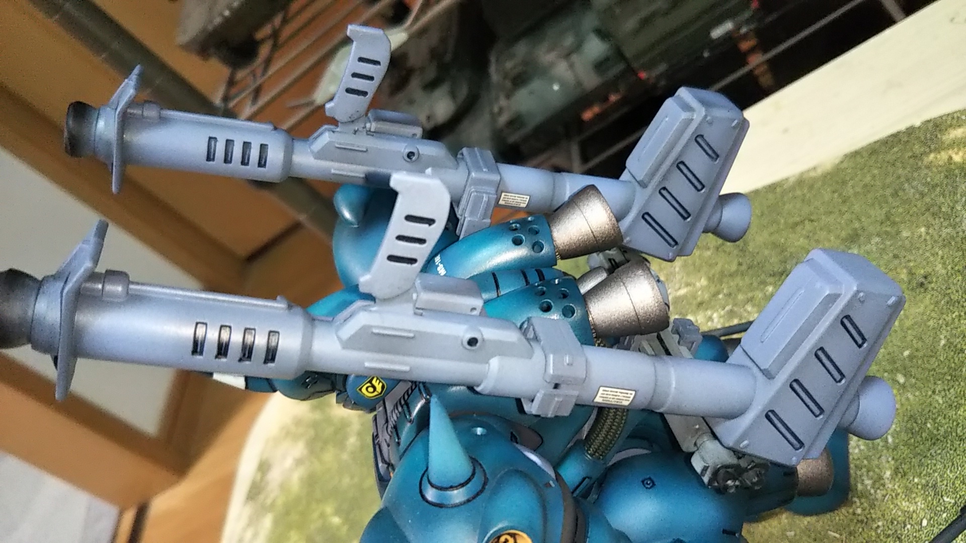 渋めの蒼いボディに武装は薄めのグレーが使い込まれた雰囲気出ていてカッコイイです(zaku-kao6)!