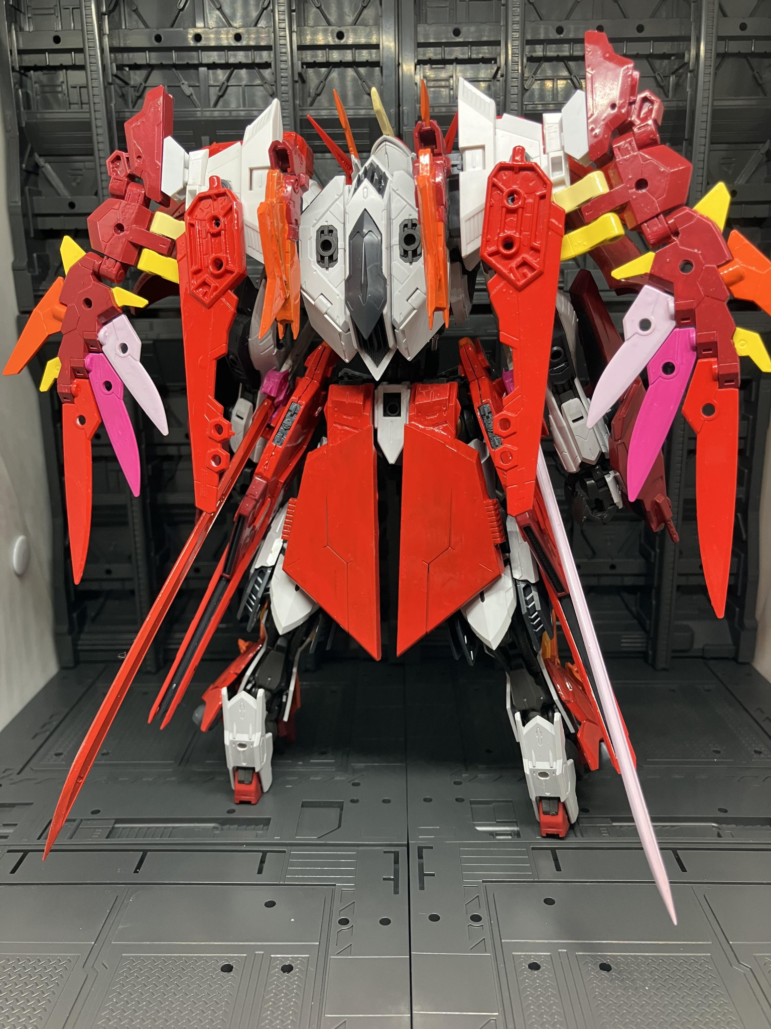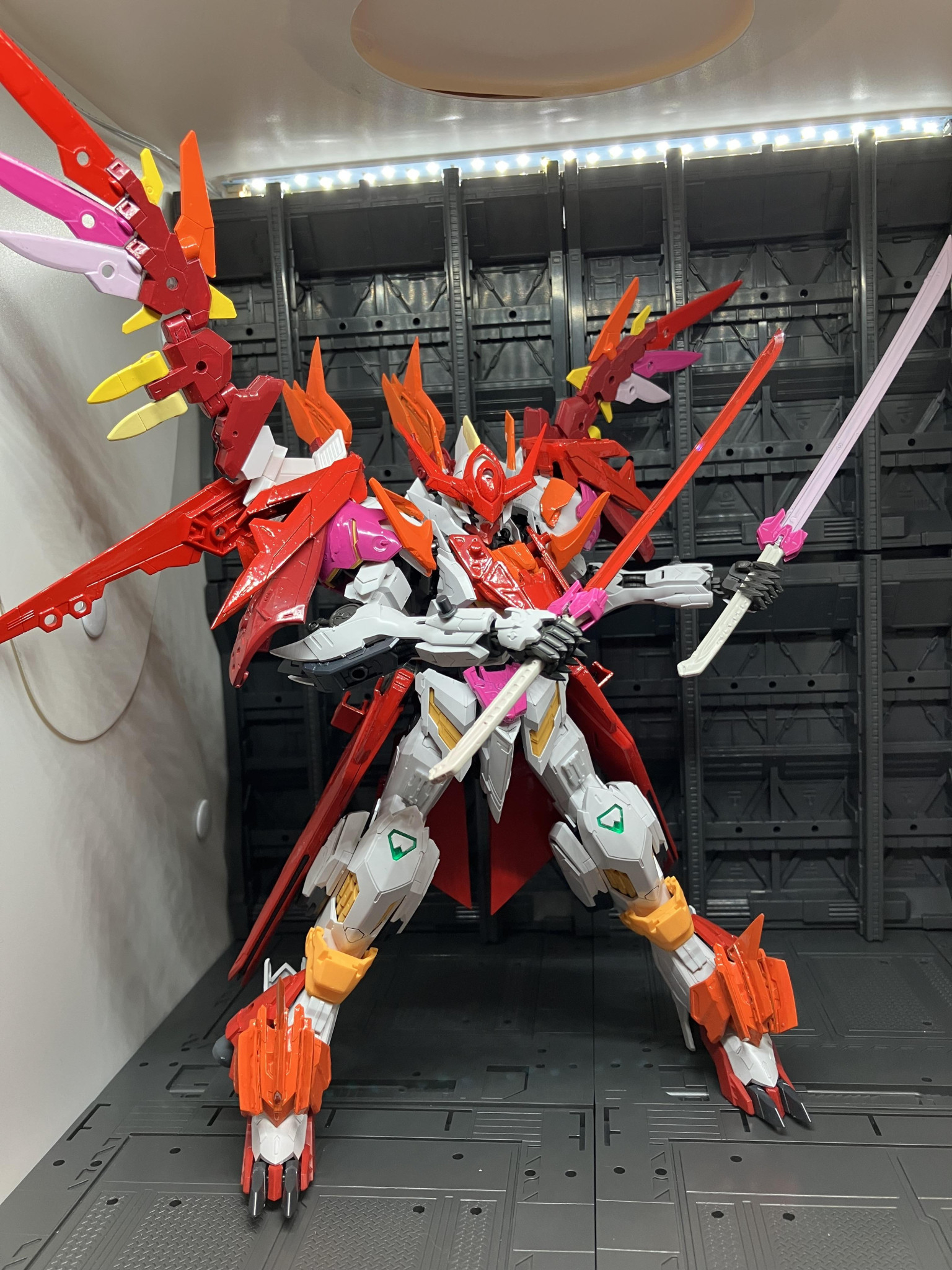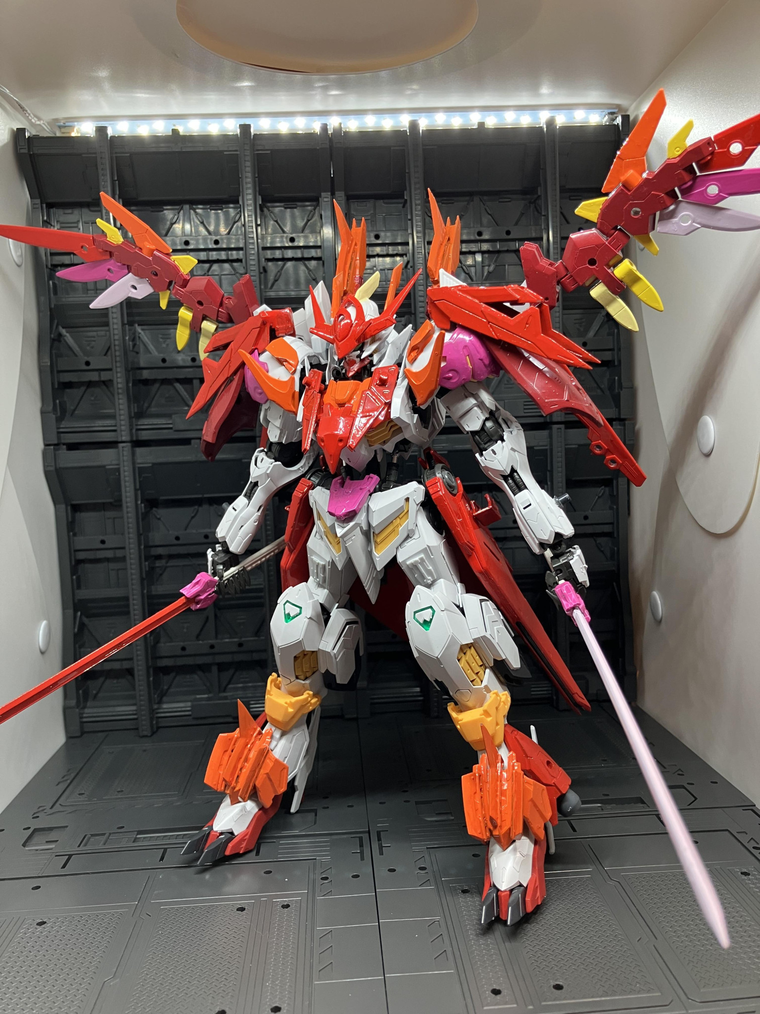 ラグナヴォルフに続いてのリメイク機体でしたが過去作とは違う機体にするように意識しておりウィングパーツはカラーリングも鮮やかさをイメージして塗装しました