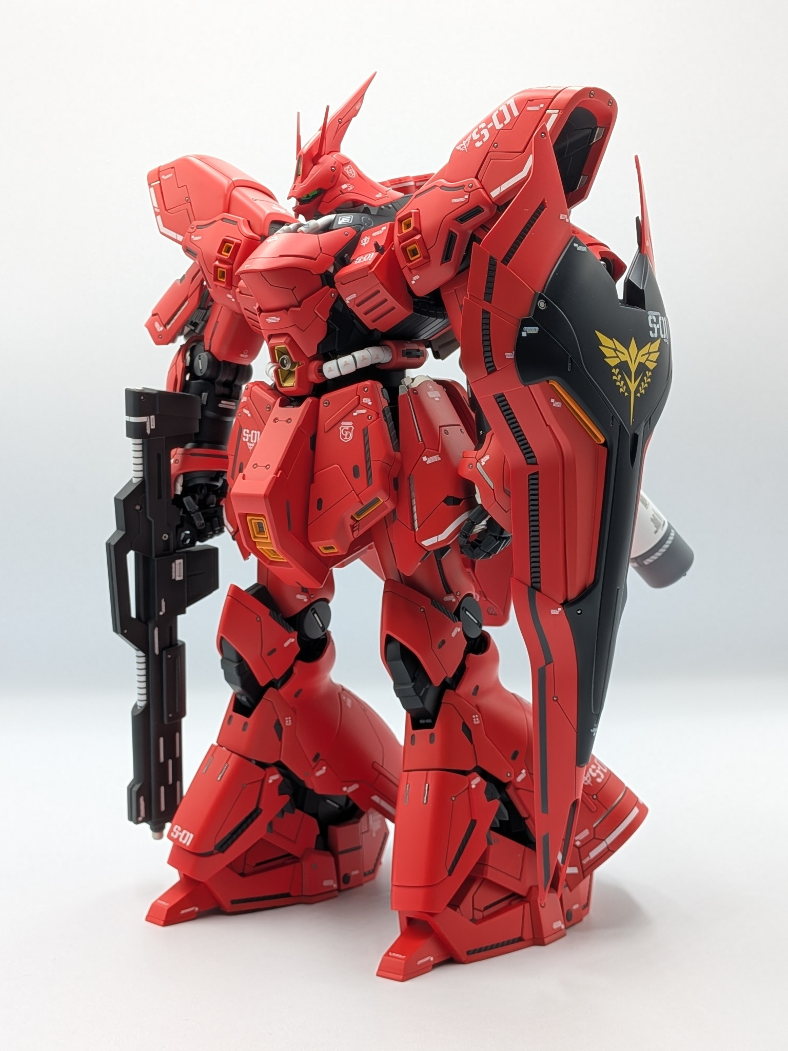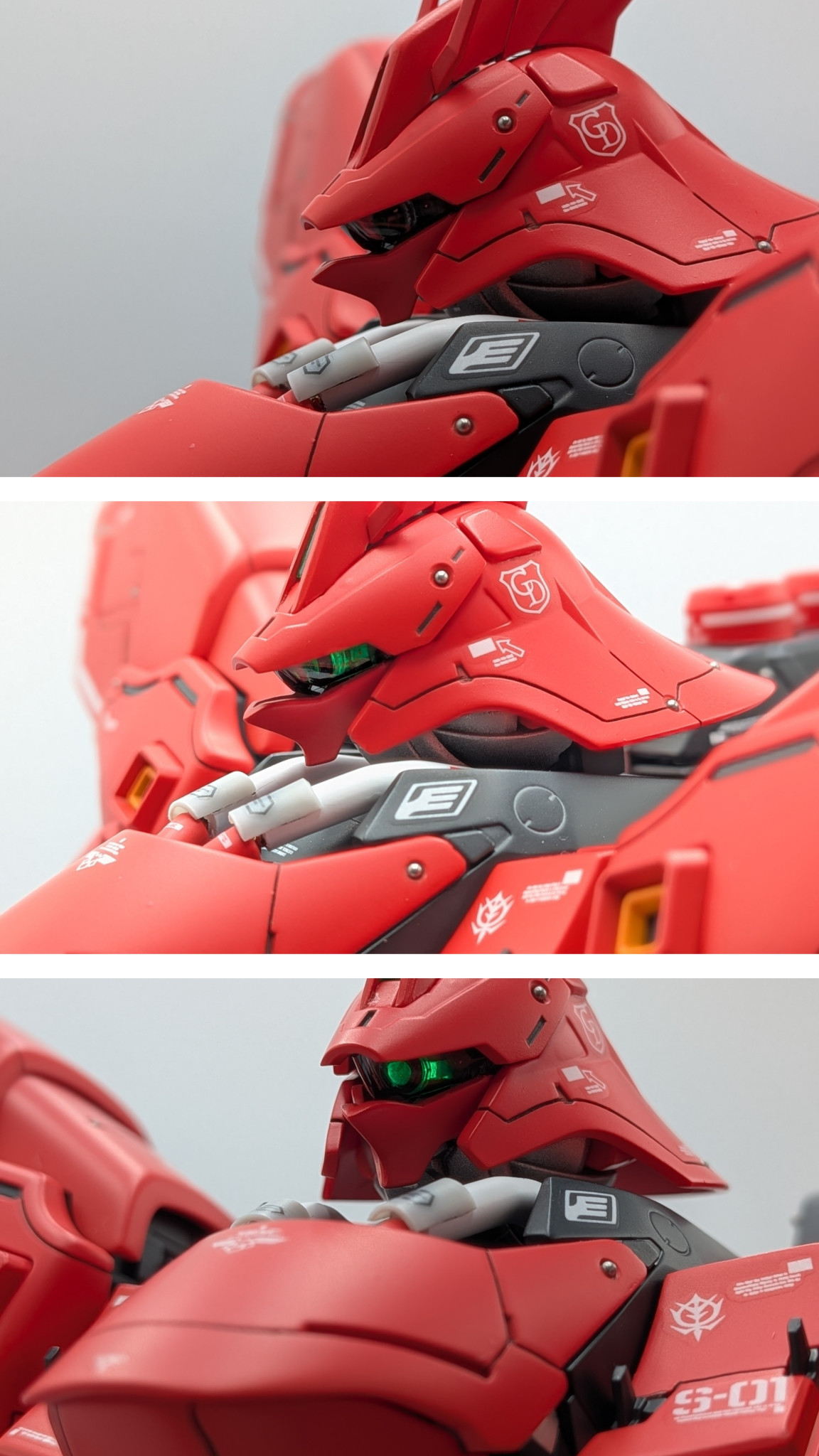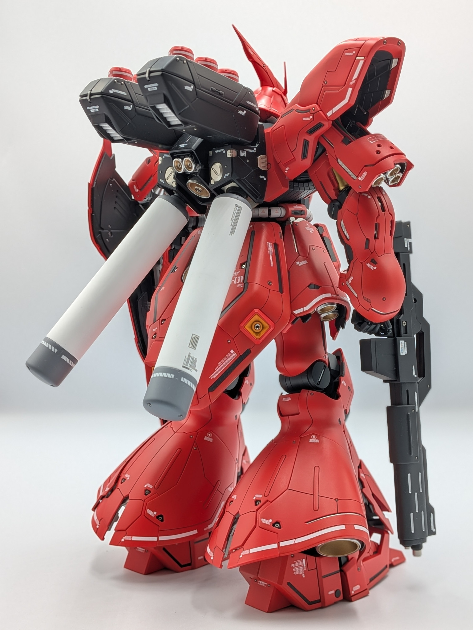 RGサザビーで、3色のレッドに塗り分けたことがあるのですが、なぜかマダラに見えてしまったので、今回はローズブライトレッド1色で塗装しました😊