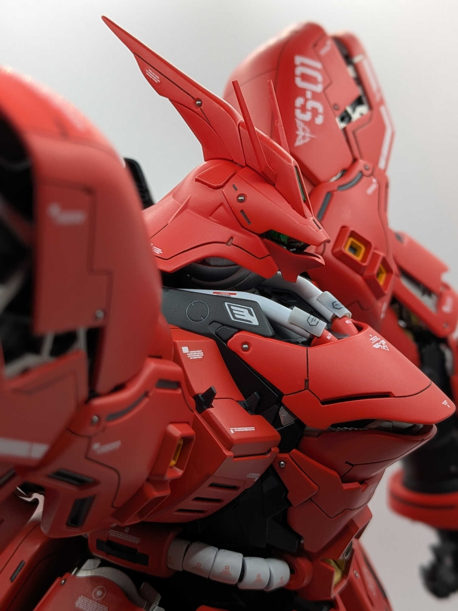 フェイス部分のクリアーパーツはクリアーブラックで塗装し、モノアイはハイキューパーツとHアイズを使用しました