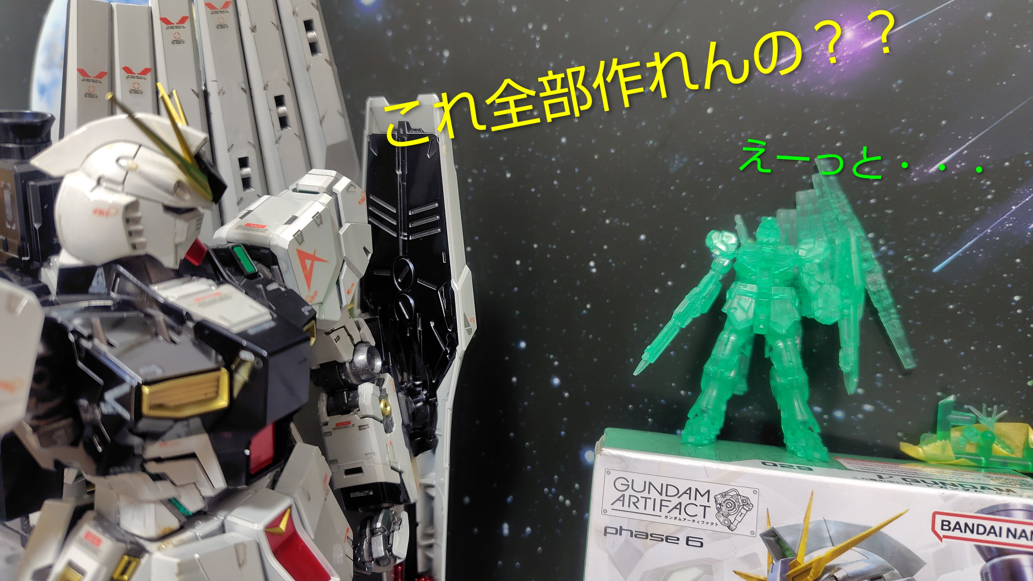 ひとまず当日買ったνガンダムはレアカラーでした!これはMG同様サイコフレームの再現をしろというメッセージですか!?(zaku-kao10)